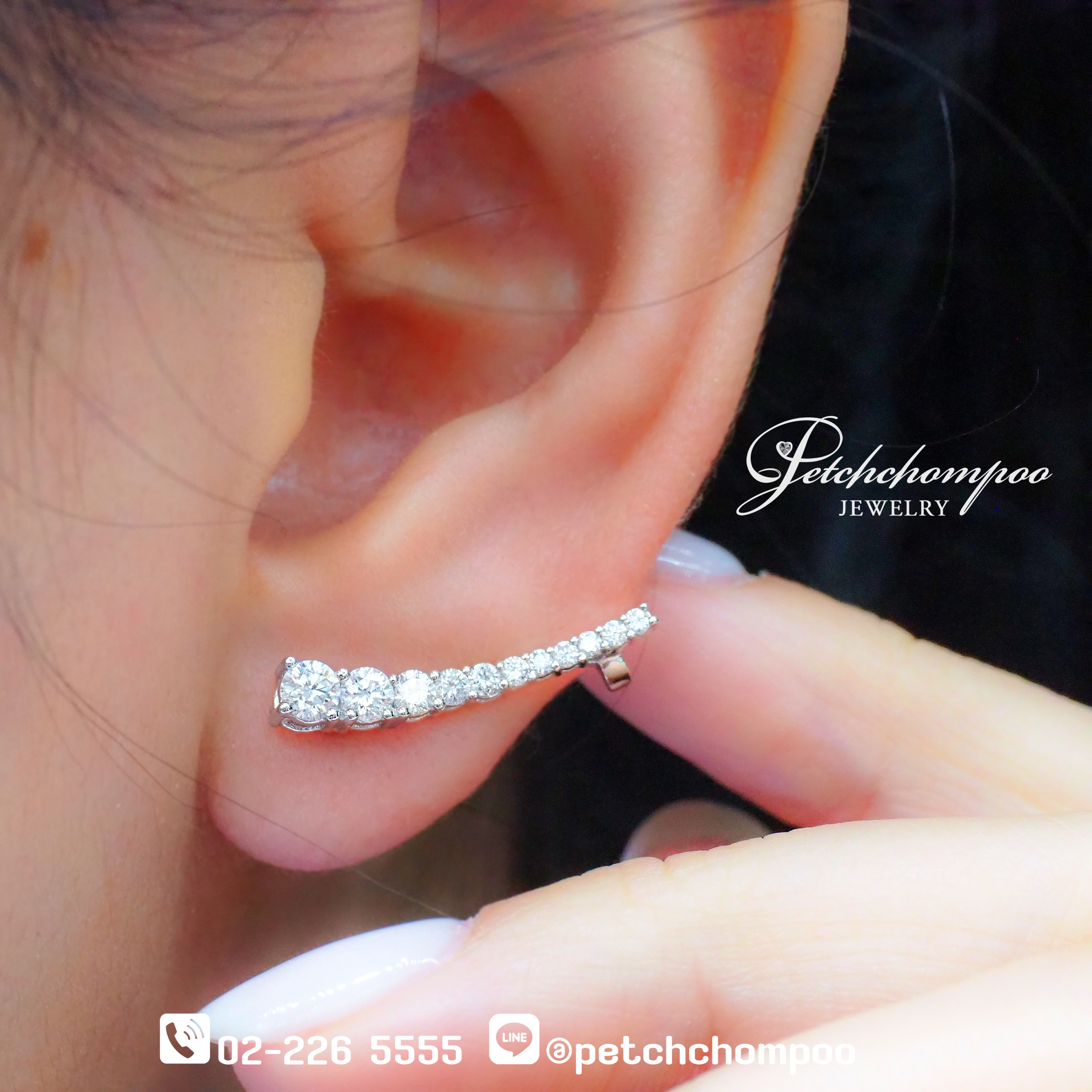 ต่างหูทรงโค้งดีไซน์เรียบแต่แฝงด้วยความสง่างามในทุกองศา ประดับเพชรแท้ 22 เม็ด น้ำหนักรวม 0.98 กะรัต ไล่ขนาดจากหัวจรดปลายเพื่อเพิ่มความโค้งงามอย่างสมดุล บนตัวเรือนทองคำแท้ 4.25 กรัม ดีไซน์นี้เหมาะอย่างยิ่งสำหรับผู้หญิงที่รักความ minimal luxury และต้องการต่างหูที่ใส่ได้ทุกวัน แต่ยังคงความเฉียบคมในดีเทล