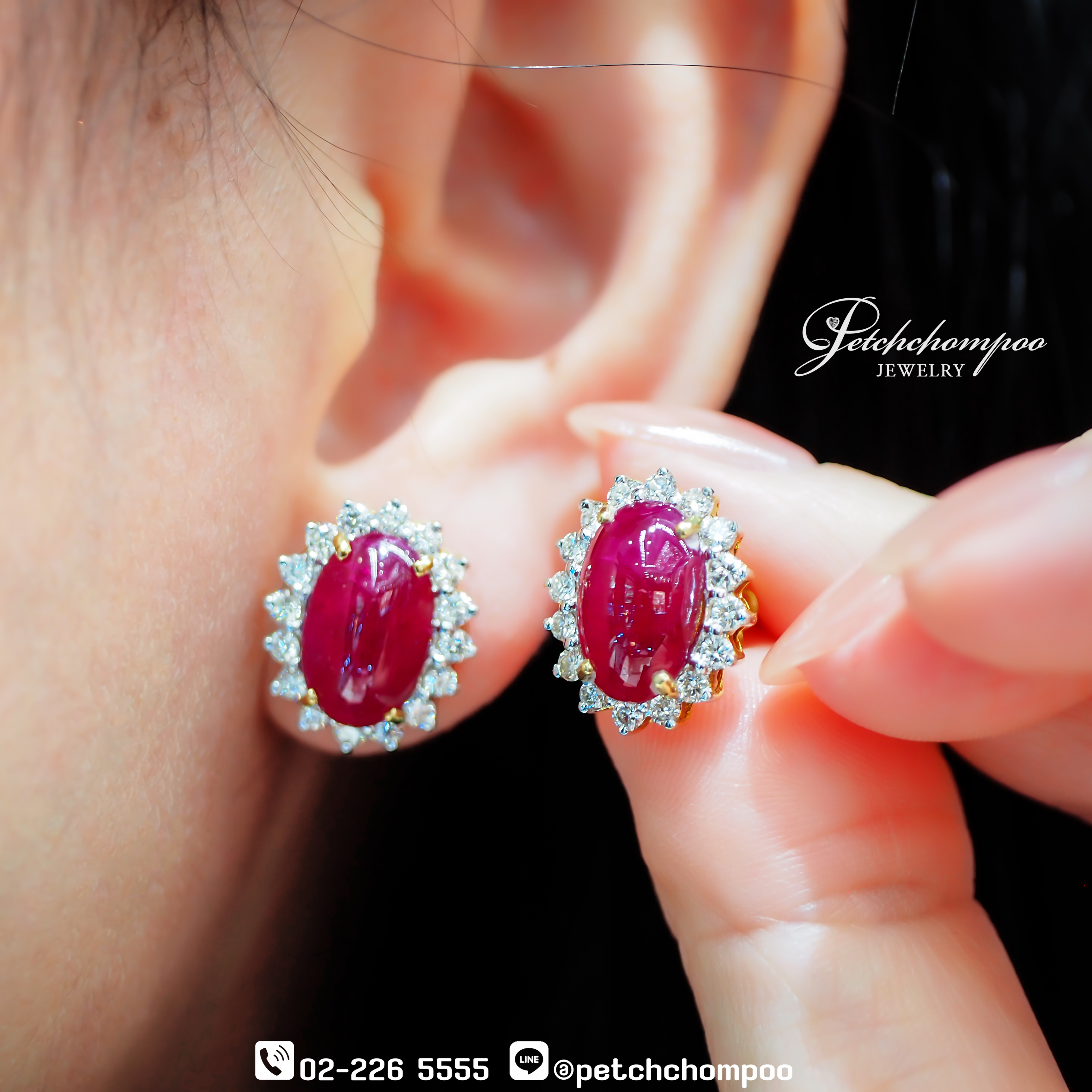 Royal Blossom Ruby™ ต่างหูหรูหราที่สะท้อนความงามเหนือกาลเวลา ด้วย ทับทิมพม่า (Myanmar Burma) ขนาดรวม 6.00 กะรัต (2 เม็ด) สีแดงสดล้ำค่า จัดวางคู่แบบสมมาตร เติมเต็มประกายด้วยเพชรแท้ 32 เม็ด รวม 1.00 กะรัต ที่เรียงร้อยเป็นกรอบรัศมีโอบล้อมอย่างอ่อนช้อย ตัวเรือนทองคำ 18K น้ำหนัก 4.01 กรัม ดีไซน์ดอกไม้หรูหรา สง่างามในทุกมุมมอง มาพร้อม ใบเซอร์ Emil การันตีความงดงามและคุณภาพระดับสูง