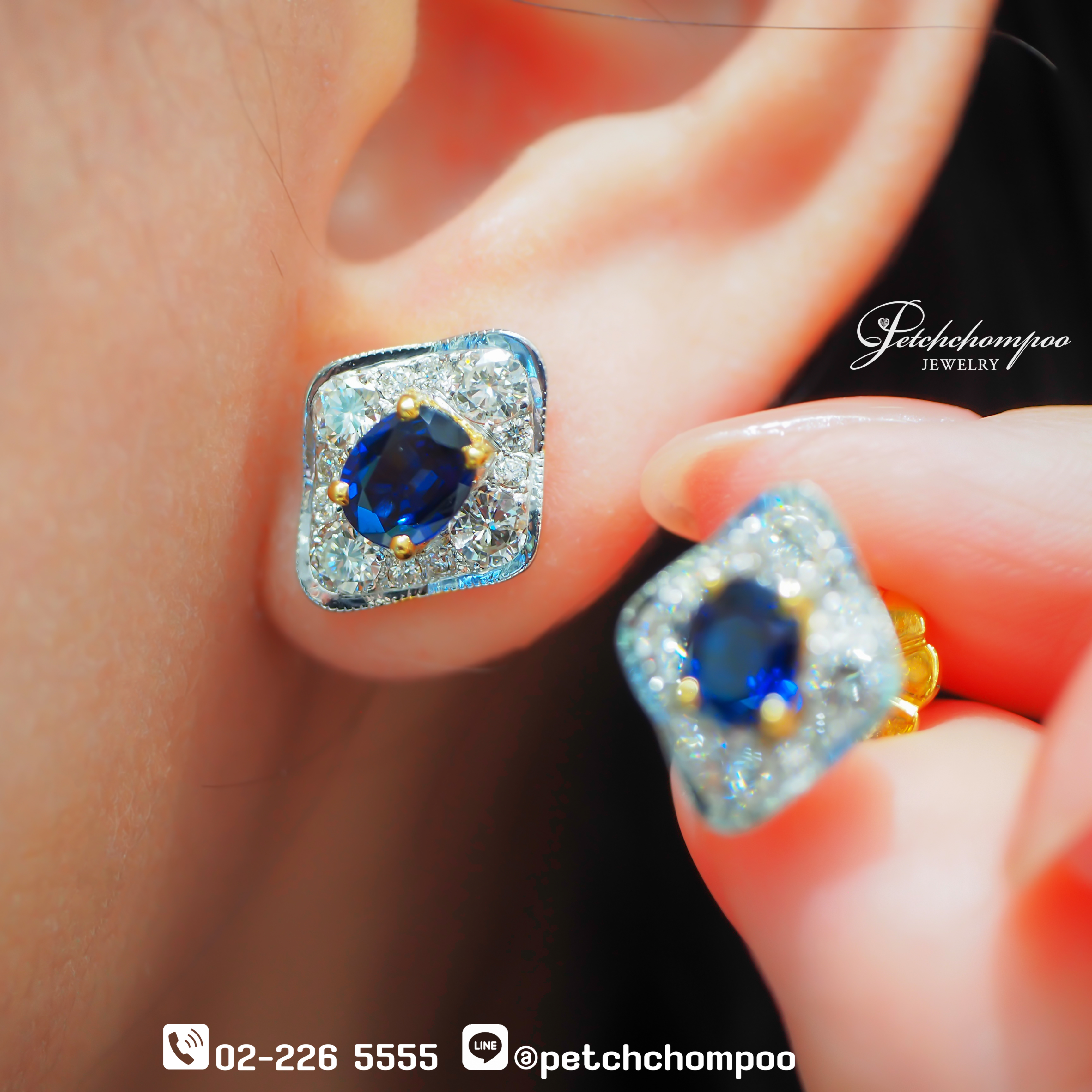Ceylon Radiance™ ต่างหูที่ถ่ายทอดมนตร์เสน่ห์แห่งศรีลังกา ด้วย ไพลินซีลอน (Sri Lanka Ceylon) 2 เม็ด น้ำหนักรวม 2.00 กะรัต สีน้ำเงินเข้มสง่างาม ประดับประกายด้วย เพชรแท้ 24 เม็ด น้ำหนักรวม 1.12 กะรัต ล้อมรอบอย่างสมบูรณ์แบบ ดีไซน์เรขาคณิตทรงสี่เหลี่ยมข้าวหลามตัดสะท้อนความทันสมัย ตัวเรือนทองคำ 18K น้ำหนัก 6.34 กรัม ลงตัวทั้งความหรูหราและความคลาสสิก มาพร้อม ใบเซอร์ Emil การันตีคุณภาพและความแท้จริง