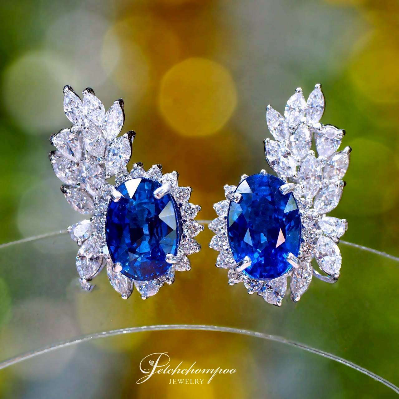 ต่างหูไพลินศรีลังกา Vivid Blue Celestial Blue Cascade™ 7.96 กะรัต ล้อมเพชร | HGT