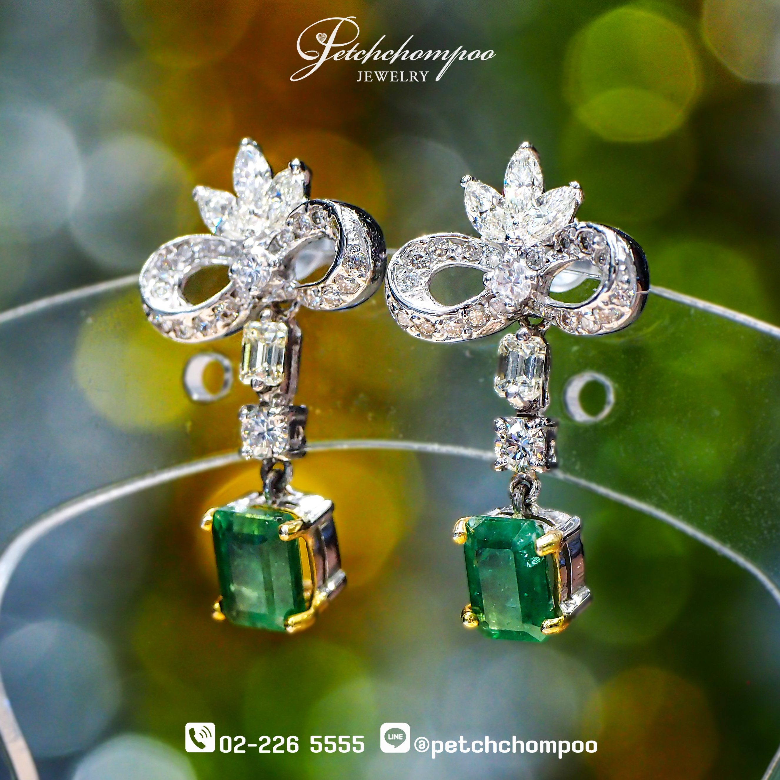 • เพชรกลมเม็ดกลาง 0.20 กะรัต (2 เม็ด) รวมเพชรรวมทั้งหมด 1.56 กะรัต จำนวน 48 เม็ด เรียงร้อยเป็นโครงลายโบว์ + ลายดอกไม้ด้านบน ลดหลั่นต่อด้วยเพชร Emerald Cut และเพชรกลมก่อนหยดลงสู่มรกตหลักด้านล่างราวกับ “หยดแห่งความงาม” ที่เคลื่อนไหวอย่างสง่างามเมื่อสวมใส่ ตัวเรือนทองคำขาว 18K น้ำหนัก 6.15 กรัม สมดุลสวยงามระหว่างความหรูและความอ่อนช้อย เหมาะอย่างยิ่งสำหรับงานค่ำสุดหรู งานแต่ง หรือวันที่ต้องการความโดดเด่นสไตล์ High Jewelry™ ⇒✨