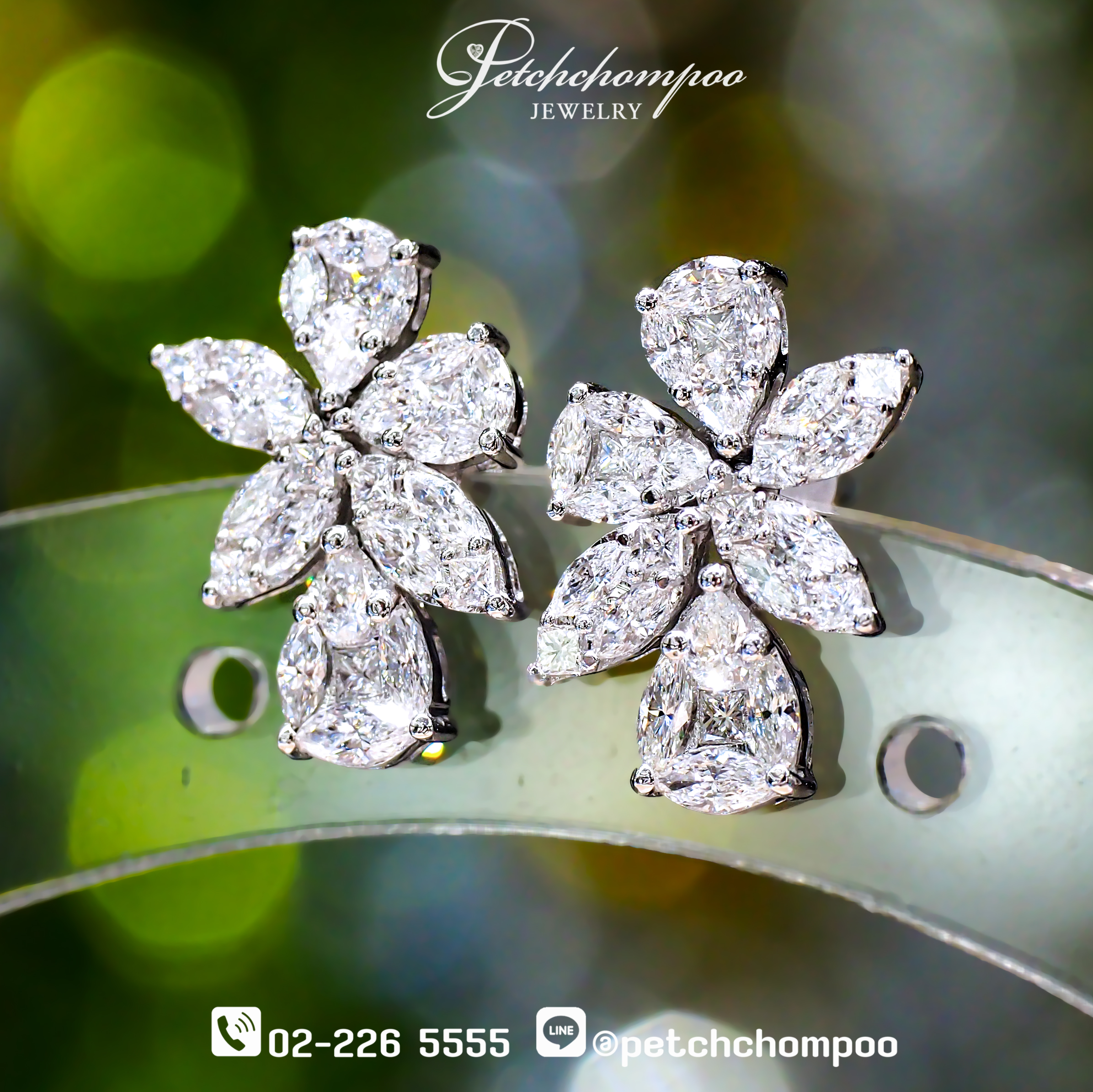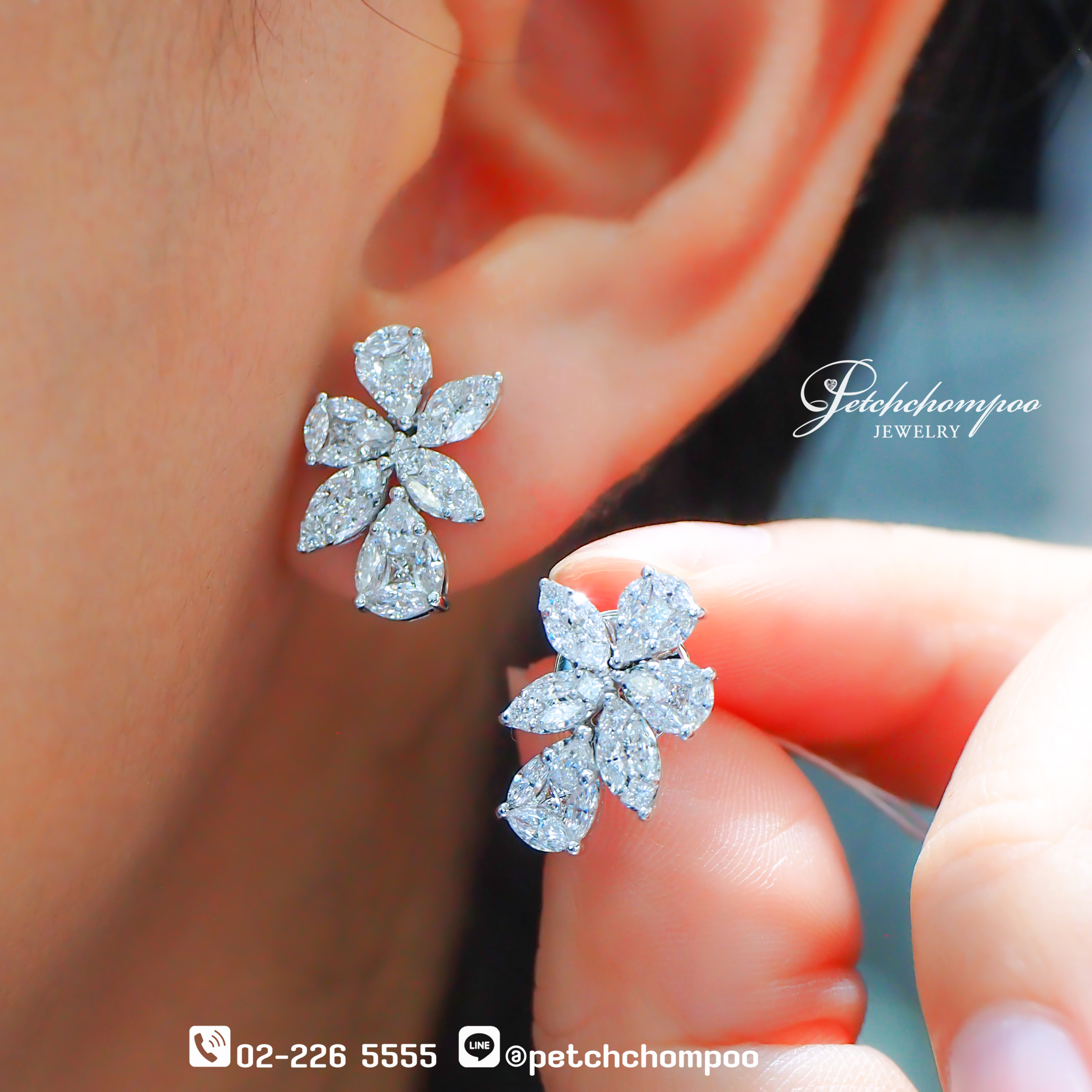 ต่างหู Floral Radiance™ ออกแบบในลุคดอกไม้หรูหรา ผสานระหว่างเพชรสามเหลี่ยม Princess, เพชรหยดน้ำ และเพชร Marquise อย่างสมบูรณ์แบบ แต่ละเม็ดจัดวางอย่างประณีตให้ประกายสะท้อนแสงแบบ 360° → สร้างมิติที่อ่อนหวานแต่ทรงพลัง ดีไซน์คลาสสิกที่สวมใส่ง่ายในทุกโอกาส ทั้งงานกลางวันและงานค่ำคืน เพิ่มเสน่ห์ให้ใบหน้าดูสว่างขึ้นทันทีที่สวมใส่