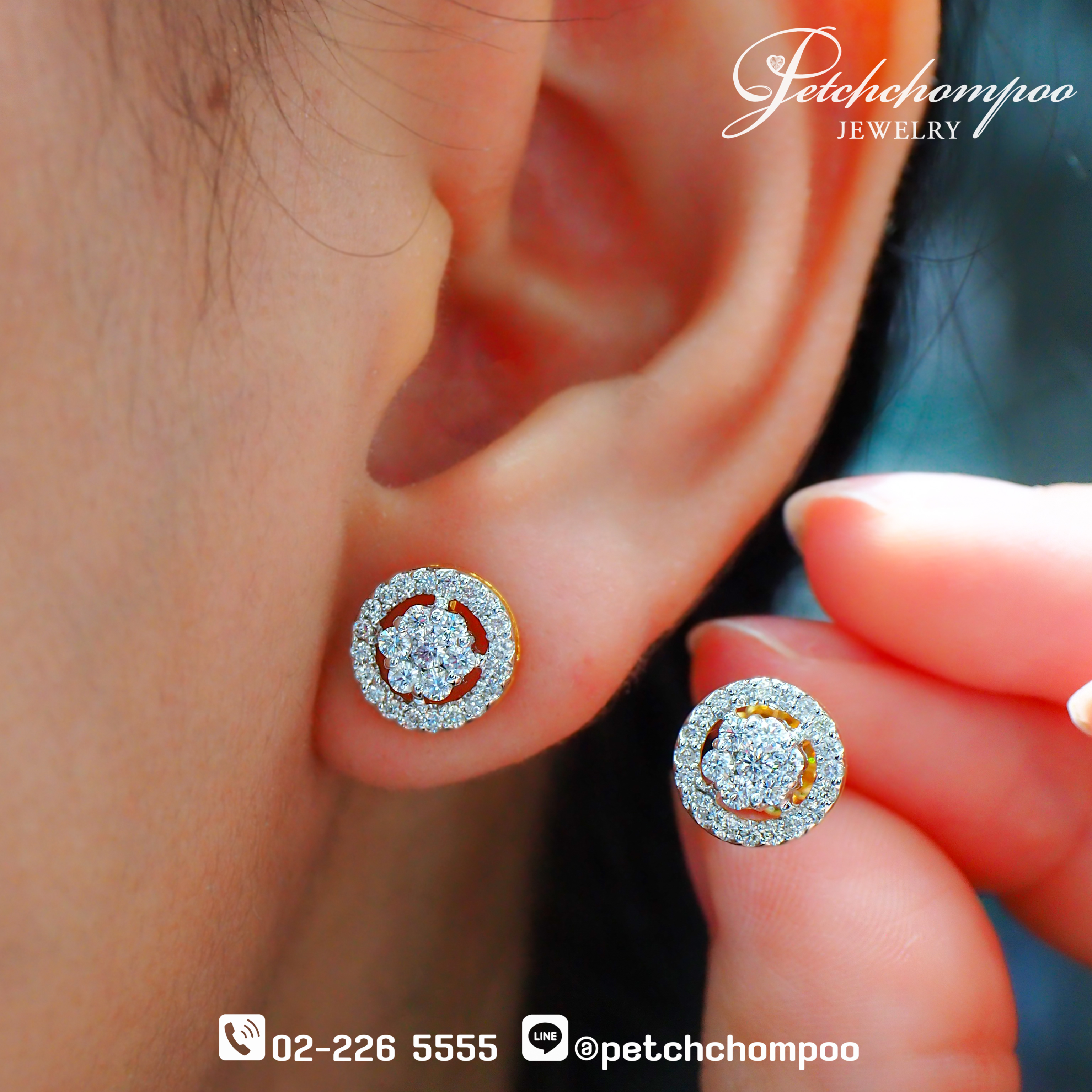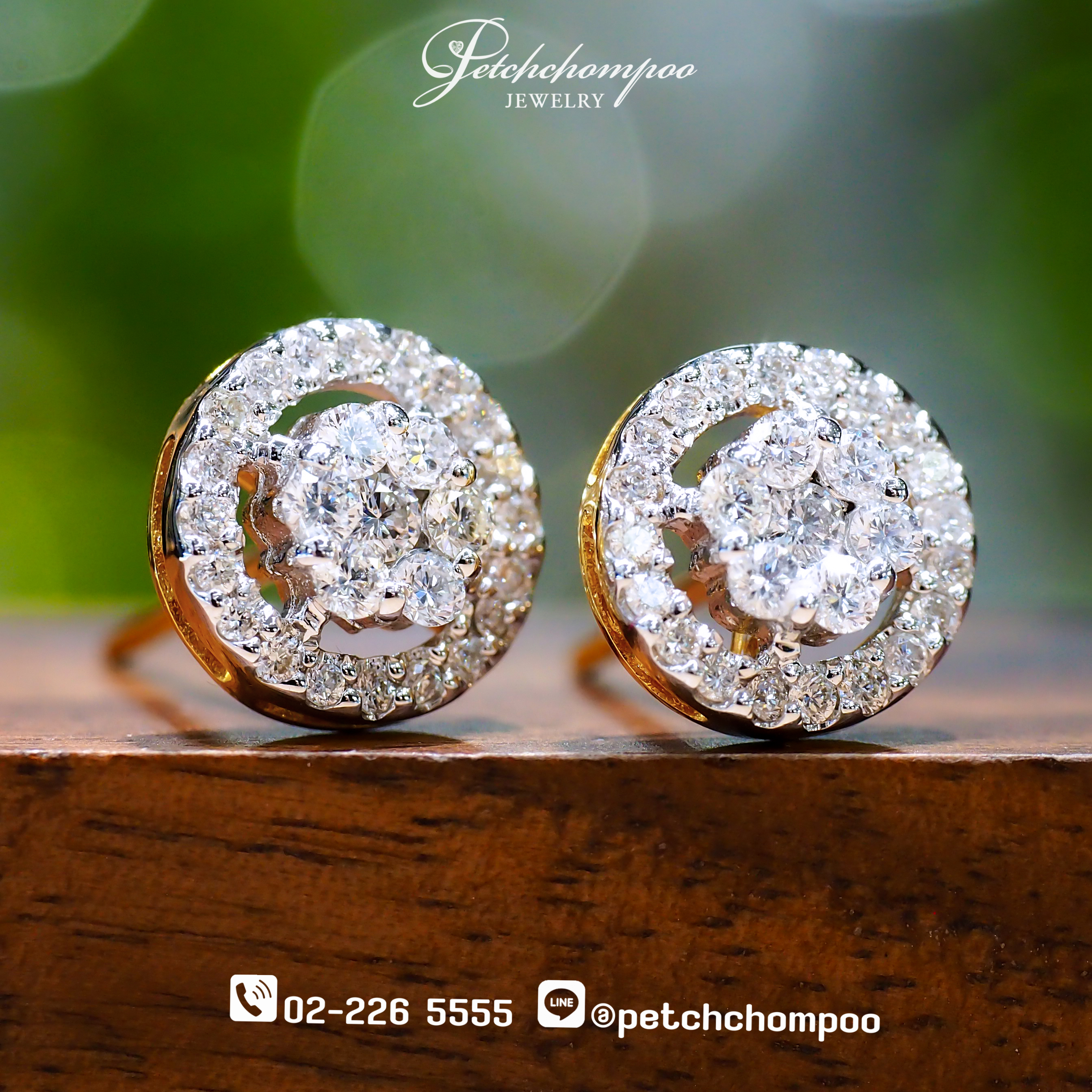 ต่างหู Twilight Halo Bloom™ ดีไซน์ทรงกลมสุดหรูหรา ผสมผสานความละมุนแบบดอกไม้และความสว่างไสวของแสงดาว ตัวเรือนทองประณีตล้อมเพชรน้ำงามถึง 54 เม็ดอย่างละเอียดประณีต เปล่งประกายแบบ Halo Effect ช่วยขับให้เพชรทุกเม็ดดูโดดเด่น เปล่งประกายรอบใบหน้าอย่างสง่างาม
