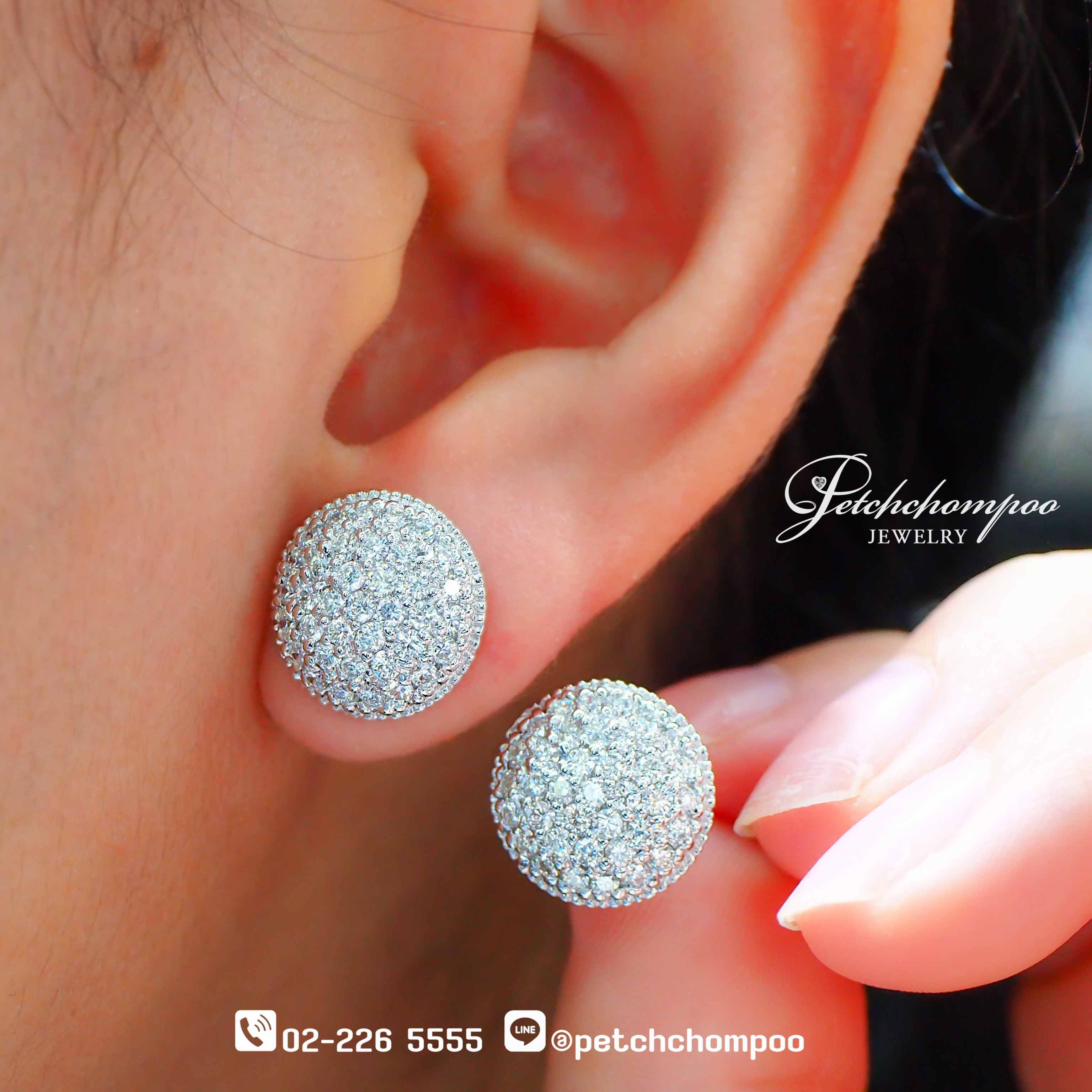 ✨ ต่างหูทรงโดมเพชรสุดหรู…ประกายแน่นเต็มพื้นที่ เปล่งประกายทุกองศาอย่างแท้จริง