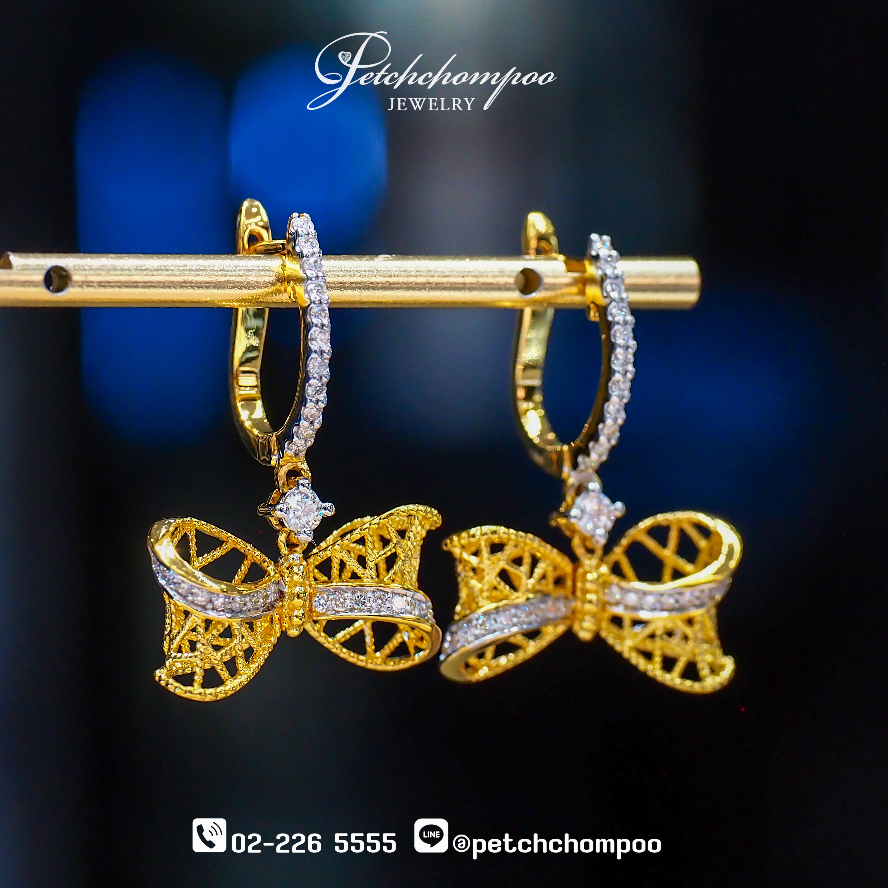 ต่างหูดีไซน์โบว์ลวดลายฉลุแบบ Lace Filigree ให้ความรู้สึกเบาสบายแต่งดงามหรูหรา ตัวโบว์สีทองโดดเด่น แต่งด้วยเพชรระยิบระยับที่คาดกลางอย่างประณีต เพิ่มมิติให้ดูเล่นแสงทุกการเคลื่อนไหว มาพร้อมเพชรเม็ดหลัก 0.10 กะรัต × 2 เม็ด และเพชรประดับอีก 58 เม็ด รวม 0.40 กะรัต รวมเป็นประกายสวยหวานแบบที่ใส่ได้ทุกโอกาส ตัวเรือนทองน้ำหนักกำลังดี 5.26 กรัม ให้ความรู้สึกพรีเมียมและโดดเด่นทันทีเมื่อสวมใส่