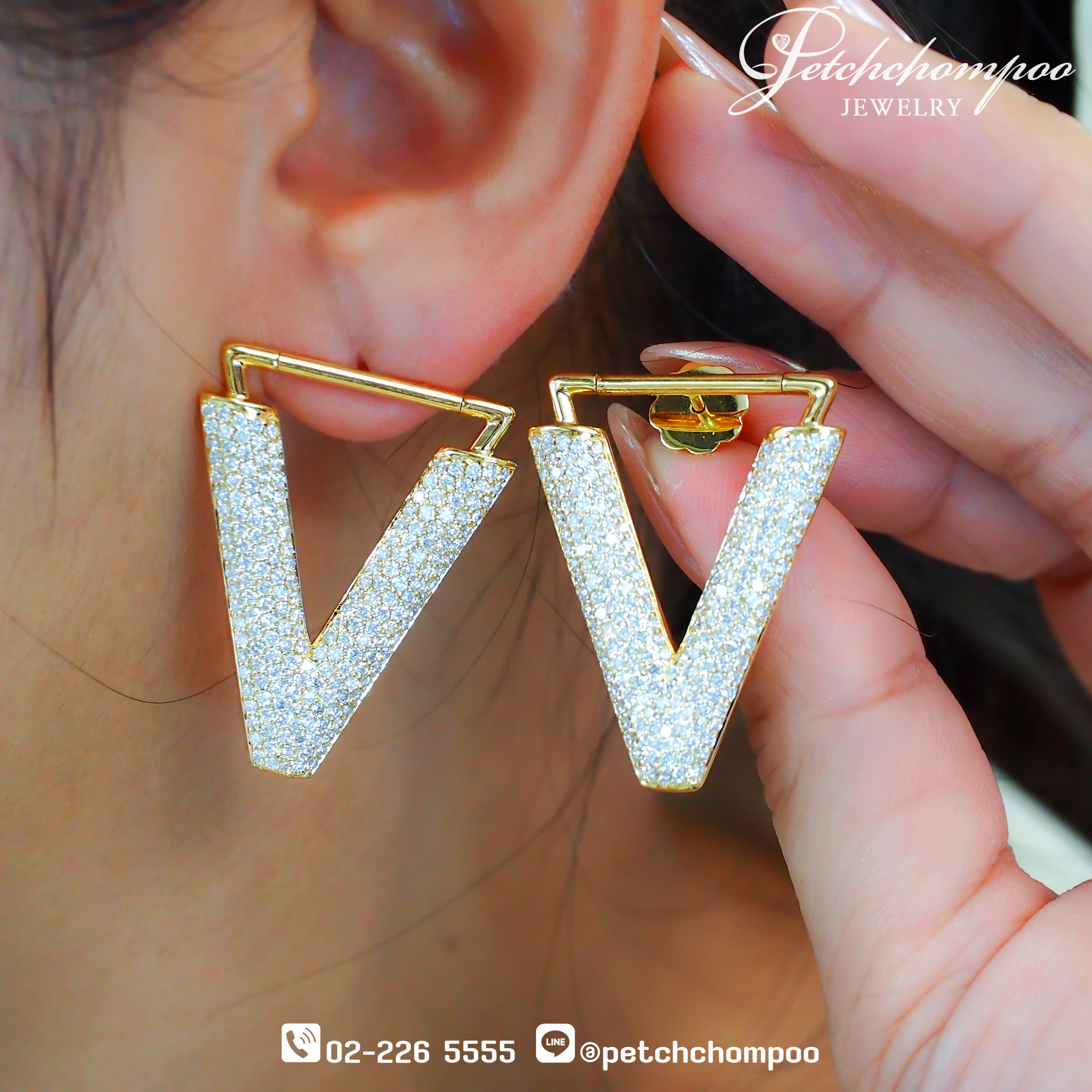 ต่างหู Vogue Vivid Victory™ คือดีไซน์ที่สื่อถึงพลัง ความมั่นใจ และความหรูหราทันสมัยในหนึ่งเดียว ตัวเรือนทอง 18K น้ำหนัก 13.99 กรัม ถูกออกแบบในรูปทรงตัว V ที่เฉียบคม สวยคมชัดแบบสไตล์โมเดิร์นไฮแฟชั่น ประดับด้วยเพชรแท้คุณภาพเยี่ยมแบบเต็มพื้นที่ 394 เม็ด รวม 3.94 กะรัต ละเอียดในทุกองศาแบบ Pavé ทั้งด้านหน้า เพื่อให้เกิดประกายไฟต่อเนื่องทุกการขยับ ส่องสว่างแบบ “full dazzling effect” มองไกลก็เห็นระยิบ ระยับเหมือนแสงแฟลชติดตามตัว เป็นต่างหูที่ให้ลุค Strong, Glam, and Modern สวมได้ทั้งงานกลางคืน งานปาร์ตี้ หรือสไตล์แฟชั่นลุคจัดเต็มแบบคนรักจิวเวลรี่ตัวจริง