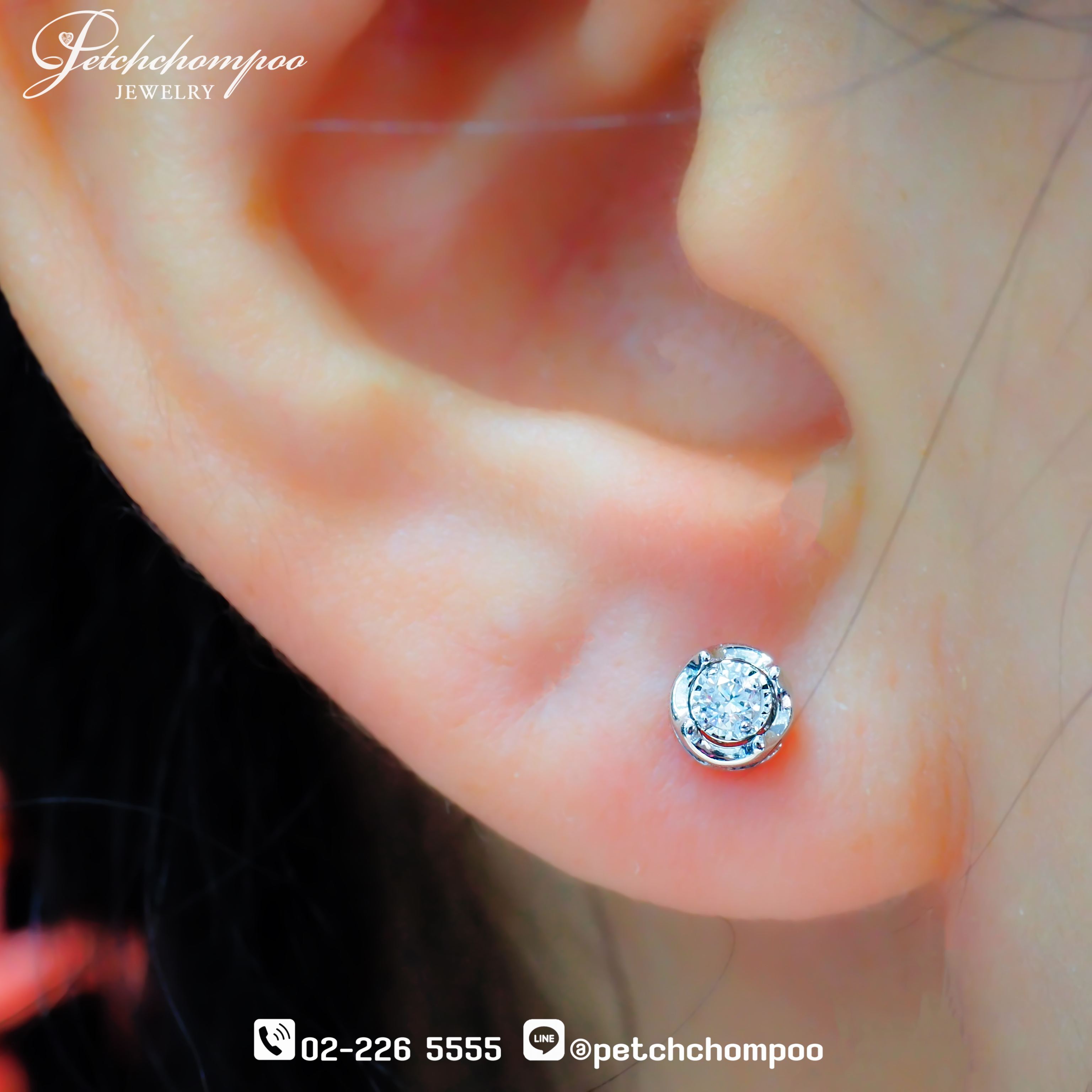 ต่างหูเพชรเดี่ยว Pure Whisper ดีไซน์โมเดิร์น