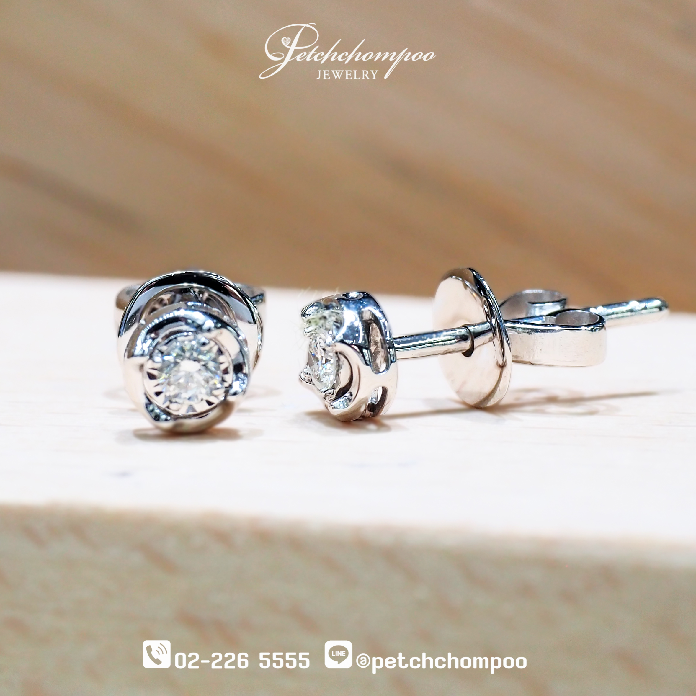 ► ประเภทสินค้า : ต่างหูเพชรแท้ (Diamond Stud Earrings)