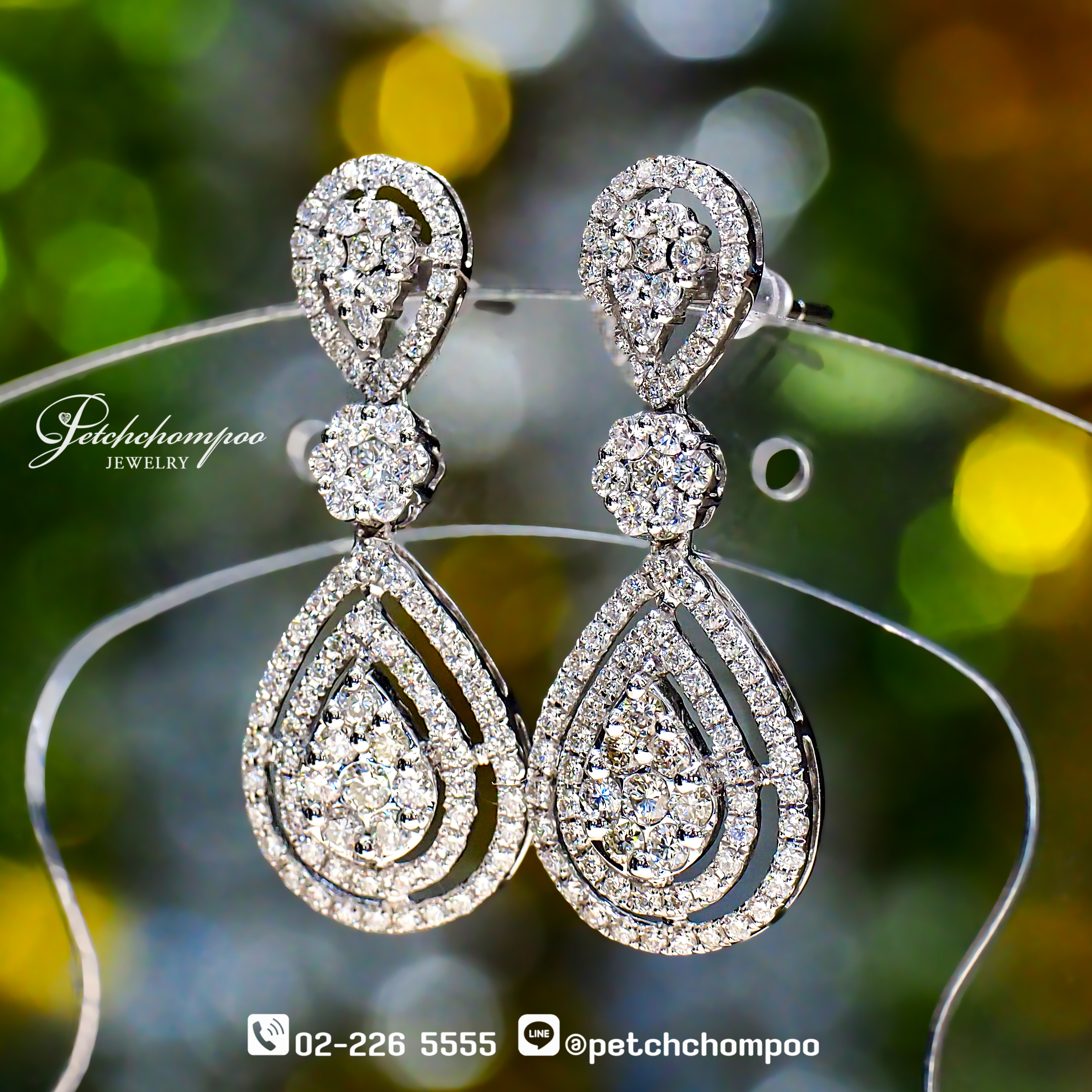 ต่างหูเพชรรูปหยดน้ำคู่นี้งดงามด้วยงานดีไซน์ระดับไฮจิวเวลรี่ ตัวเรือนเพชรซ้อนหลายชั้นเล่นระดับอย่างประณีต สะท้อนแสงแบบ 360° ให้ประกายระยิบระยับโดดเด่นแม้ในแสงน้อย ดีไซน์หยดน้ำอันเป็นไอคอนของความสง่างาม ผสานเพชรเม็ดเล็กเรียงตัวแน่นละเอียด ทำให้ชิ้นงานดูเลอค่าและคลาสสิกเหนือกาลเวลา