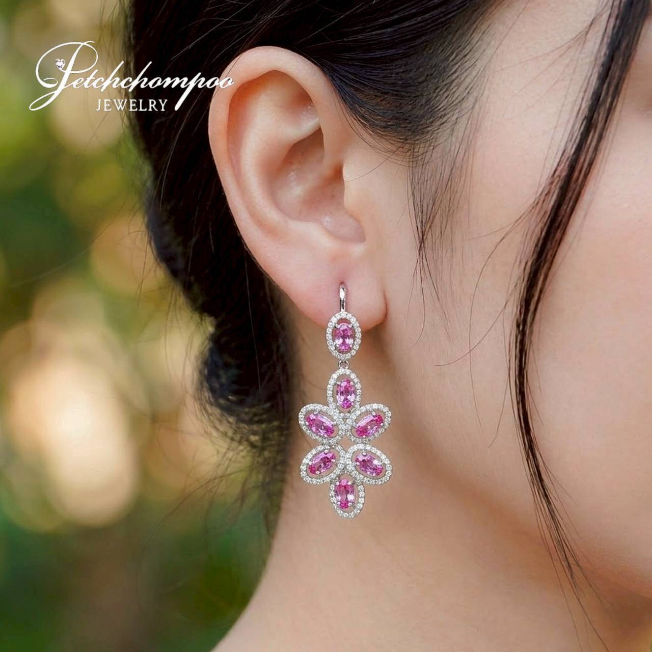 ต่างหู Pink Sapphire Blooming Belle™ 7.85 กะรัต ดีไซน์ดอกไม้ล้อมเพชร