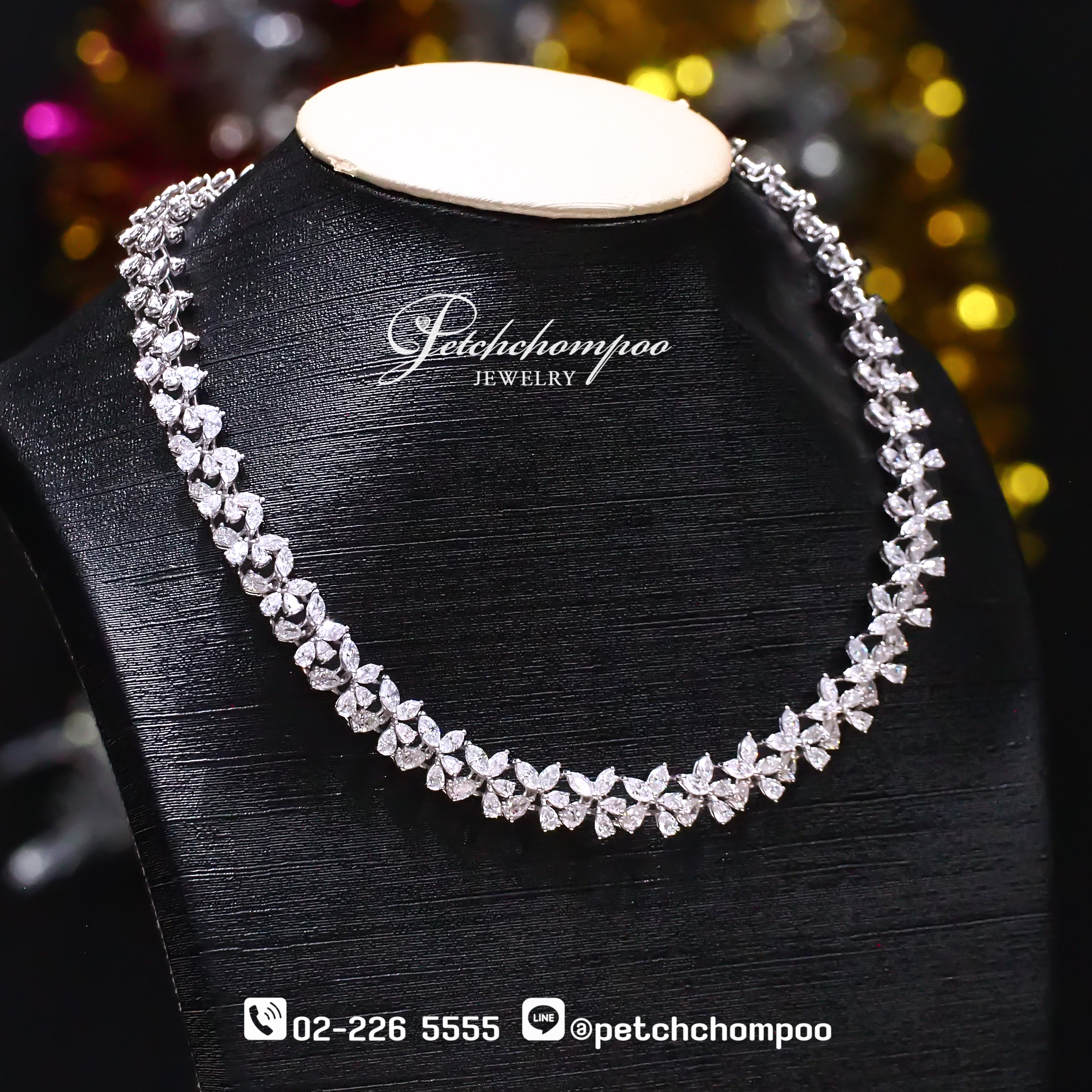 สร้อยคอที่สะท้อนตัวตนของหญิงสาวผู้เปี่ยมอำนาจในความงาม ด้วยการจัดวางเพชรมาคีร์และเพชรหยดน้ำอย่างสมดุล เปล่งประกายดุจมงกุฎแห่งรัตติกาล ดีไซน์ล้อมแนบชิดเรียงรายไปตลอดเส้น สะท้อนแสงระยิบระยับในทุกองศา สวมใส่แล้วให้ความรู้สึกหรูหราในทันที ไม่ว่าจะในวาระพิเศษหรืองานใหญ่ระดับพรมแดง