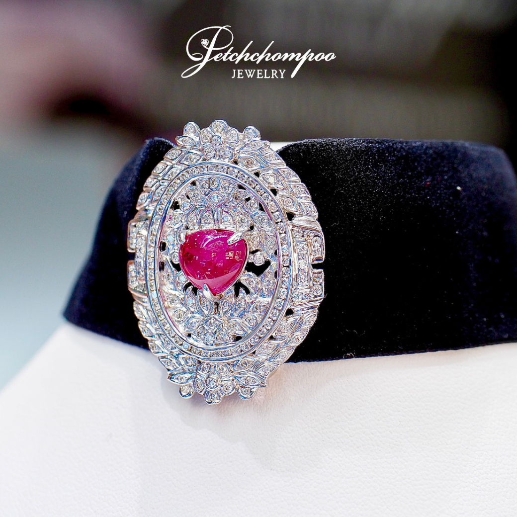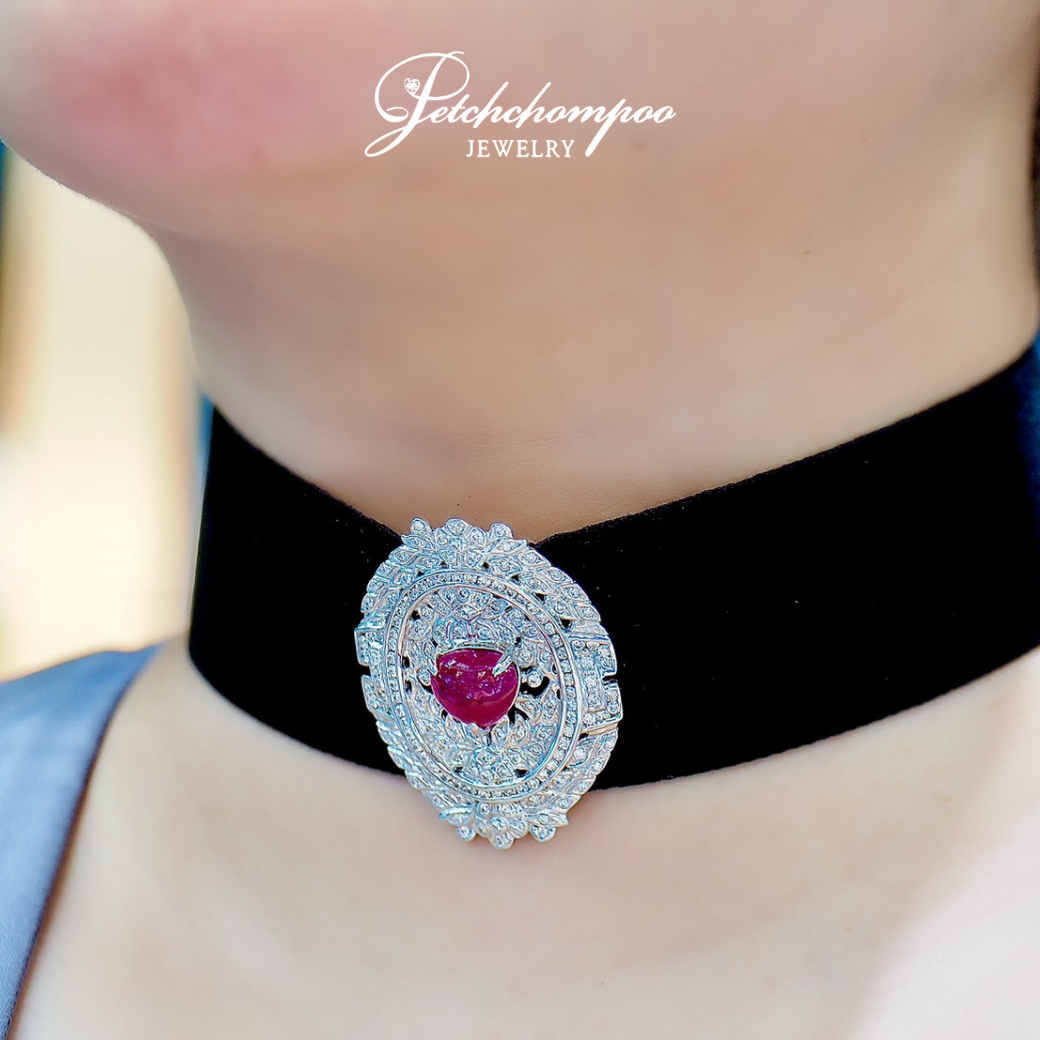 โชคเกอร์ Crimson Sovereign Ruby ทับทัม 5.11 กะรัต ฝังเพชร
