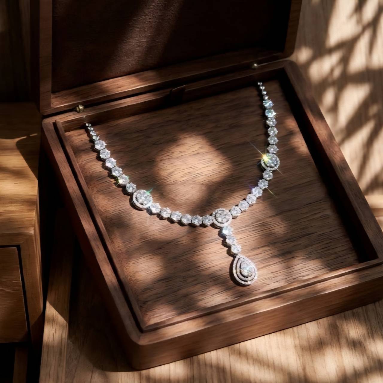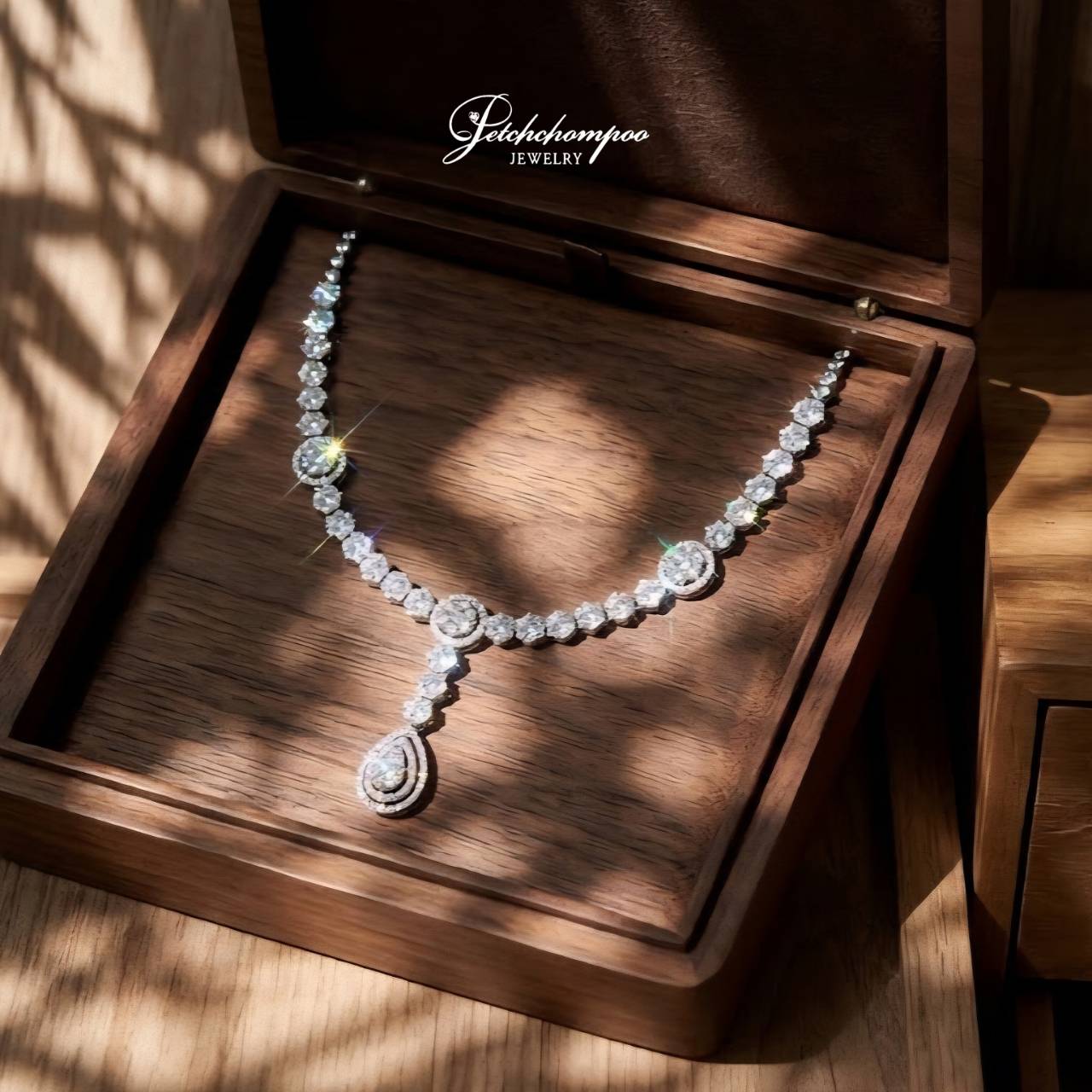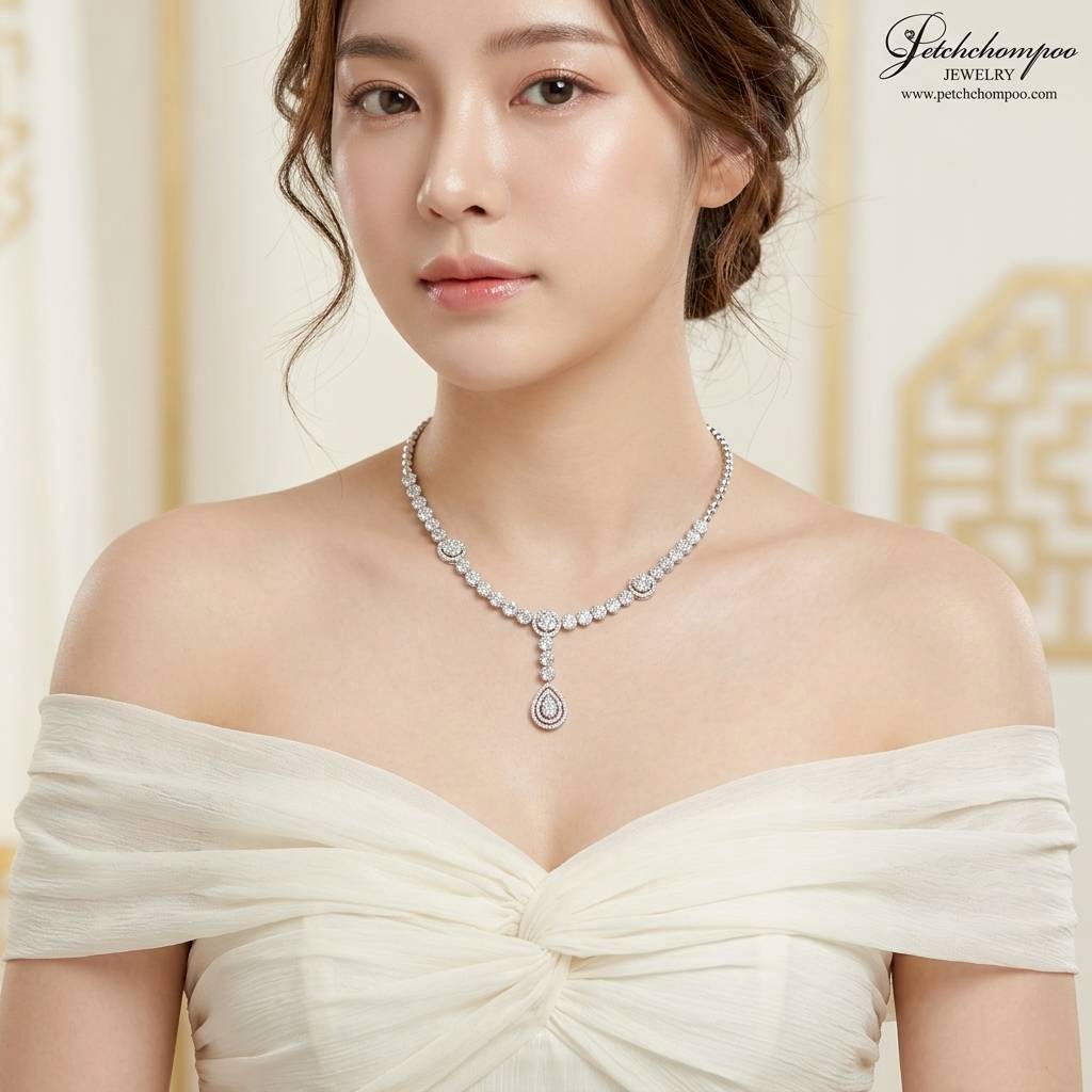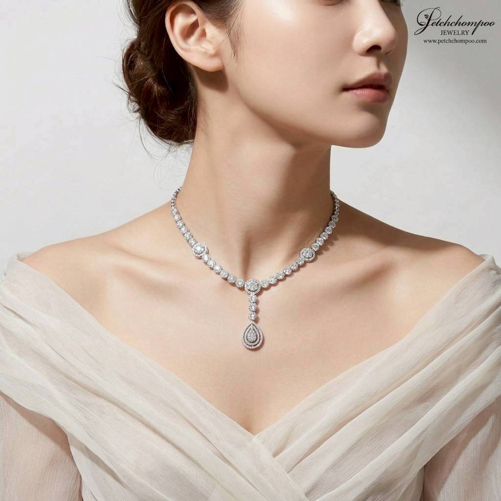 สร้อยคอมรกตแซมเบีย Verdant Royale Garland ลวดลายดอกไม้ประดับเพชร | AIG,ผลงาน High Jewelry ที่ถ่ายทอดความงดงามของธรรมชาติในรูปแบบราชสำนัก มรกตแซมเบียทรงหยดน้ำ ขนาด 1.50 กะรัต โดดเด่นเป็นหัวใจของชิ้นงาน เปล่งประกายสีเขียวสดลึก อันเป็นเอกลักษณ์ของมรกต