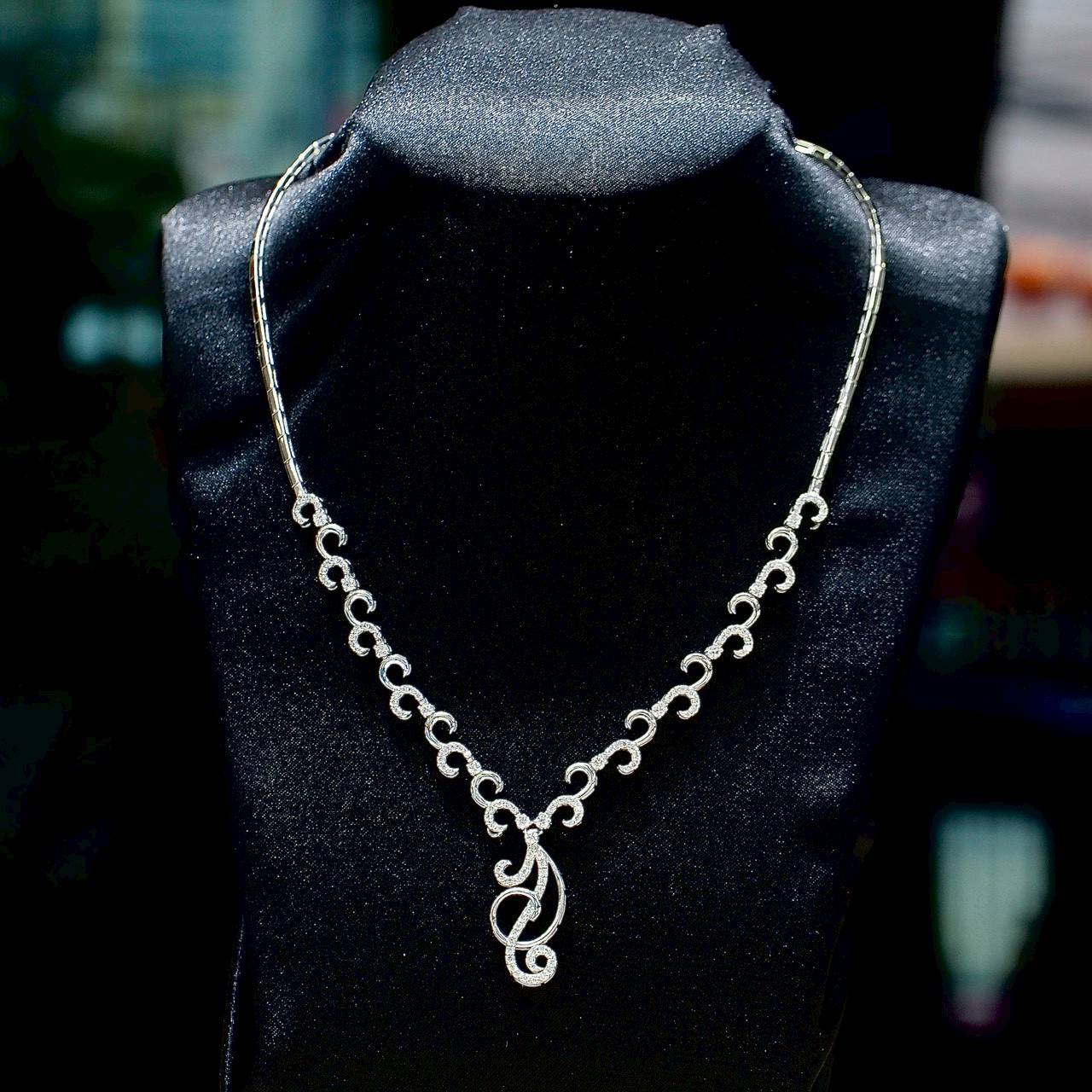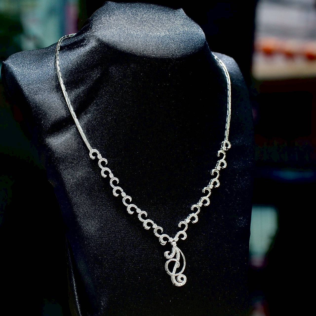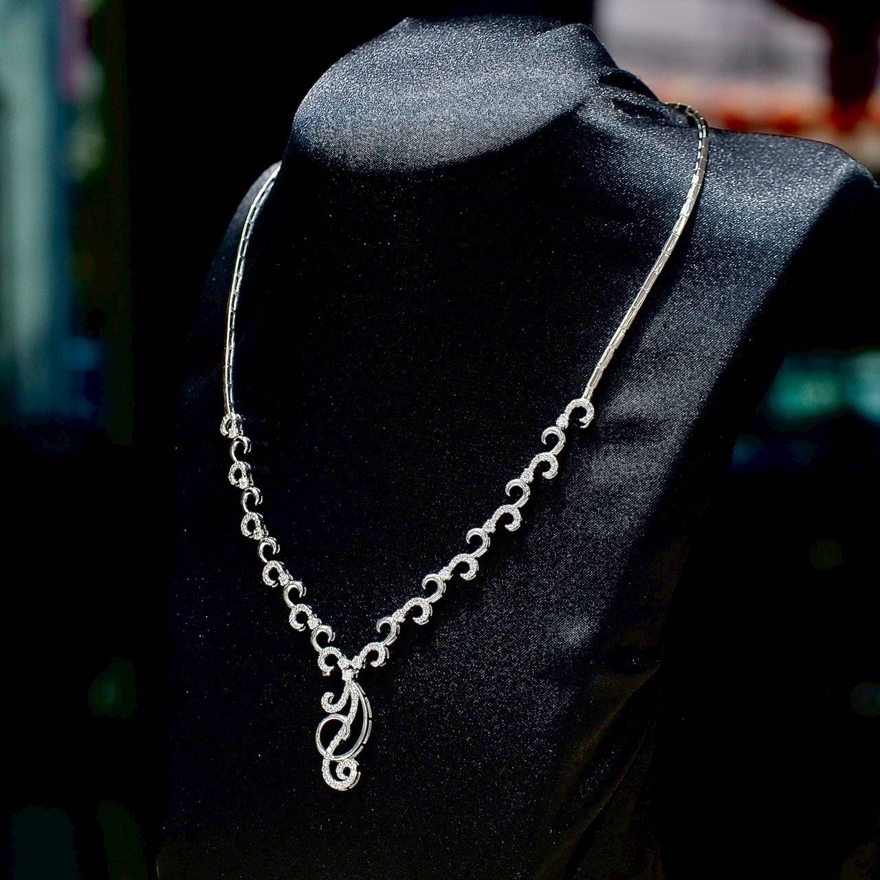 สร้อยคอเพชรดีไซน์ลวดลายพลิ้วไหว ดูมีชีวิตชีวาในทุกมุมมอง ด้วยการผสมผสานเส้นสายโค้งเว้าอันเป็นเอกลักษณ์ ♦ ประดับเพชรน้ำงาม 130 เม็ด น้ำหนักรวม 1.55 กะรัต ✦ ตัวเรือนทองคำแท้ 18K หนัก 18.25 กรัม ให้ความรู้สึกหรูหราแต่เบาสบายเมื่อสวมใส่ ⇔ เหมาะสำหรับสาวสไตล์เรียบโก้ที่ต้องการความโดดเด่นแบบมีคลาส