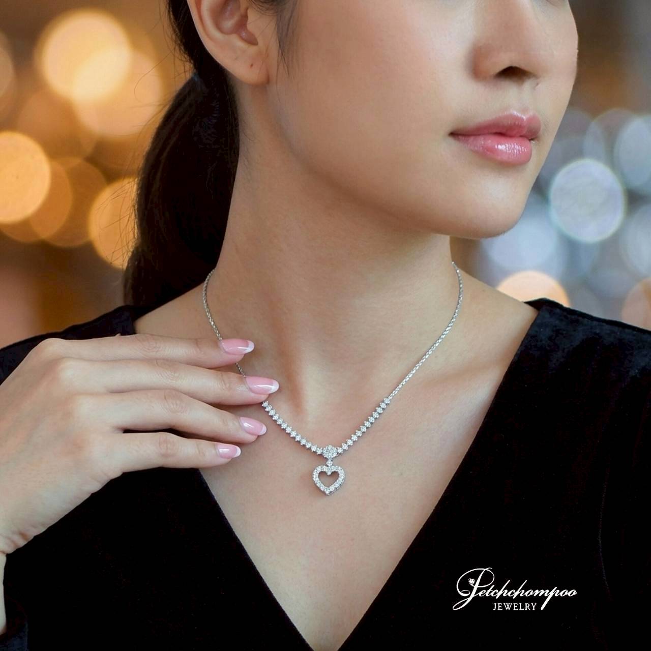 เปล่งประกายด้วยเสน่ห์เหนือกาลเวลา Heart of Grace™ รังสรรค์จากเพชรแท้ 46 เม็ด รวม 2.17 กะรัต ประดับเรียงอย่างประณีตบนตัวเรือนทองคำขาว 18K น้ำหนัก 6.90 กรัม ดีไซน์หัวใจช่วงกลางพลิ้วไหวอย่างอ่อนโยน สื่อถึงความรักที่แข็งแกร่งแต่เปี่ยมอ่อนโยน เหมาะทั้งสำหรับมอบเป็นของขวัญแทนใจ หรือเติมเต็มลุคเจ้าสาวในวันพิเศษ