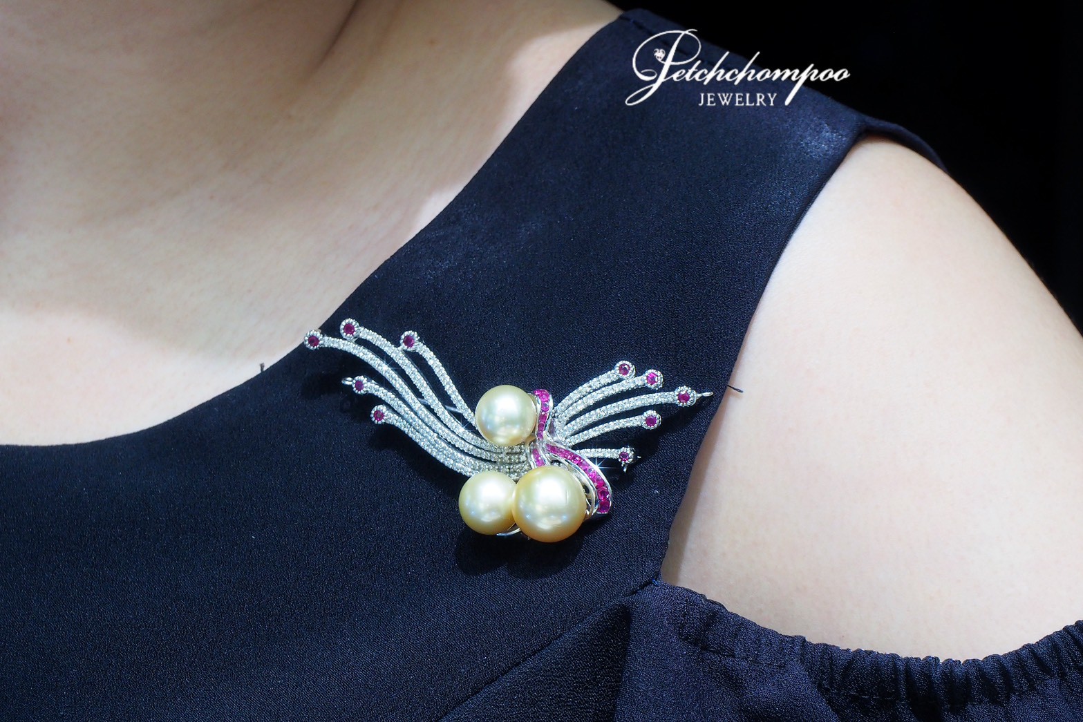 Aurora Flow™ คือเครื่องประดับที่รังสรรค์ขึ้นอย่างอัจฉริยะเพื่อผู้หญิงที่มีมิติแห่งความงาม 2 ด้าน มุกทองธรรมชาติ 3 เม็ดทรงกลมสมบูรณ์แวววาว โดดเด่นกลางดีไซน์ที่ลื่นไหลราวกับสายลมพัดแสง สะท้อนประกายผ่านเพชรขาวระยิบระยับรวม 1.20 กะรัต และทับทิมชมพูสดใส 34 เม็ด น้ำหนักรวม 1.00 กะรัต ตัวเรือนทองคำขาว 18K น้ำหนัก 23.50 กรัม ดีไซน์ 2-in-1 ถอดแปลงเป็นเข็มกลัดหรูได้ในทันที ไม่ว่าจะใส่เป็น Choker ก็เผยตัวตนที่เปล่งประกายเหนือใคร