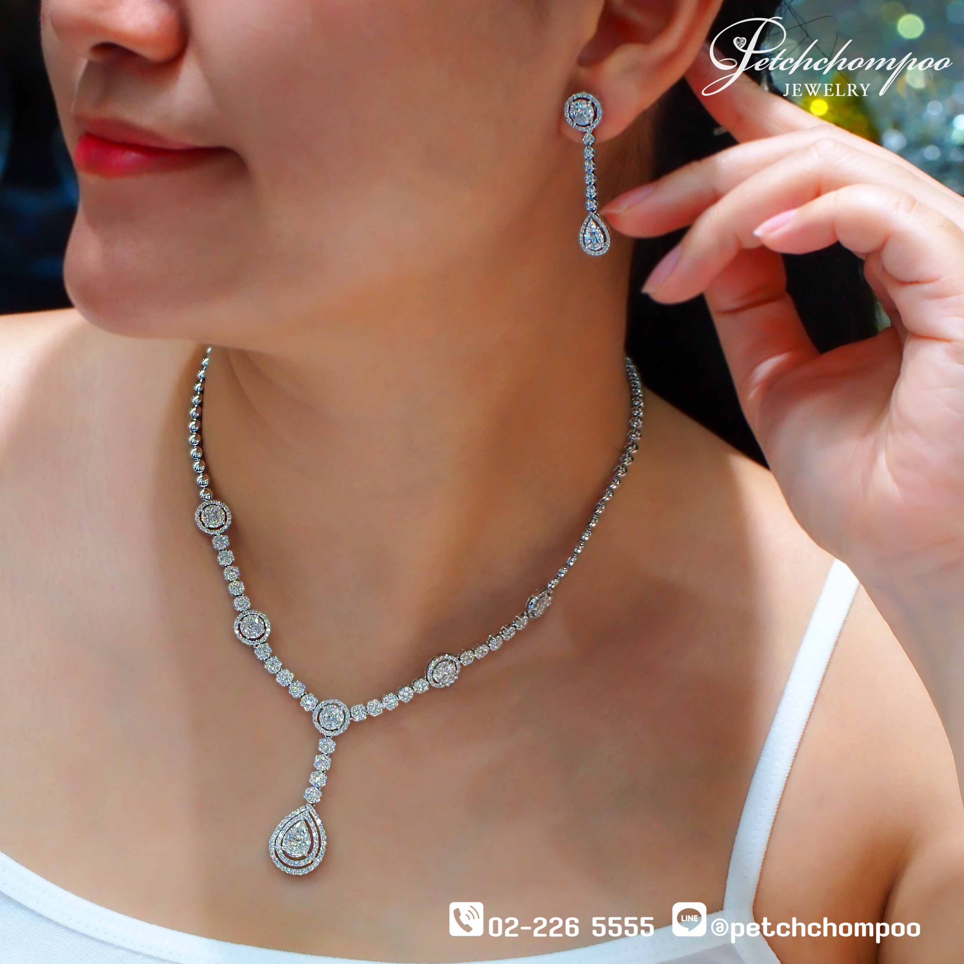 สร้อยคอเพชรดอกไม้ Diamond Floral Symphony™ ถ่ายทอดความงดงามประดุจมวลดอกไม้ที่กำลังเบ่งบาน ประดับด้วยเพชรหลากทรง ทั้งกลม มาคีร์ ปริ๊นเซส และหยดน้ำ เรียงร้อยอย่างประณีตให้เกิดมิติที่อ่อนหวานและโดดเด่นทุกองศา ดีไซน์แบบ 2in1 สามารถสวมใส่ได้ทั้งแบบคลาสสิก หรือเพิ่มจี้หยดน้ำเพื่อความหรูหราที่มากขึ้น เหมาะสำหรับงานสำคัญ งานเลี้ยง และเป็นเซ็ตเจ้าสาวที่สง่างามเหนือกาลเวลา