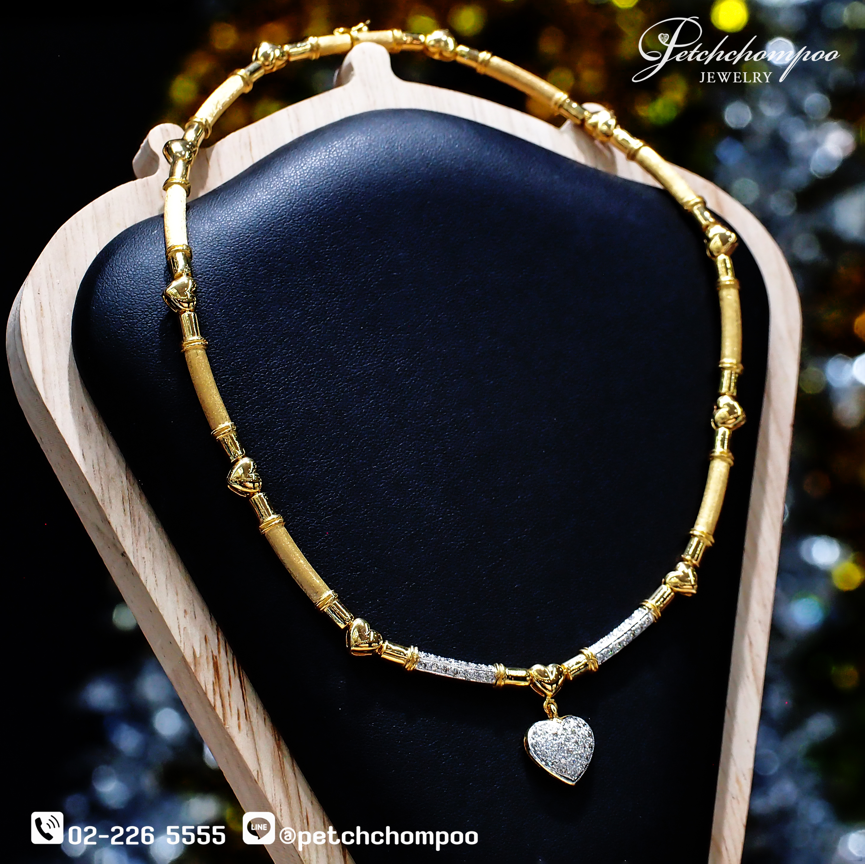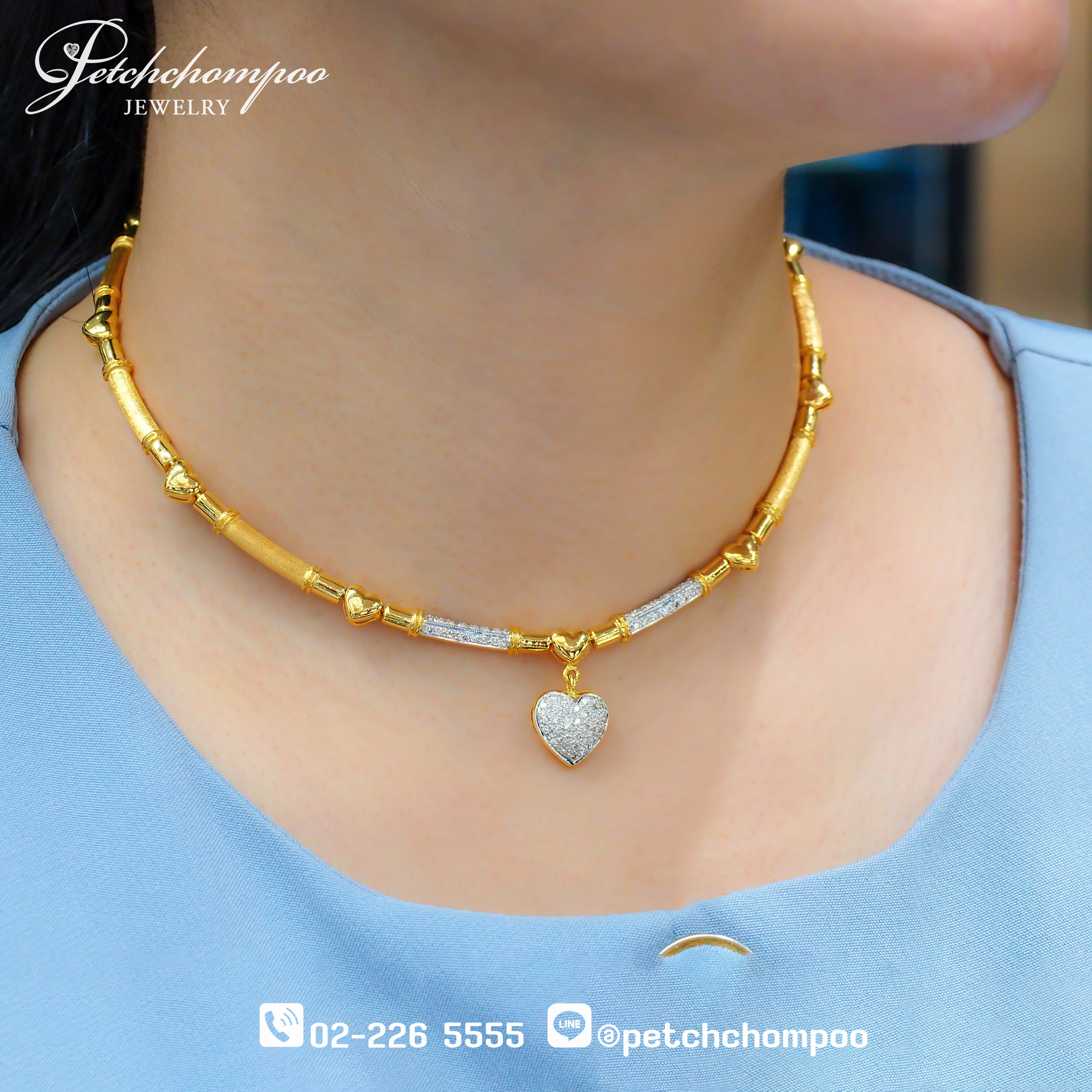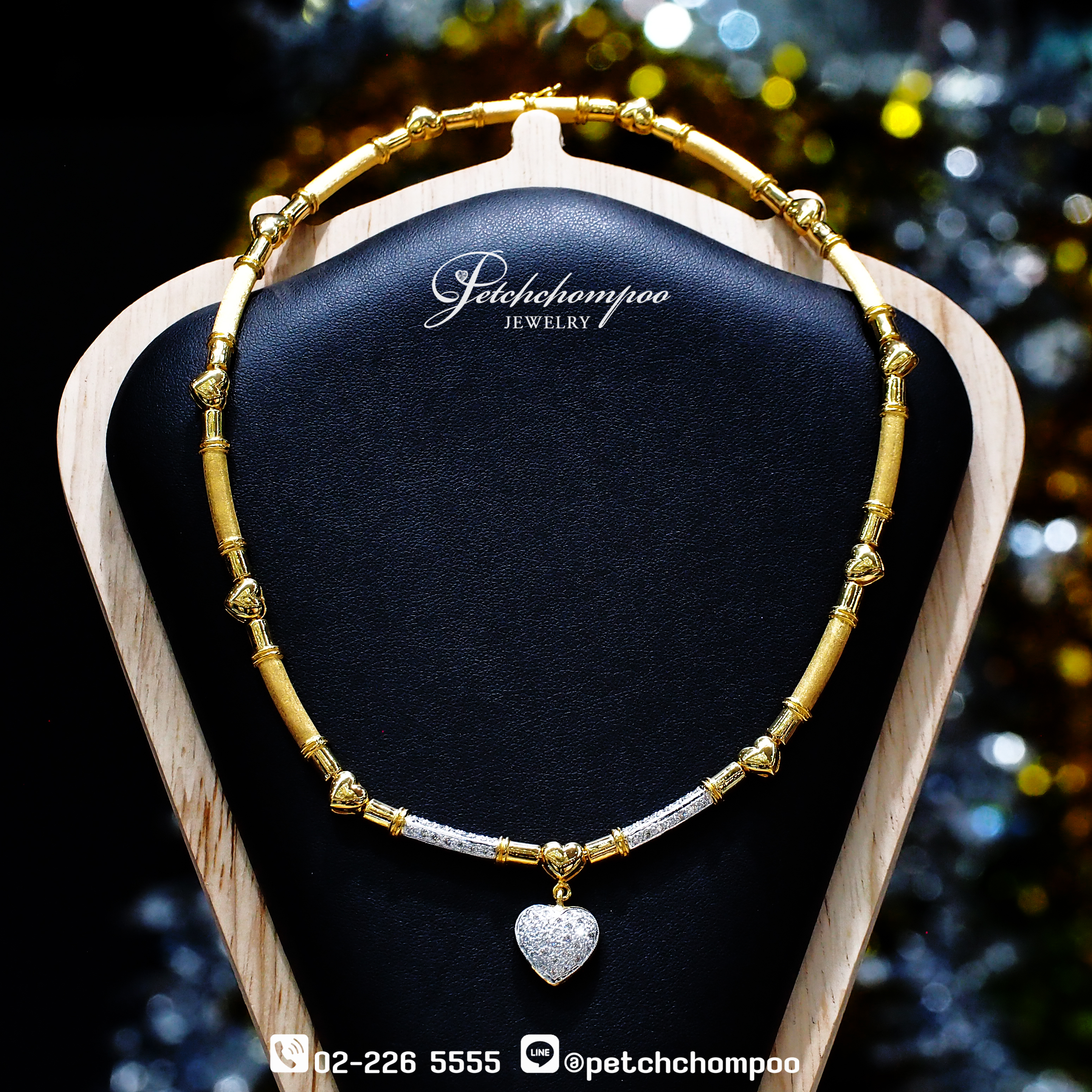 ► ดีไซน์ : สร้อยคอทองคำพร้อมจี้หัวใจประดับเพชร