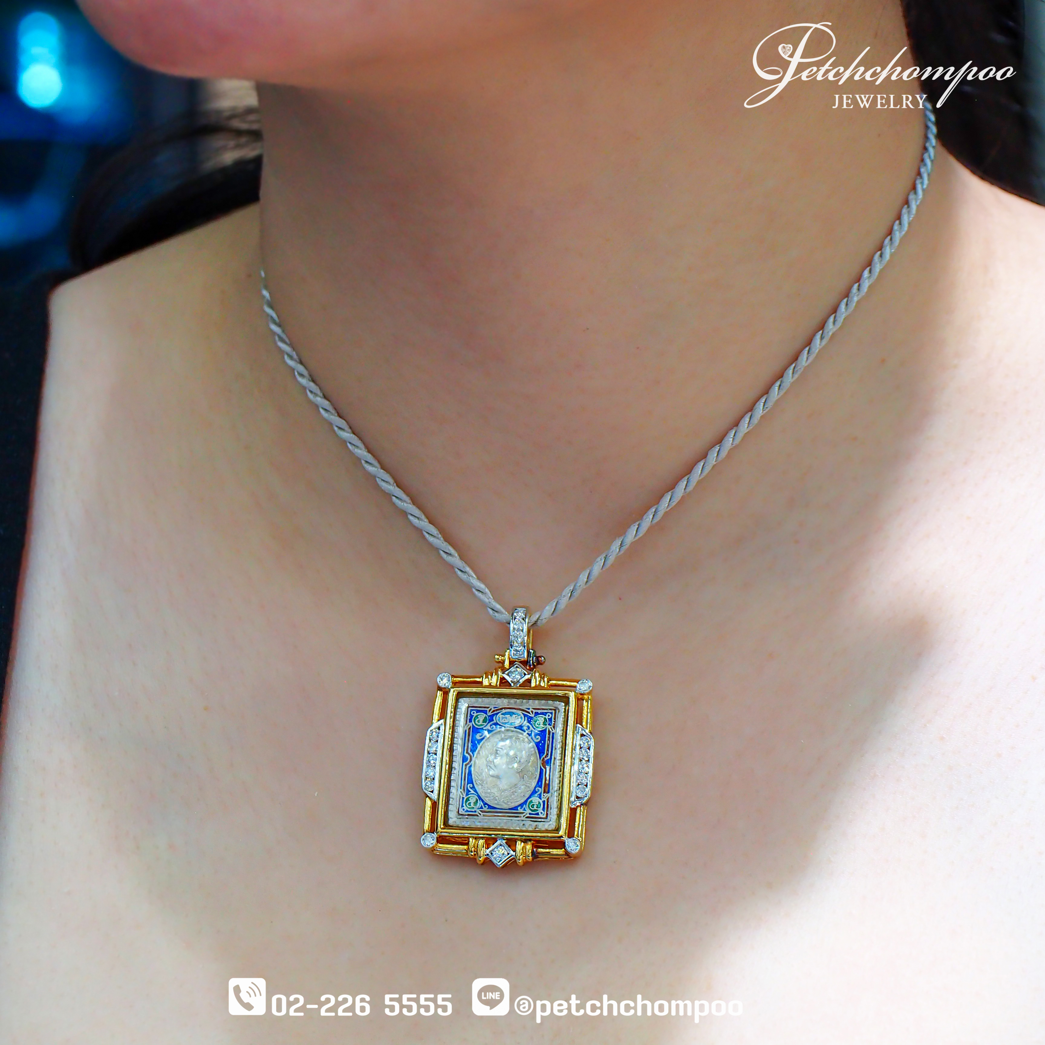 จี้ Royal Legacy Rama V™ ถ่ายทอดเรื่องราวอันทรงคุณค่าของพ่อหลวงรัชกาลที่ 5 ผ่านงานกรอบทองคำดีไซน์วิจิตร น้ำหนัก 15.19 กรัม ประดับเพชรแท้คัดพิเศษรวม 0.64 กะรัต (20 เม็ด) เรียงตัวรอบกรอบอย่างประณีต เพิ่มความสง่างาม มีระดับ และทรงคุณค่าทั้งในด้านประวัติศาสตร์และศิลปะ เหมาะสำหรับทั้งผู้สะสม ผู้ศรัทธา และผู้มองหาจี้ที่มีความหมายลึกซึ้งและสวมใส่ได้ทุกโอกาส™
