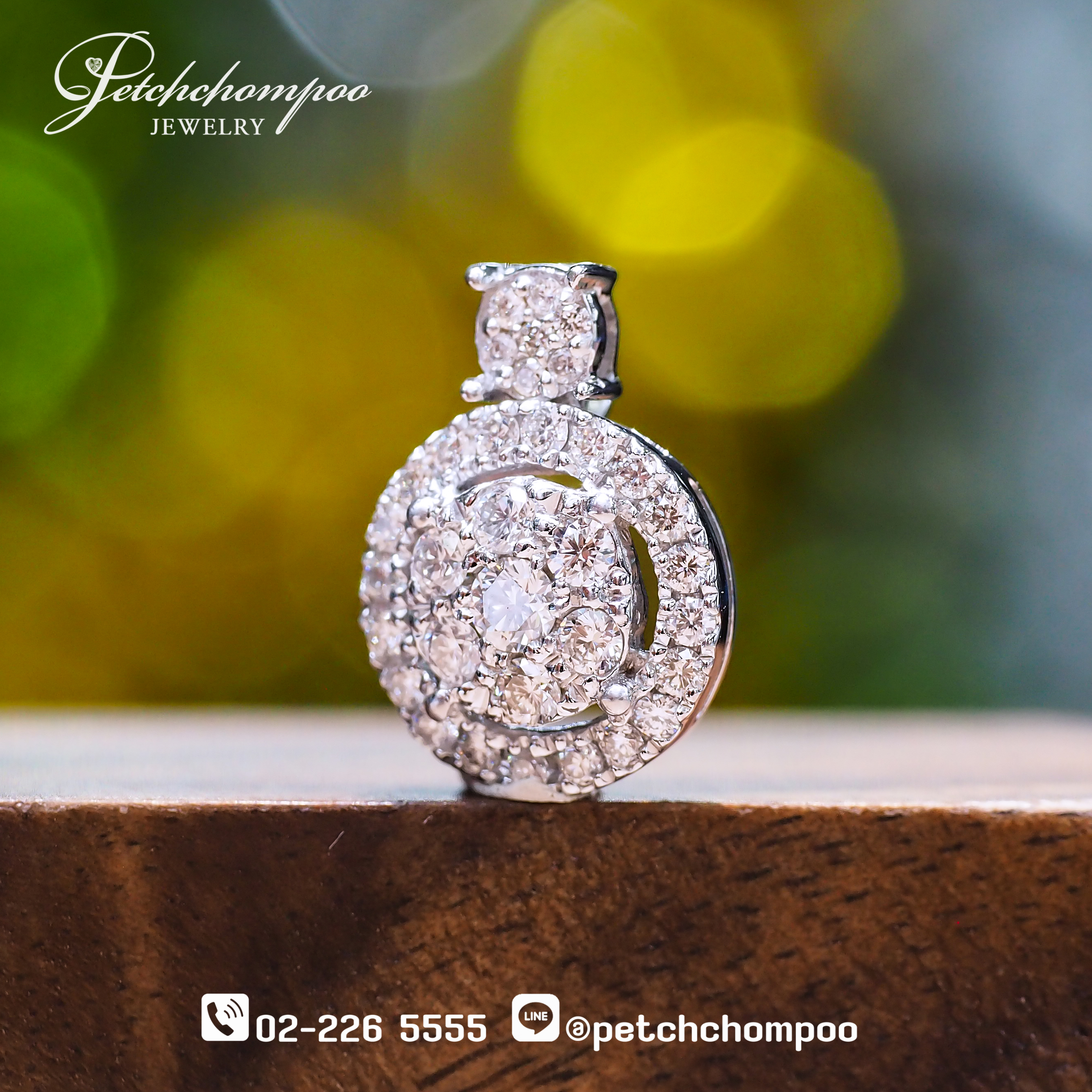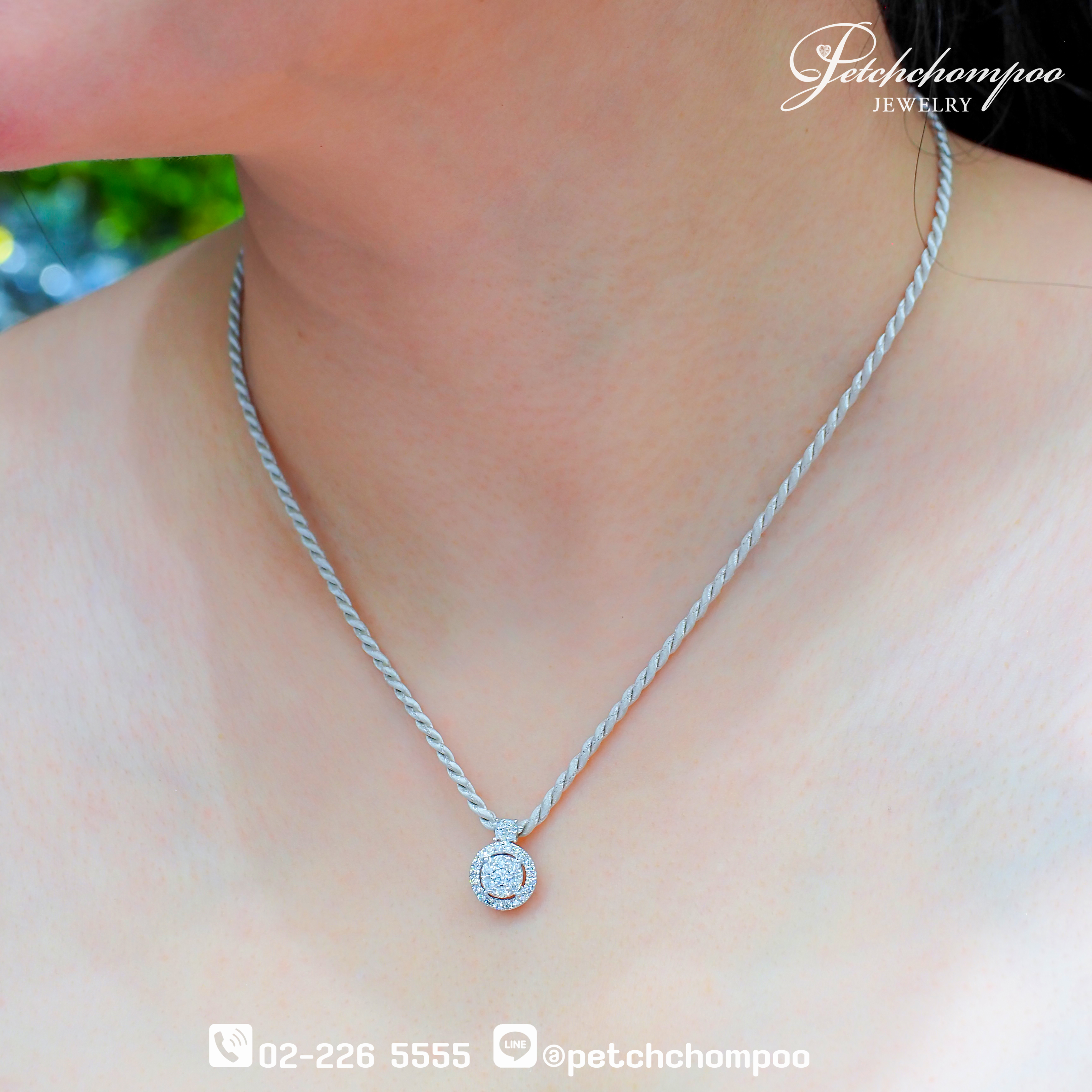 จี้เพชรดีไซน์วงกลมสองชั้นสุดคลาสสิก ที่สะท้อนความหรูหราทุกองศา ตัวเรือนทองคำขาว 1.84 กรัม ประดับเพชรแท้น้ำงามรวม 0.45 กะรัต (34 เม็ด) จัดเรียงในรูปแบบ Cluster & Double Halo เพิ่มมิติเล่นแสงให้ดูใหญ่ สว่าง และโดดเด่นเหนือระดับ ดีไซน์หัวจี้แบบต่อเนื่องช่วยเพิ่ม Balance ให้ชิ้นงาน เวลาสวมใส่จะสะท้อนแสงประกายละเอียดงดงาม เหมาะทั้งเป็นจี้โชว์เดี่ยว หรือจับคู่กับสร้อยเส้นโปรดเพื่อเสริมลุคหรูอย่างมีรสนิยม