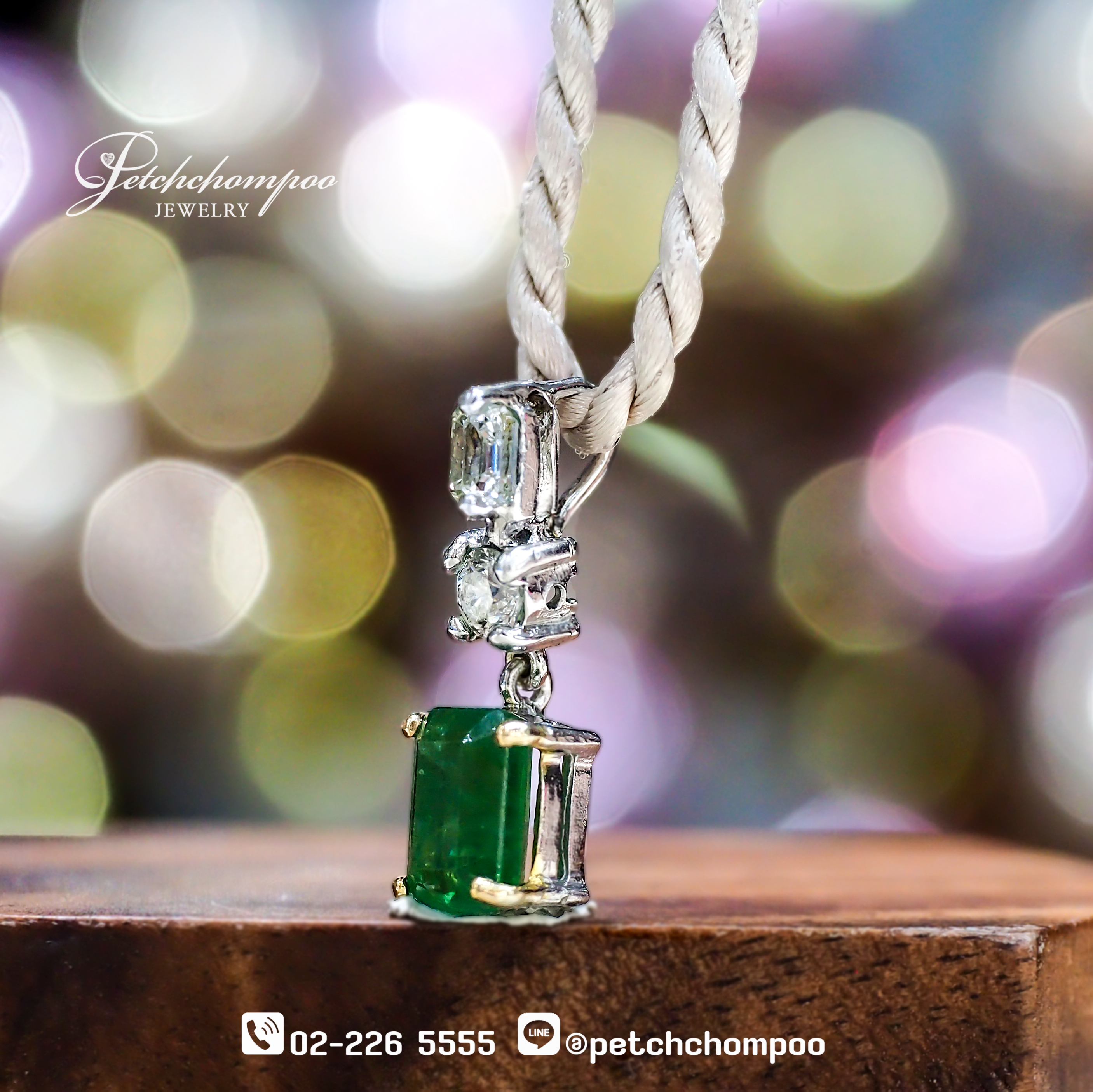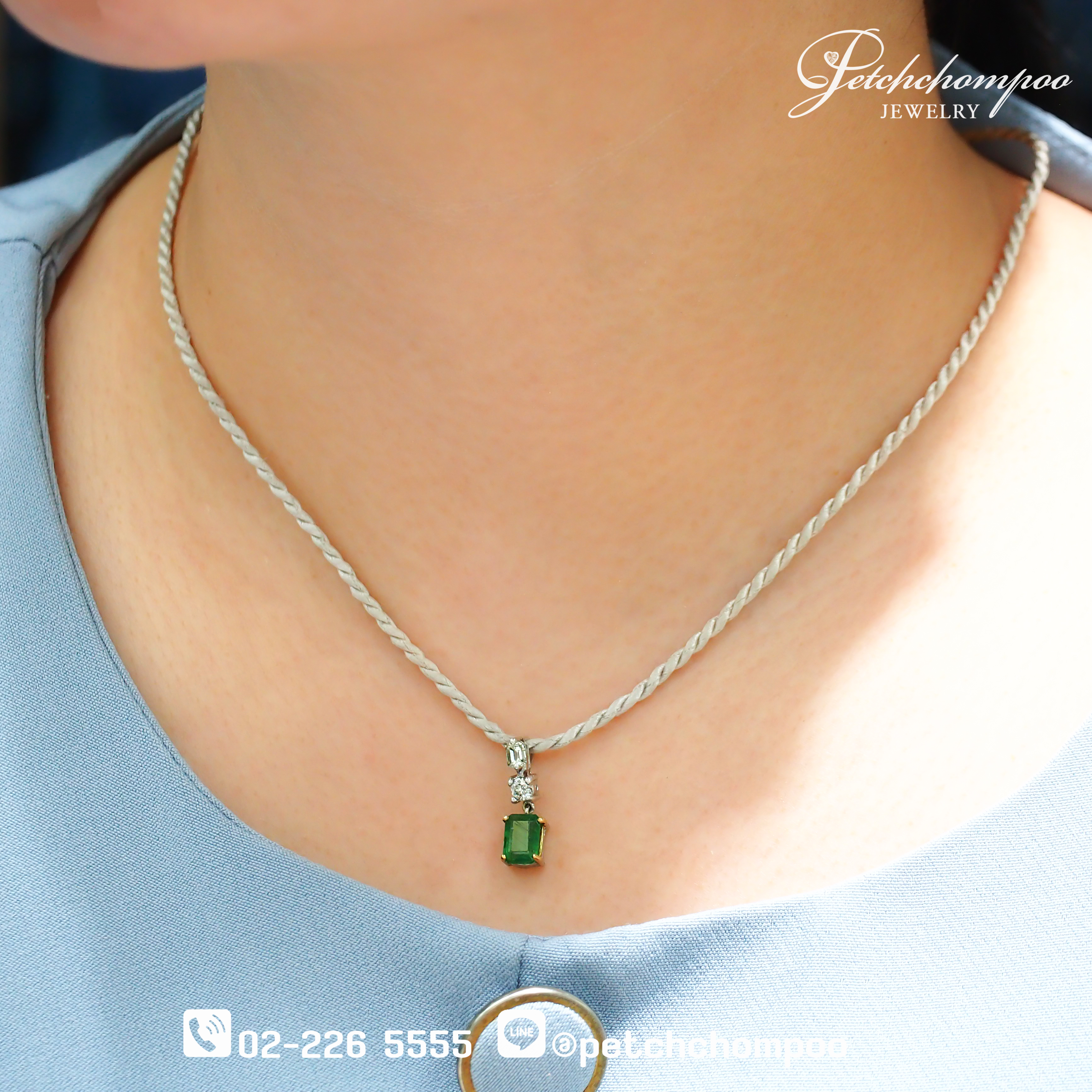 งานจี้ Emerald Minimal Trilogy™ ออกแบบในคอนเซปต์ “Luxury in Simplicity” ผสมผสานระหว่างความหรูหราของมรกตกับความมินิมอลที่ใส่ได้ทุกวันประดับด้วย