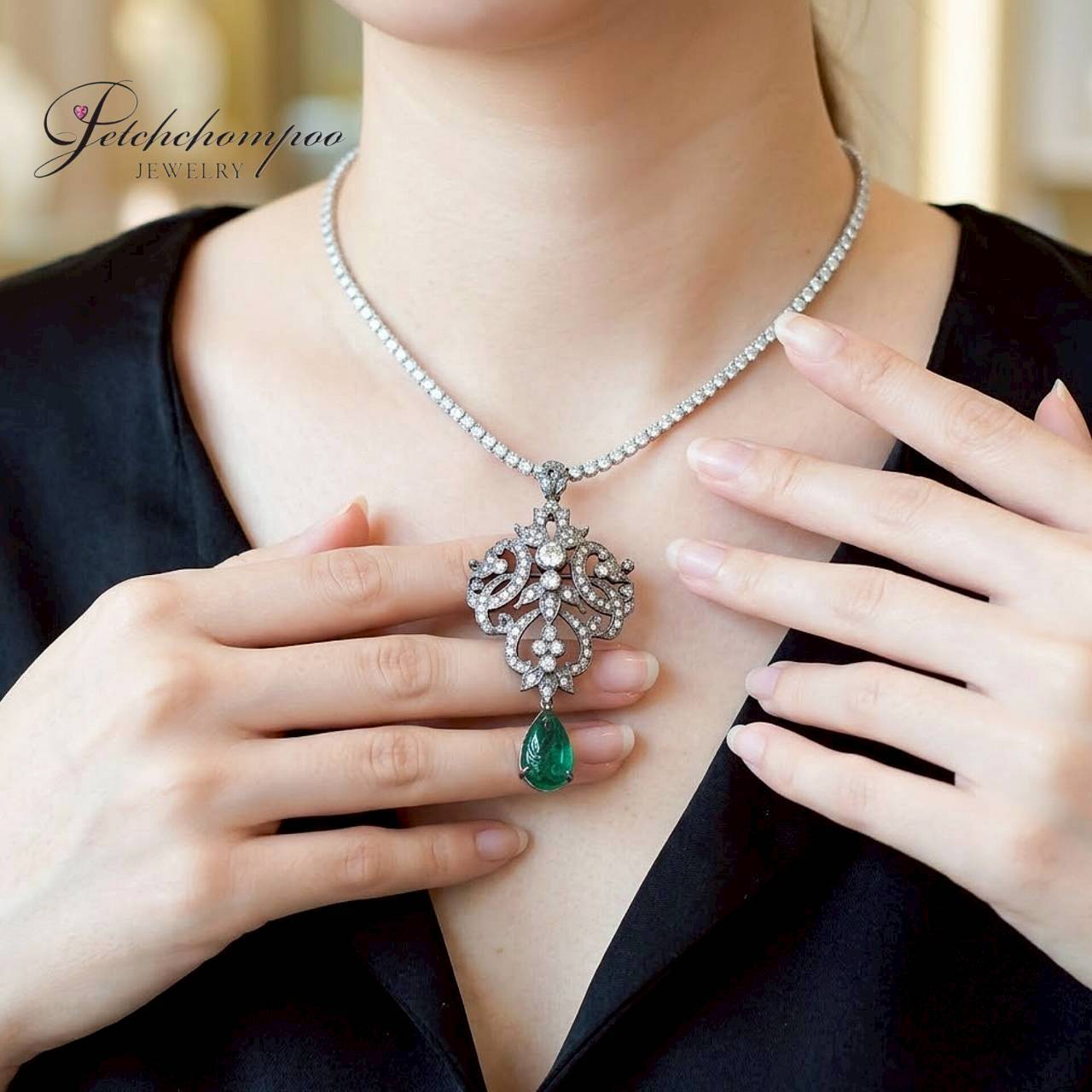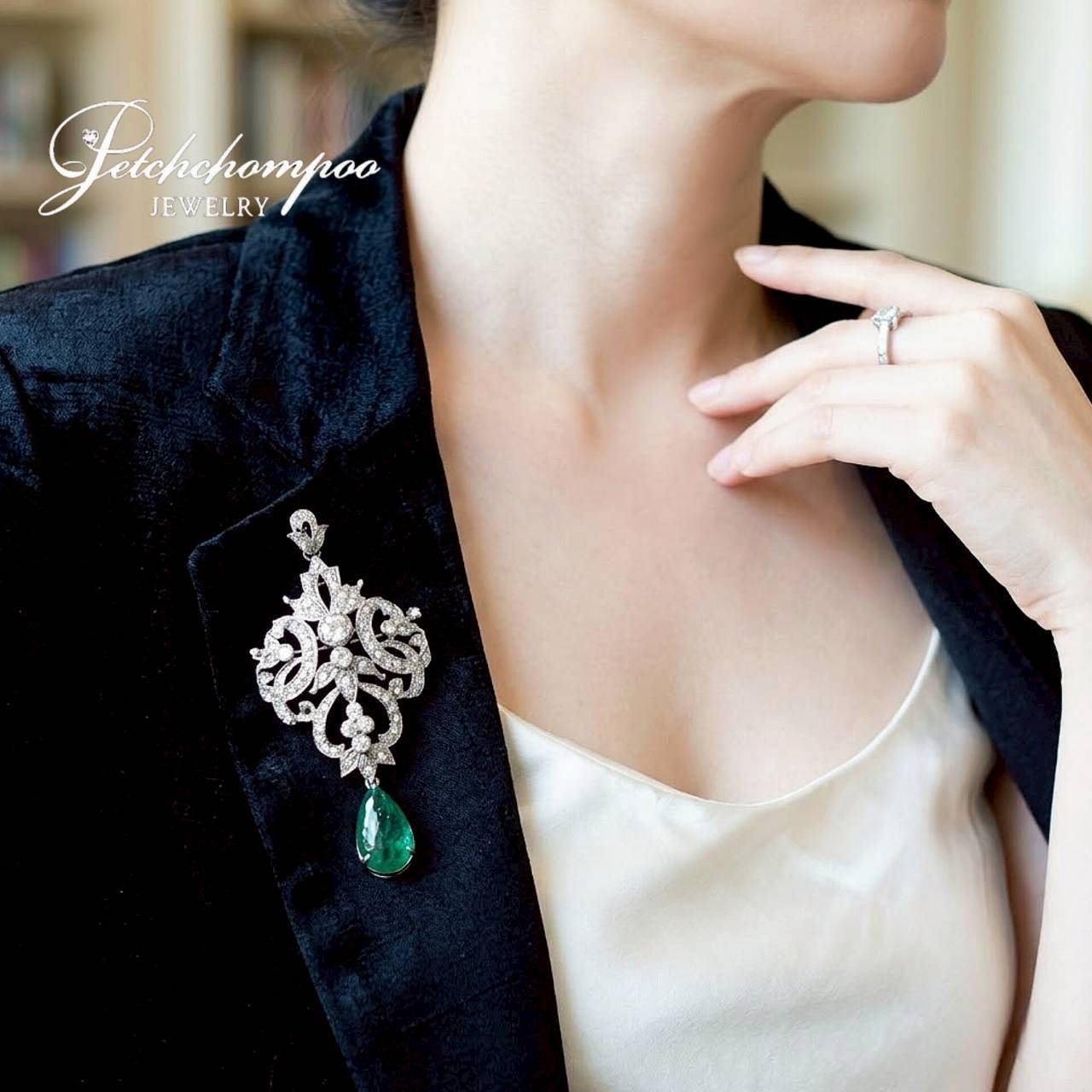 จี้/เข็มกลัดโบราณ Antique Emerald Majesty มรกตโคลอมเบีย & เพชร