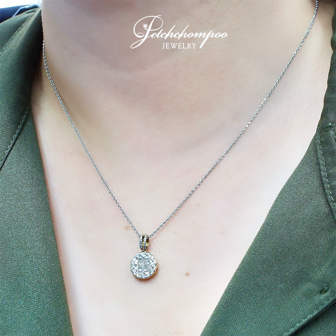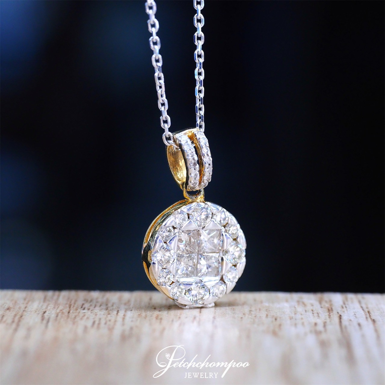 จี้เพชรรัศมี Radiant Halo Spark™ 0.90 กะรัต ประกายล้อม,ดีไซน์จี้ทรงกลมสุดหรูที่รังสรรค์จากเพชรหลายเม็ดประกอบกันอย่างประณีต เกิดเป็นประกายสว่างเจิดจรัสในทุกมุมมอง ตัวเรือนทองคำขาวโทนหรูสะอาดตา เพิ่มมิติด้วยวงแหวนล้อมเพชรสองชั้น ทำให้ชิ้นงานดูโดดเด่น