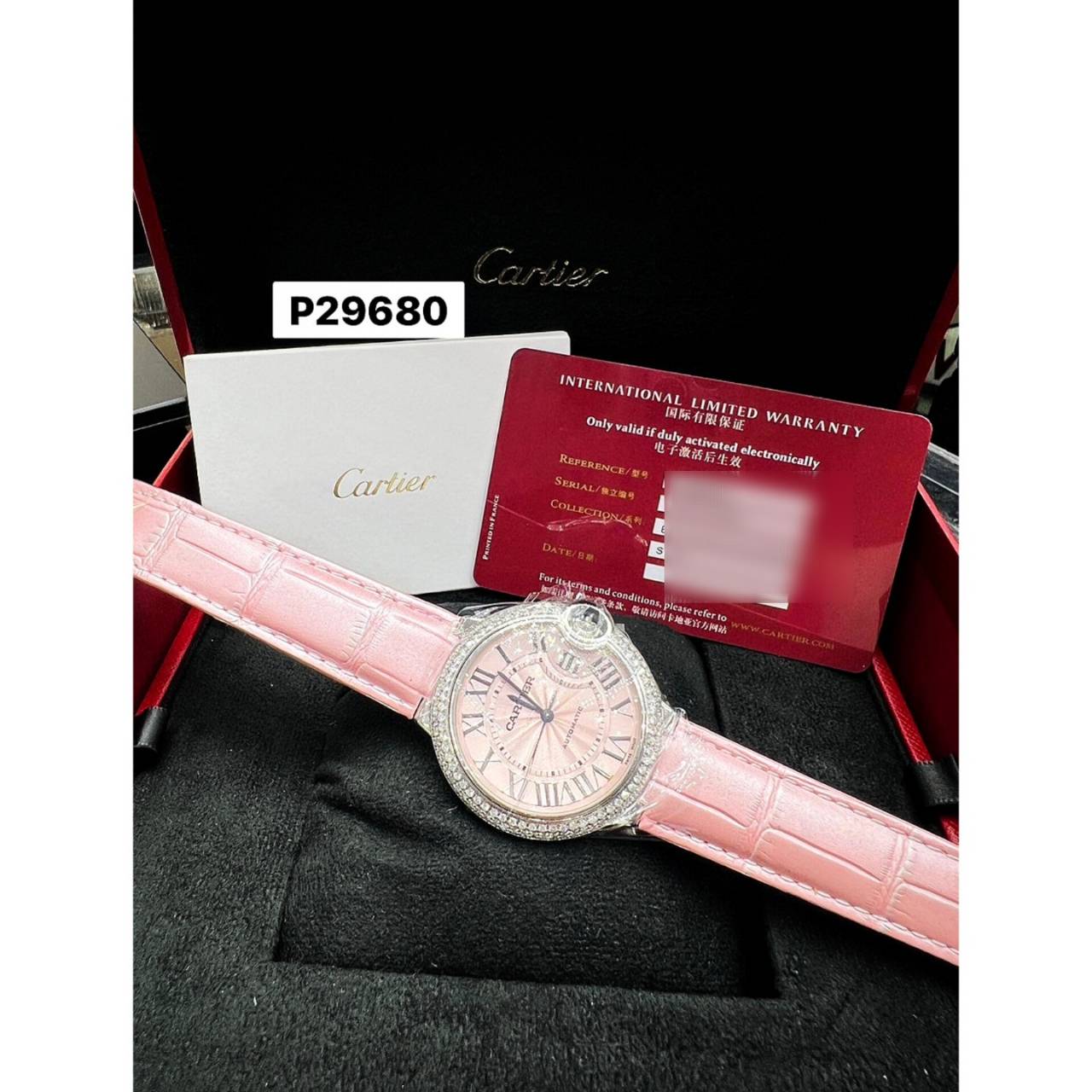 พบกับ Cartier Ballon Bleu 36mm นาฬิกาที่สะท้อนถึง ความสง่างามของผู้หญิงยุคใหม่ ด้วยหน้าปัดสีชมพูละมุน ฝังเพชร After-Set รอบตัวเรือน เสริมด้วยสายหนังสีชมพูที่ช่วยเพิ่มความหวานแบบมีระดับ