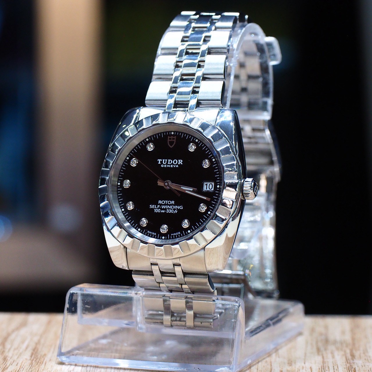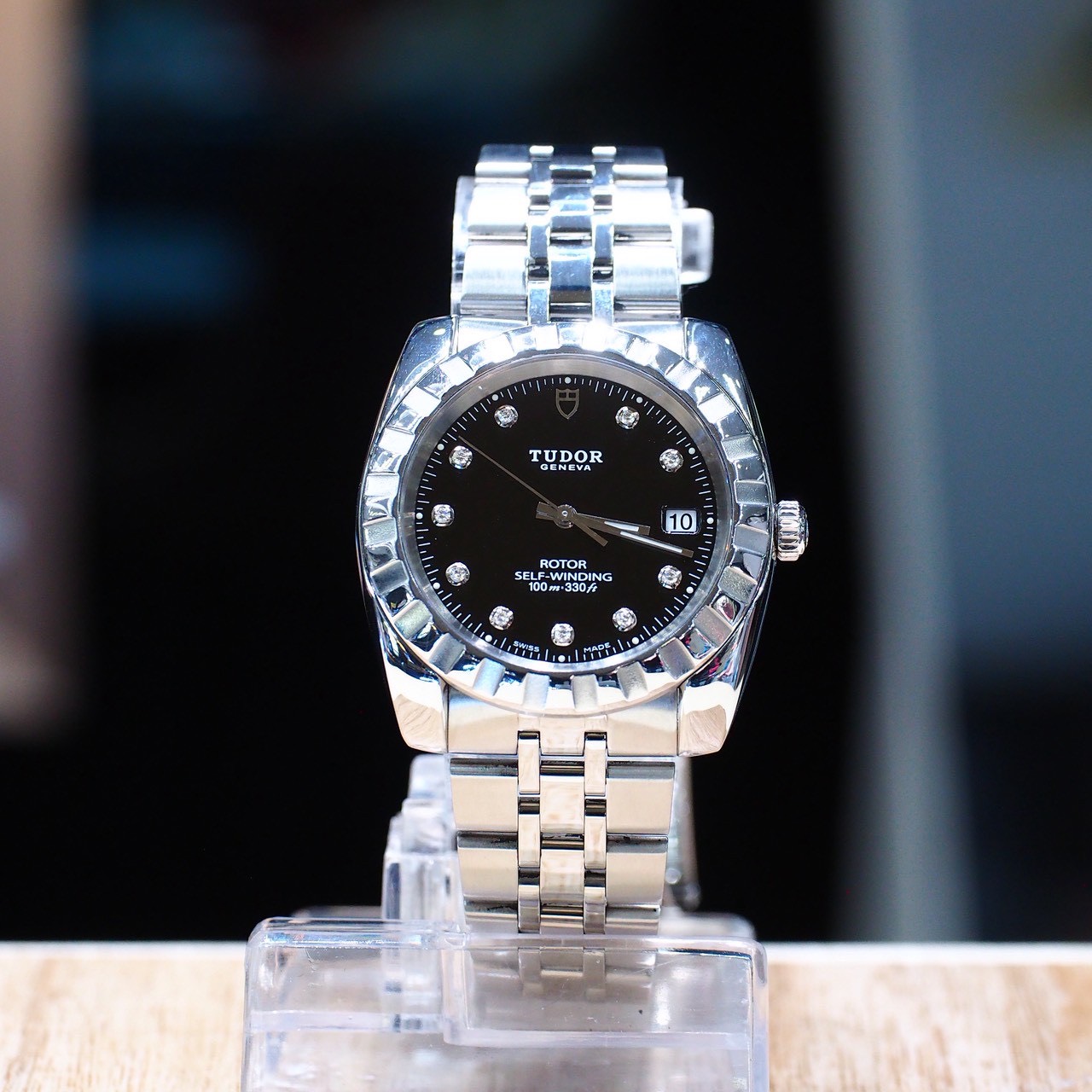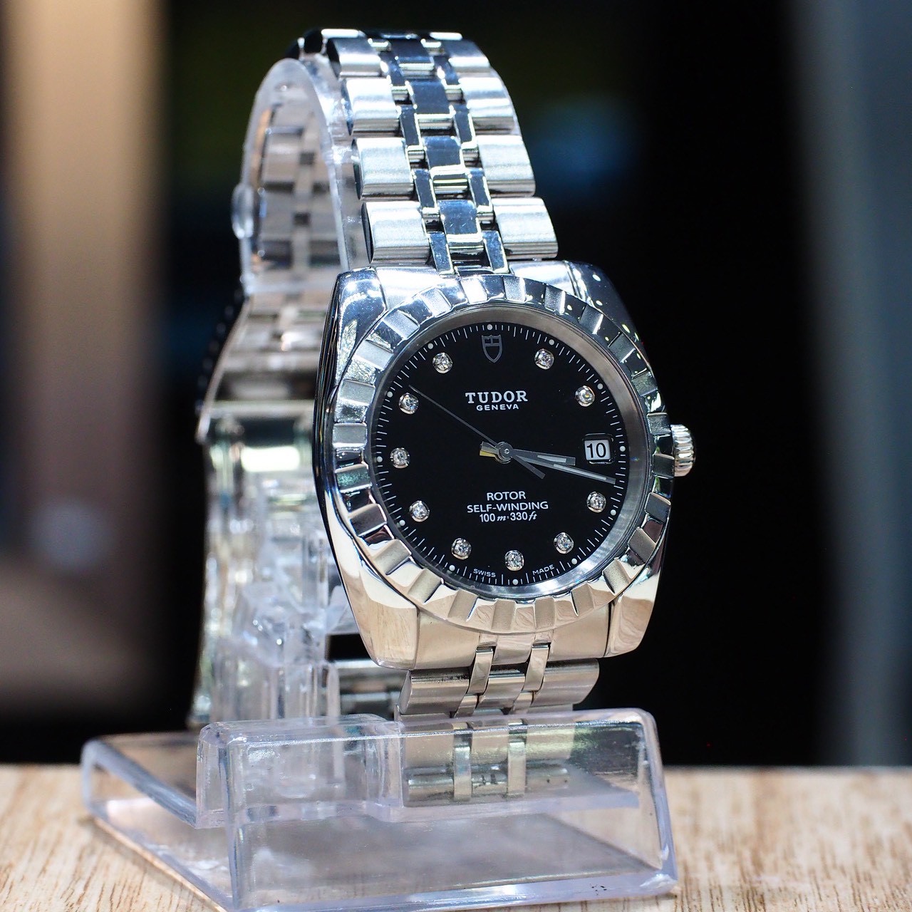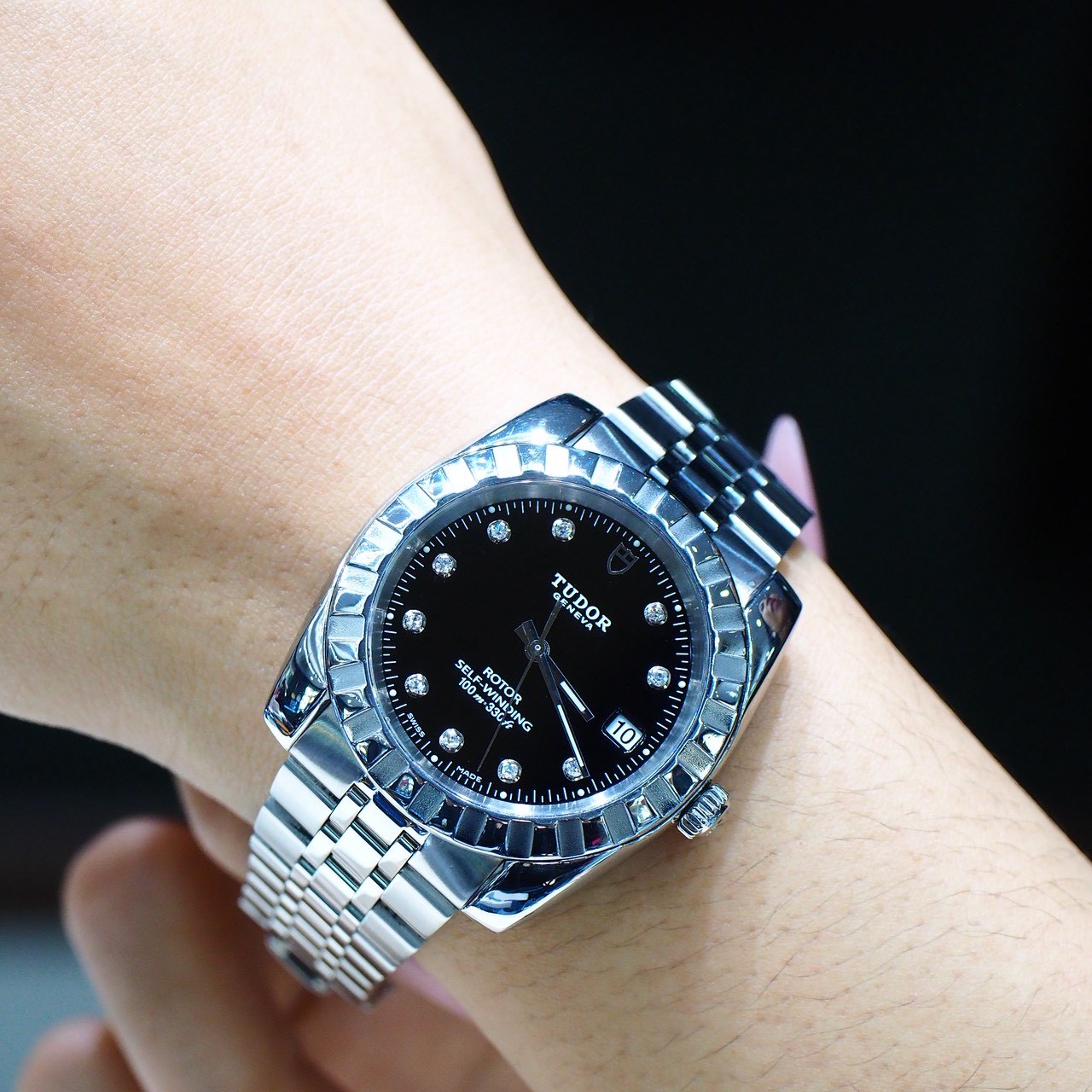 นาฬิกา TUDOR self-winding 40mm kingsize หน้าปัดดำ กระจก sapphire เลขเพชรแท้ ระบบ automatic