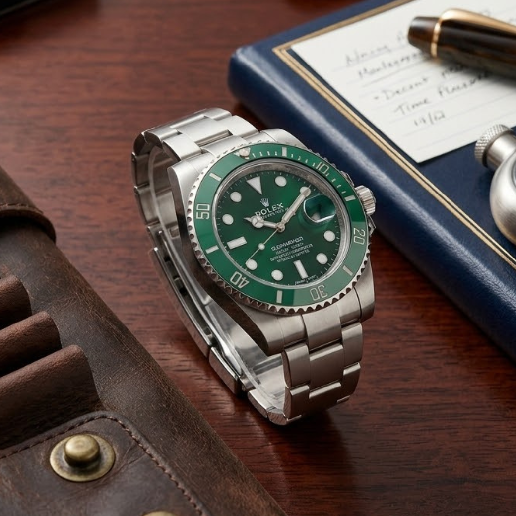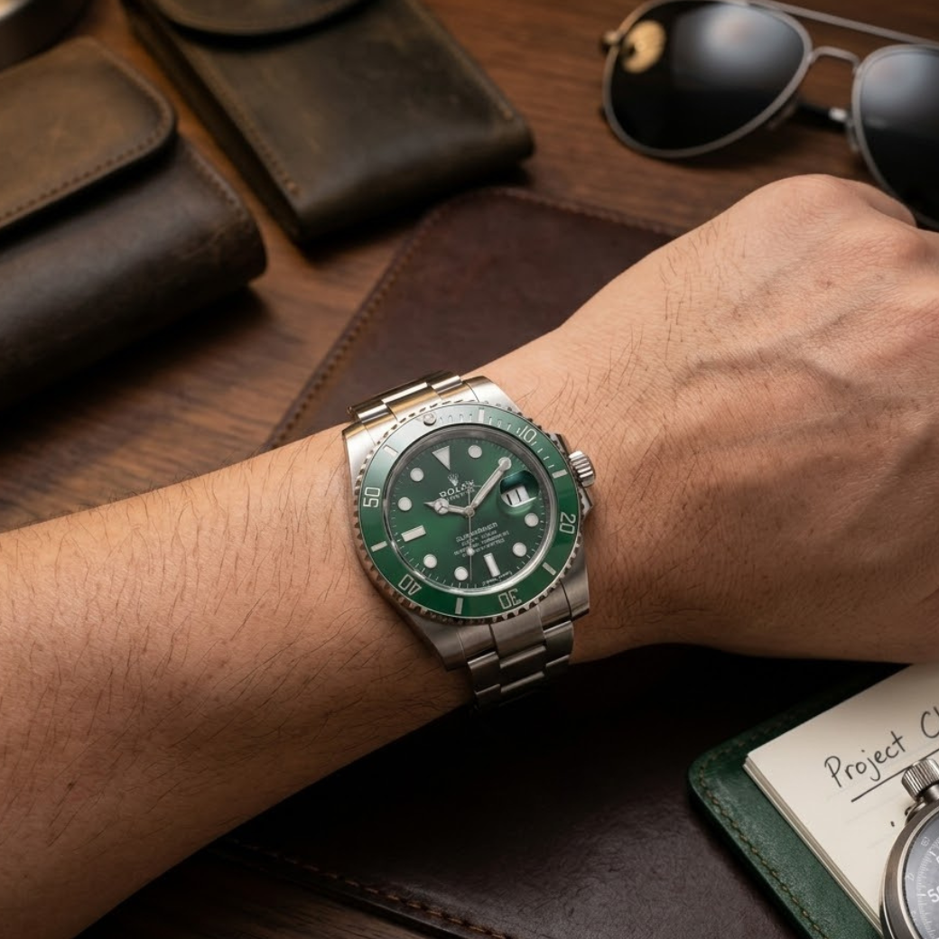 เรือนสปอร์ตไอคอนระดับโลกที่ไม่มีวันตกยุค — Rolex Submariner โทนเขียวอันโดดเด่นสะดุดตา หน้าปัดสีเขียวลึกจับคู่กับ Ceramic Bezel สีเขียวเข้ม สะท้อนเอกลักษณ์เฉพาะตัวอย่างทรงพลัง ⇒ ให้ลุคแข็งแกร่งแต่หรูหราในเวลาเดียวกันขนาด 40 mm สัดส่วนสมดุลบนข้อมือชาย เพิ่มภาพลักษณ์ความมั่นใจและสง่างามระบบ Automatic Oyster Perpetual อันเลื่องชื่อด้านความแม่นยำ พร้อมคุณสมบัติกันน้ำ 300 เมตร ตามมาตรฐาน Diver Professional นาฬิกาที่ไม่ได้เป็นเพียงเครื่องบอกเวลา แต่เป็นสัญลักษณ์ของสถานะและรสนิยม