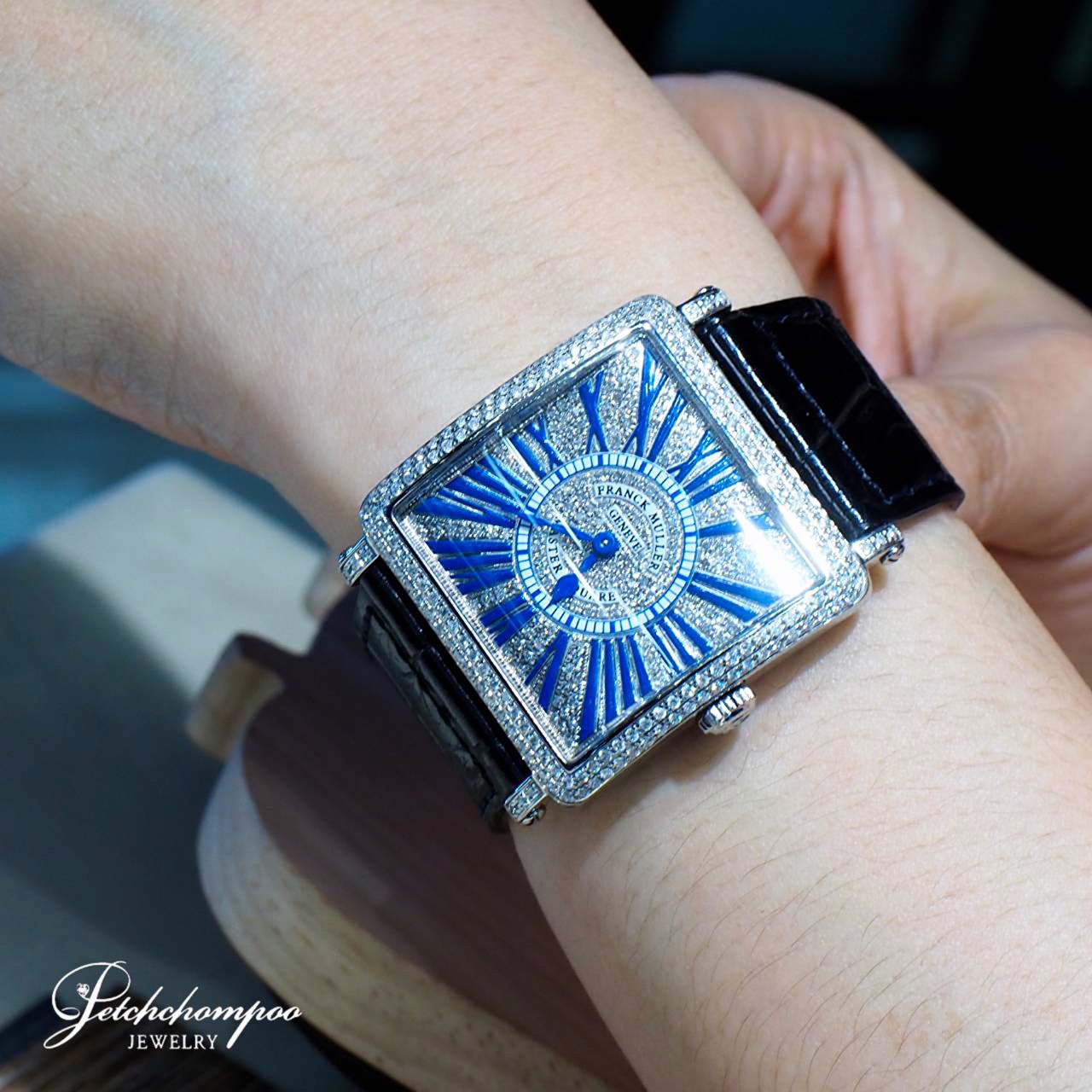 สัมผัสความเลอค่าบนข้อมือกับดีไซน์สี่เหลี่ยมจัตุรัสอันเป็นเอกลักษณ์ ตัวเรือนและหน้าปัดคัดสรร เพชรแท้ After Setting น้ำงาม เล่นไฟที่สุด เสริมความโดดเด่นด้วยเลขโรมันลงยาสีฟ้า มอบลุคที่ดูภูมิฐานและอ่อนหวานในเวลาเดียวกัน