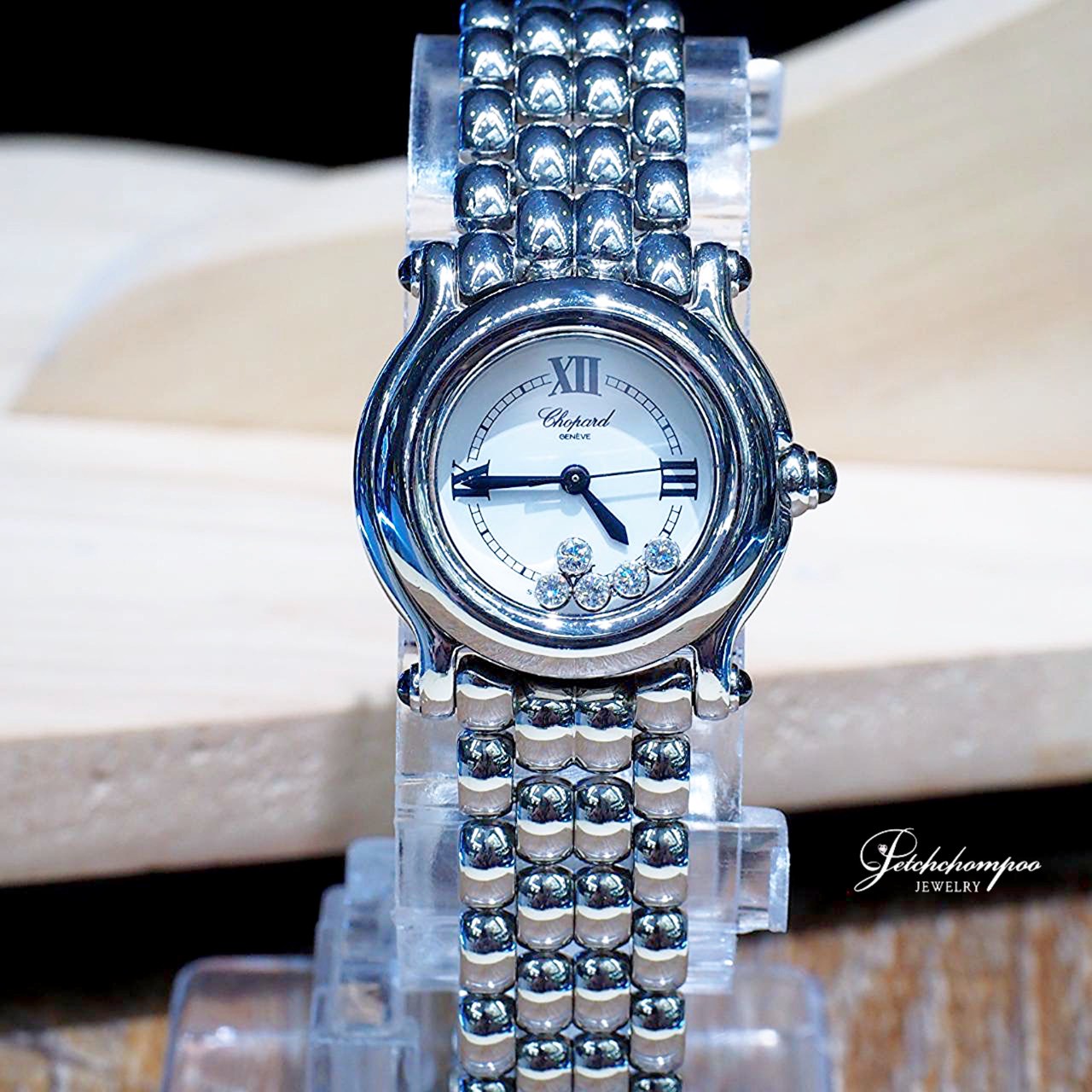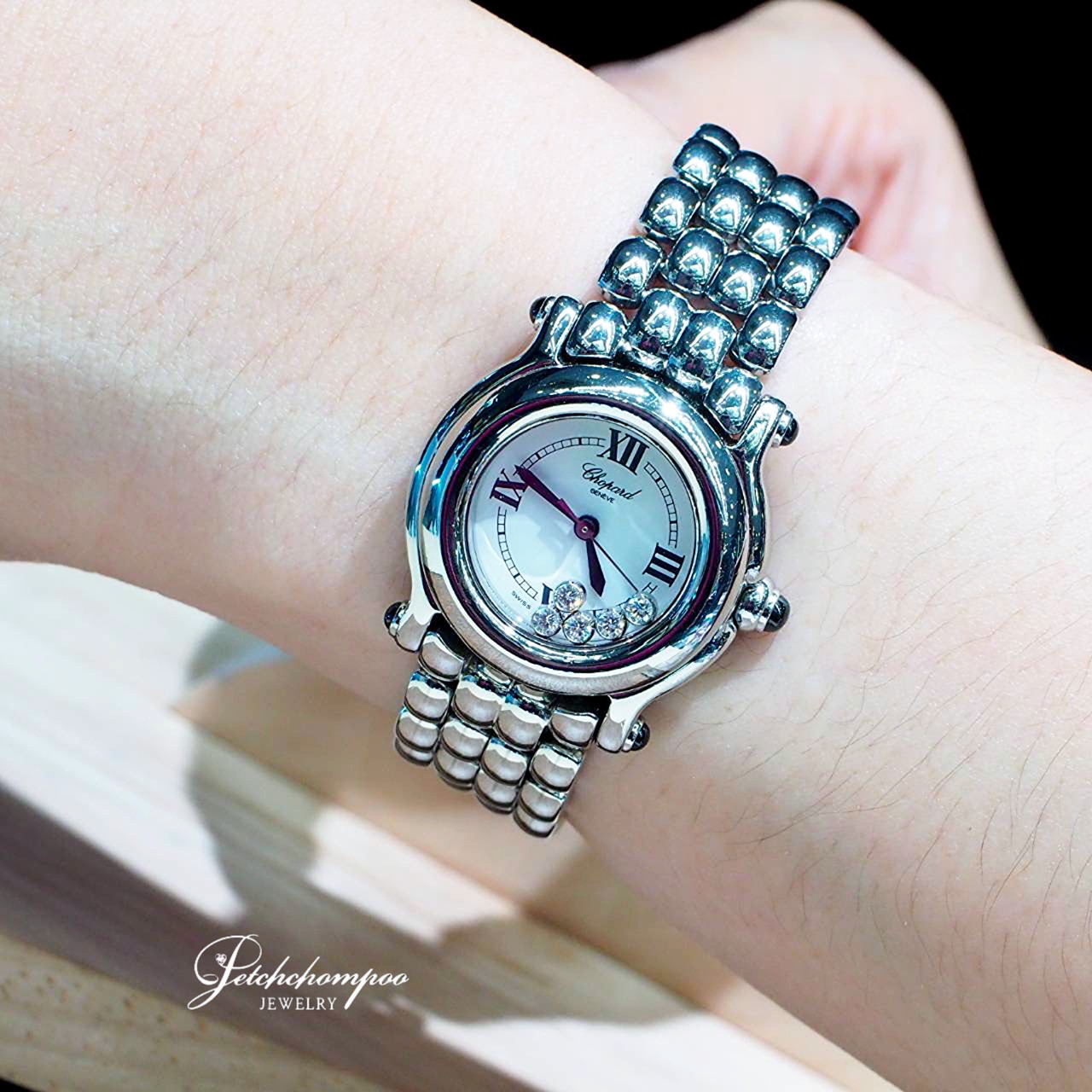 สัมผัสเสน่ห์ที่เหนือกาลเวลาไปกับ Chopard Happy Sport ความหรูหราที่มาพร้อมเอกลักษณ์ เพชรกลิ้ง 5 เม็ด (Floating Diamonds) น้ำงามที่สุด เคลื่อนไหวอย่างอิสระบนหน้าปัดราวกับเต้นระบำ ตัวเรือนและสาย Steel ดีไซน์เม็ดลูกปัด (Bead Bracelet) มอบสัมผัสที่เนียนไปกับข้อมือ และให้ลุคที่ดูหรูหราเหมือนสวมใส่จิวเวลรี่ระดับไฮเอนด์