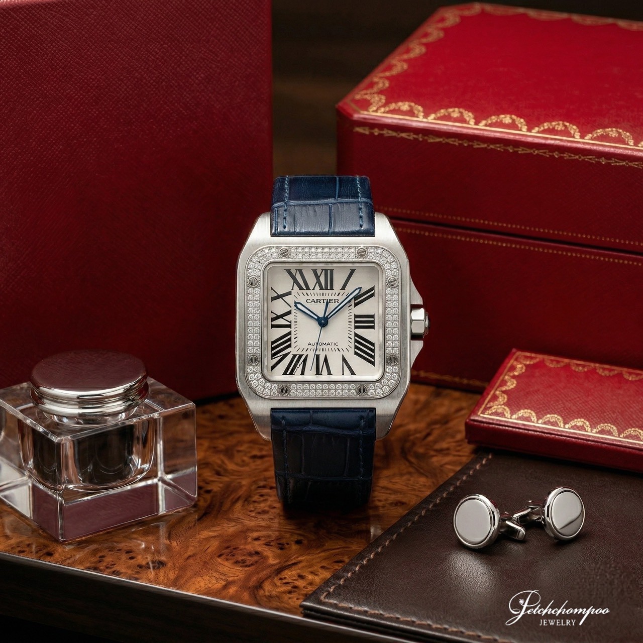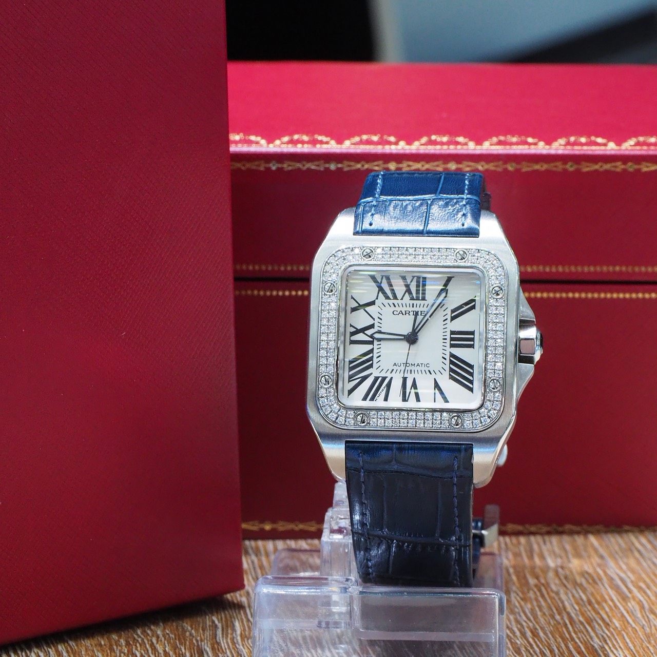 นาฬิกา Cartier Santos 100 Size XL สายสีน้ำเงิน