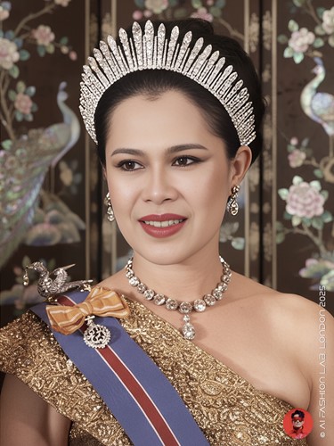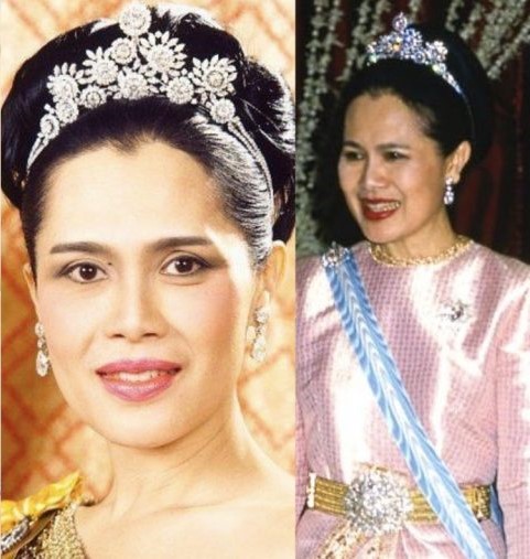มงกุฎเพชรรูปดอกไม้ คาดการณ์ว่าเป็นเครื่องประดับจากแบรนด์ Van Cleef & Arpels สมเด็จพระนางเจ้าสิริกิติ์ พระบรมราชินีนาถ พระบรมราชชนนีพันปีหลวง สวมใส่เมื่อเสด็จพระราชดำเนินเยือนยุโรปและอเมริกาในปี 2523 นอกจากมงกุฎชิ้นนี้จะใช้เป็นมงกุฎได้แล้วยังสามารถนำมาดัดแปลงเป็นสร้อยคอได้อีกด้วย