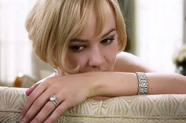 The Great Gatsby ภาพยนตร์ฮอลลีวู้ดฉายในปี 2013 กำกับโดย บาซ เลอห์มานน์ แรงบันดาลใจมาจากนวนิยายของเอฟ. สกอตต์ ฟิตซ์เจอรัลด์เขียนขึ้นโดยชาวอเมริกัน คุณจะพบเห็นแหวนเพชรอันเลอค่าที่สวมใส่โดยแครี มัลลิแกน รับบทเป็น เดซี่ บูชาแนน ลูกพี่ลูกน้องของ นิค คาร์ราเวย์ที่รับบทโดย เจย์ แกตสบี้ แหวนหมั้นทรงสี่เหลี่ยม ประกอบด้วยเพชรล้อมเม็ดเล็กๆ หลายเม็ดมูลค่ามากถึง 3.9 ล้านดอลลาร์สหรัฐ