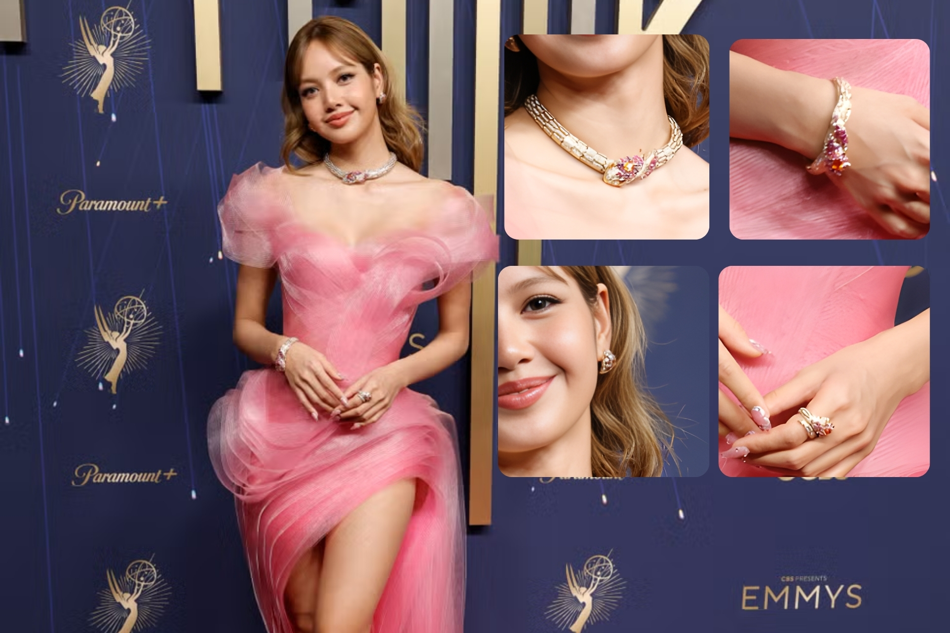 ลิซ่า เสิร์ฟลุคสุดปังเฉิดฉายในงาน Emmy Award 2025 สวยสะกดทุกสายตา เธอมาในลุคสุดหวานสีชมพูดุจเจ้าหญิงที่หลุดออกมาจากโลกแห่งเทพนิยาย ชุดที่ดีไซน์ด้วยผ้าชีฟองแล้วทับถมลากยาวเป็นเลเยอร์ลงไปลากยาวบนพื้นพรม งดงามมากๆ เรียกทุกคู่สายตาให้จับจ้อง และที่จะไม่พูดถึงไม่ได้เลย นอกจากชุดสวยๆ ของเธอคือเครื่องเพชรคอลเลคชั่นจาก BVLGARI ที่เธอสวมใส่ออกงานในฐานะที่ลิซ่าเป็นแบรนด์แอมบาสเดอร์จะธรรมดาได้ยังไง ระดับเธอต้องคอลเลคชั่น High Jewelry เท่านั้น ซึ่งภายในเช็ตนั้นประกอบไปด้วย