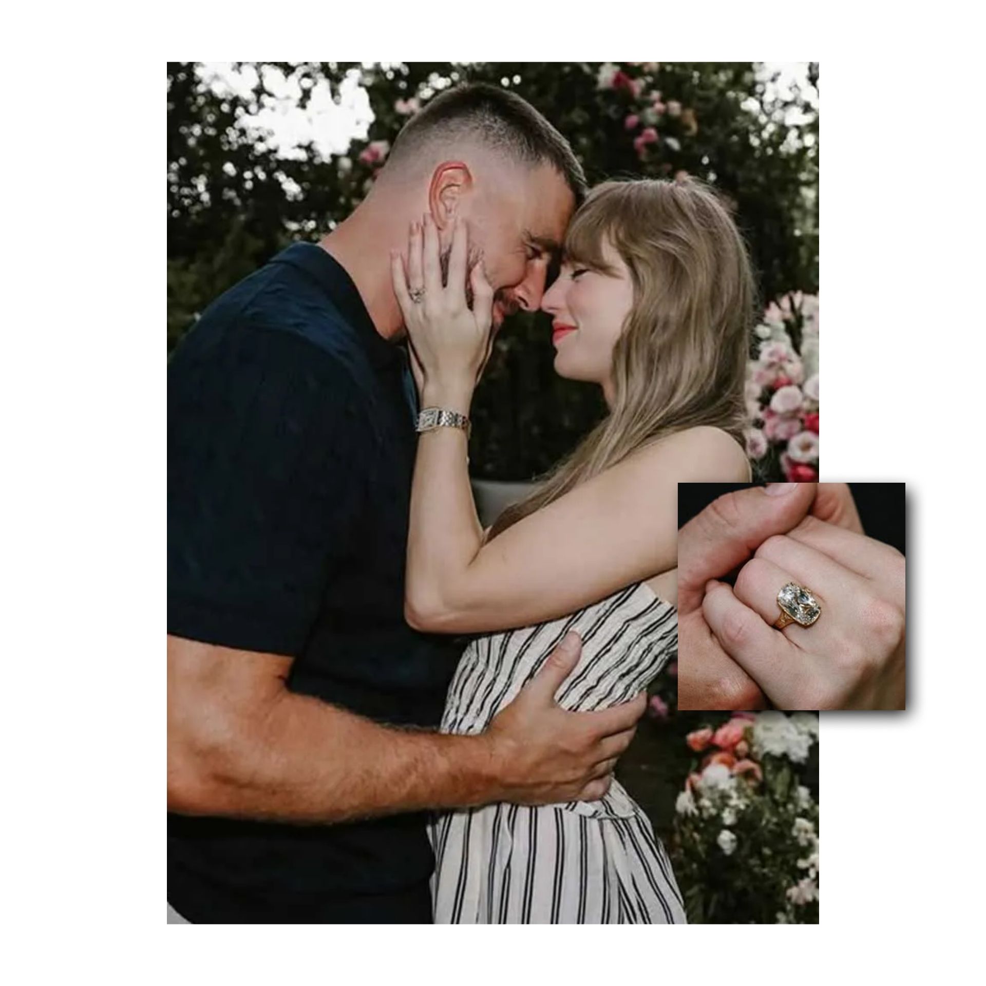 นักร้องชื่อดังอย่าง Taylor Swift ไม่มีใคร ไม่รู้จักเธอ ล่าสุดประกาศข่าวดีหมั้นหมายกับแฟนหนุ่มนักกีฬา Travice Kelce สิ่งที่ไม่พูดถึงไม่ได้เลย ก็คือ แหวนหมั้นของเธอ แหวนเพชรรูปทรง elongated cushion น้ำหนักประมาณ 8 กะรัต เพชรเม็ดหลักของแหวนคาดว่าเป็น old-minded diamonds เพชรเก่าแก่ที่หายาก มีการเจียระไนแบบเหลี่ยมเกสร ให้ประกายที่นุ่มนวล อ่อนหวาน ทำให้แหวนวงนี้มีความโรแมนติกสุดๆ แหวนหมั้นของเธอคนนี้ปลุกตำนานเพชรเก่าให้กลับมาได้รับความนิยมอีกครั้ง ส่วนราคาอยู่ราวๆ 14.5 ล้านบาท