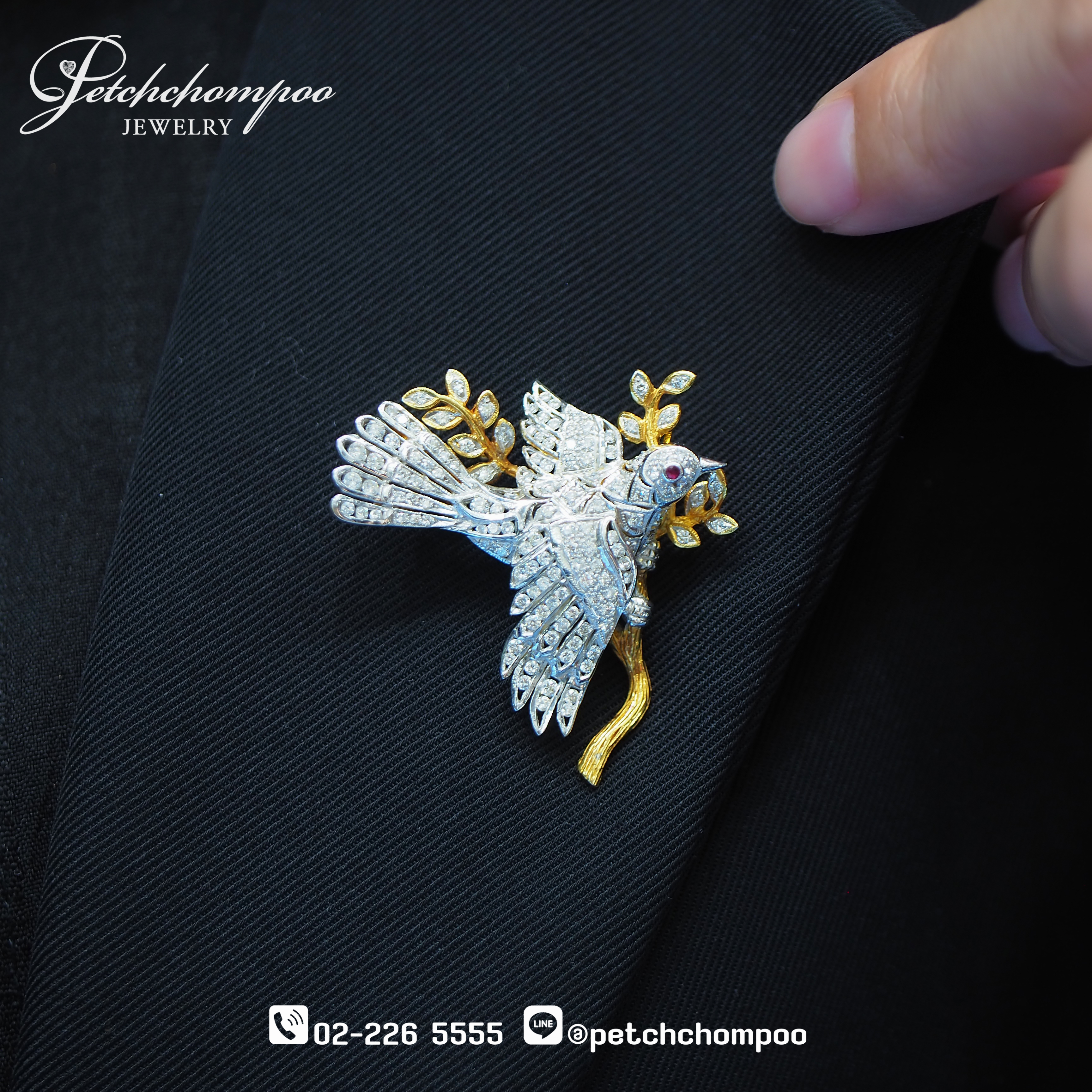 เข็มกลัดมรกตและเพชรแท้