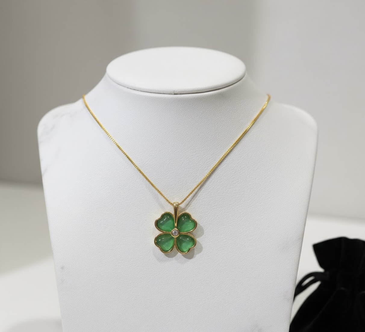 จี้หยกรูปใบโคลเวอร์ จี้หยกที่ล้อมด้วยเพชรเป็นหนึ่งในเครื่องประดับมงคลยอดนิยม ใบโคลเวอร์ขึ้นชื่อว่าเป็นใบไม้แห่งความโชคดีและความปลอดภัย ช่วยปัดเป่าสิ่งชั่วร้ายภัยอันตรายทั้งหลายทั้งปวง นอกจากนั้นยังมีความเชื่อว่า ใครได้ครอบครองจะมีโชคในด้านความรัก จะพบเจอรักแท้และสมหวังตลอดไป