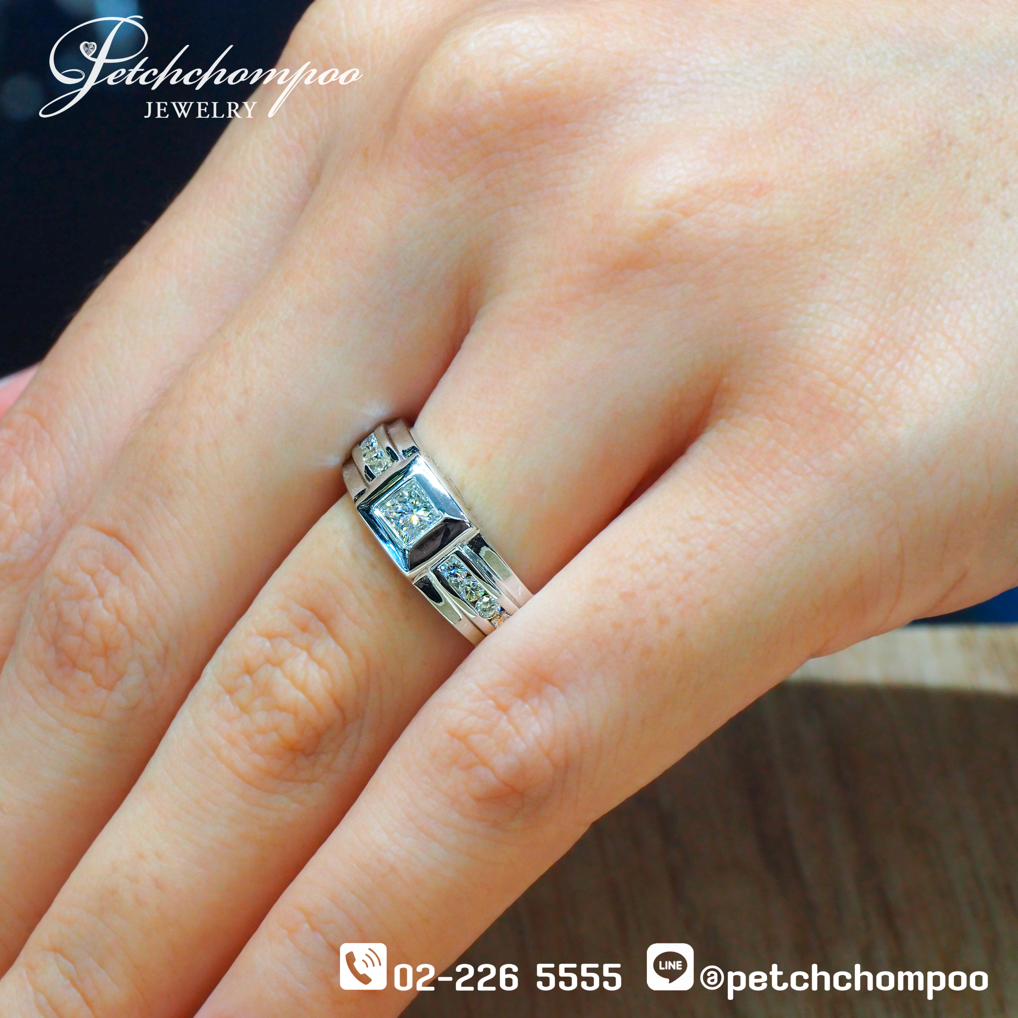 แหวนเพชรเม็ดเดียว ตัวเรือนเป็นทองคำขาว ส่วนเพชรเม็ดกลางเลือกขนาดได้ตามความชื่น