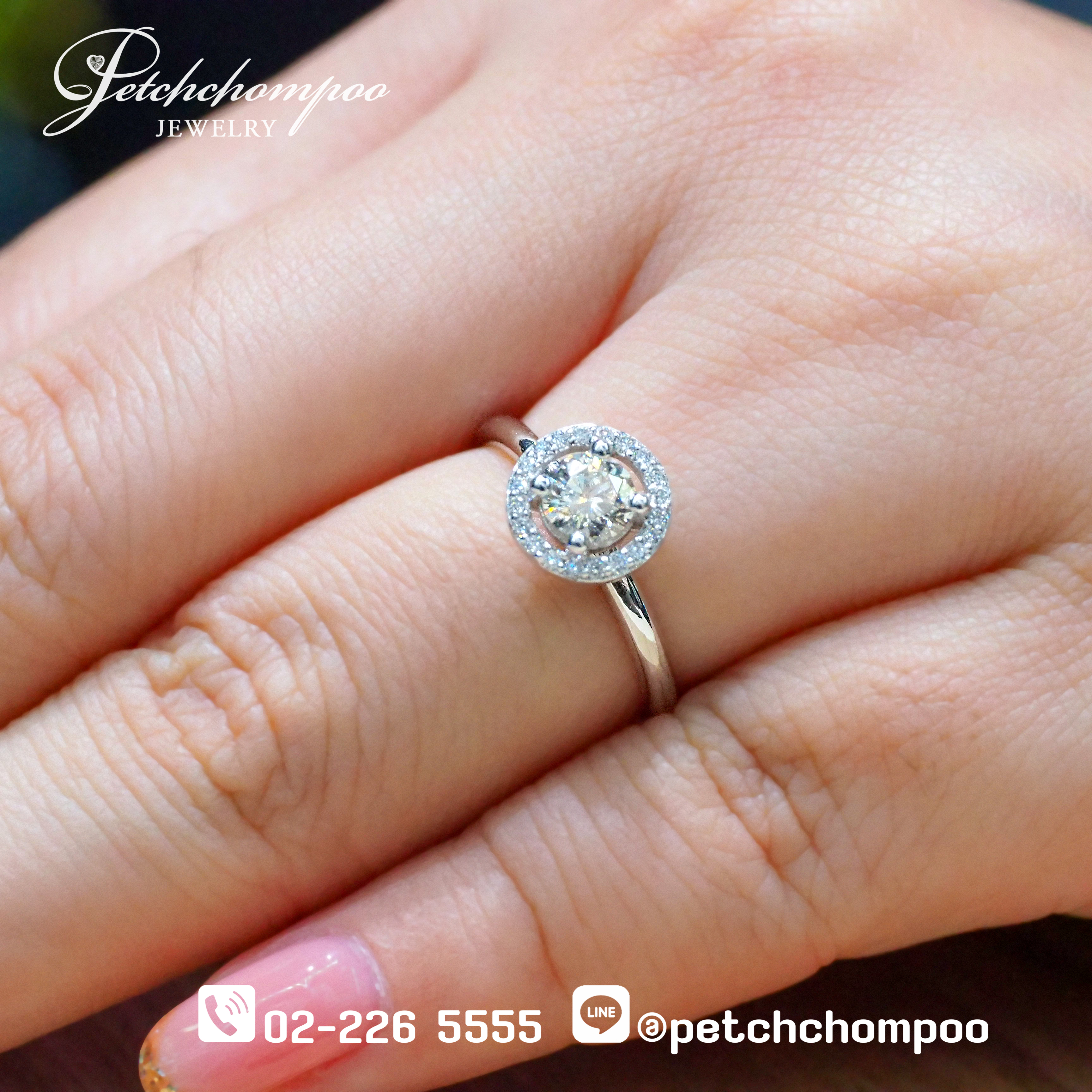 แหวนเพชรแท้ดีไซน์ Halo สุดคลาสสิกที่เผยความอ่อนหวานด้วยความหรูหราอันโดดเด่น เพชรเม็ดกลาง 0.52 กะรัตเจียระไนอย่างประณีตให้เปล่งประกายเต็มตา ล้อมด้วยเพชรกลมอีก 20 เม็ด น้ำหนักรวม 0.13 กะรัต เพิ่มมิติให้ตัวเรือนทองคำขาว 18K หนัก 3.14 กรัม สวมใส่ได้ทุกโอกาส ไม่ว่าจะเป็นแหวนหมั้น แหวนประจำวัน หรือของขวัญแห่งรัก
