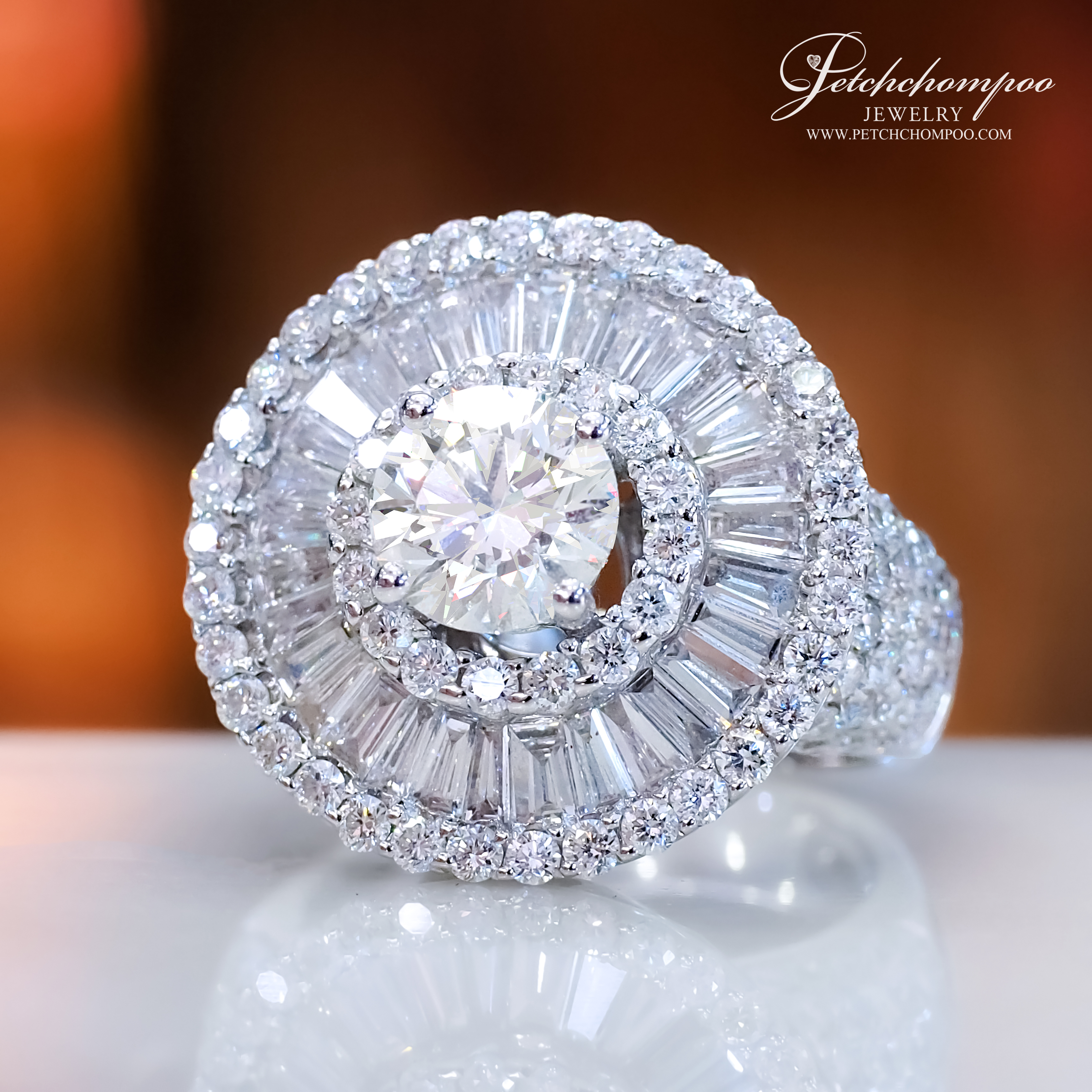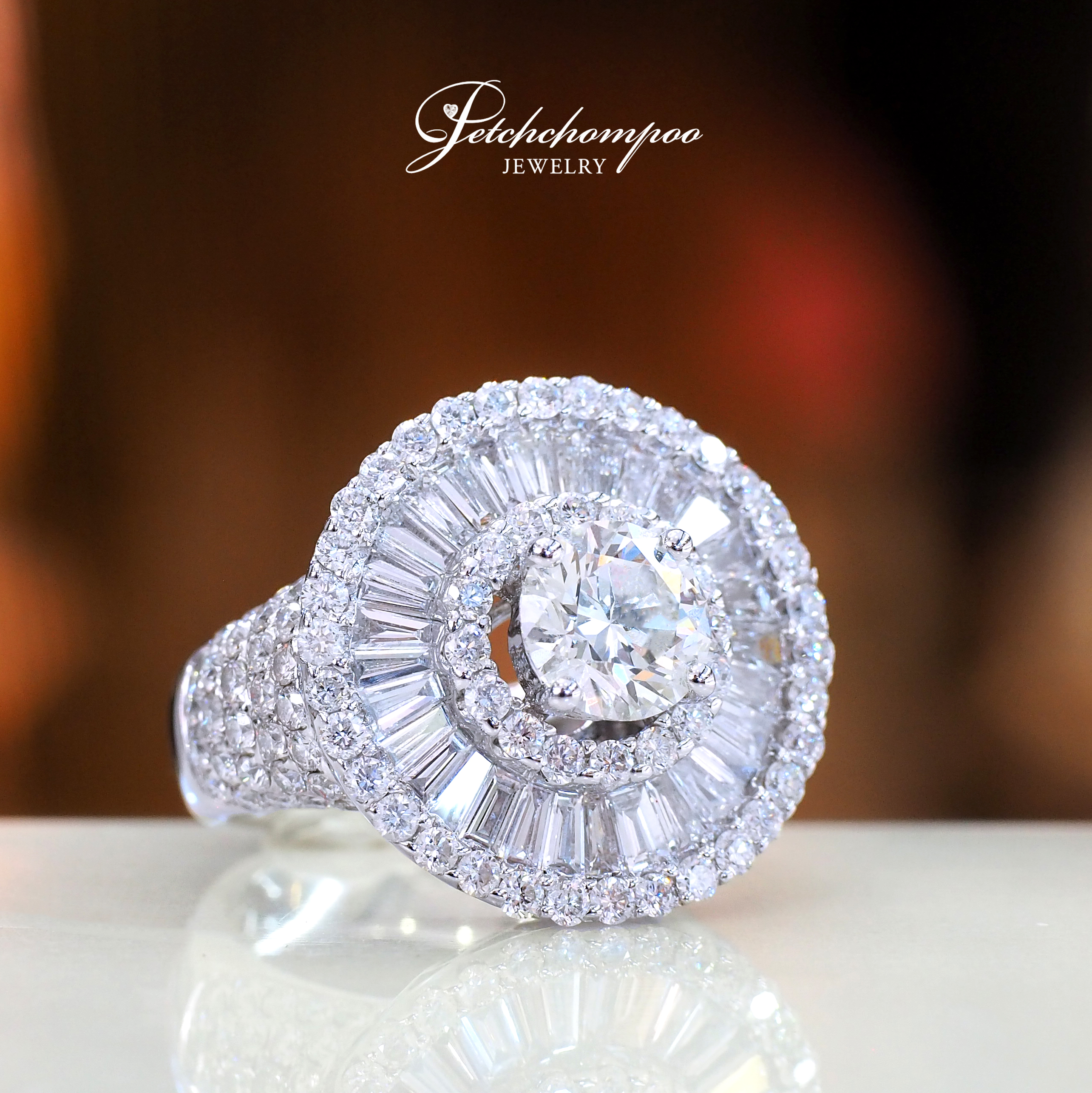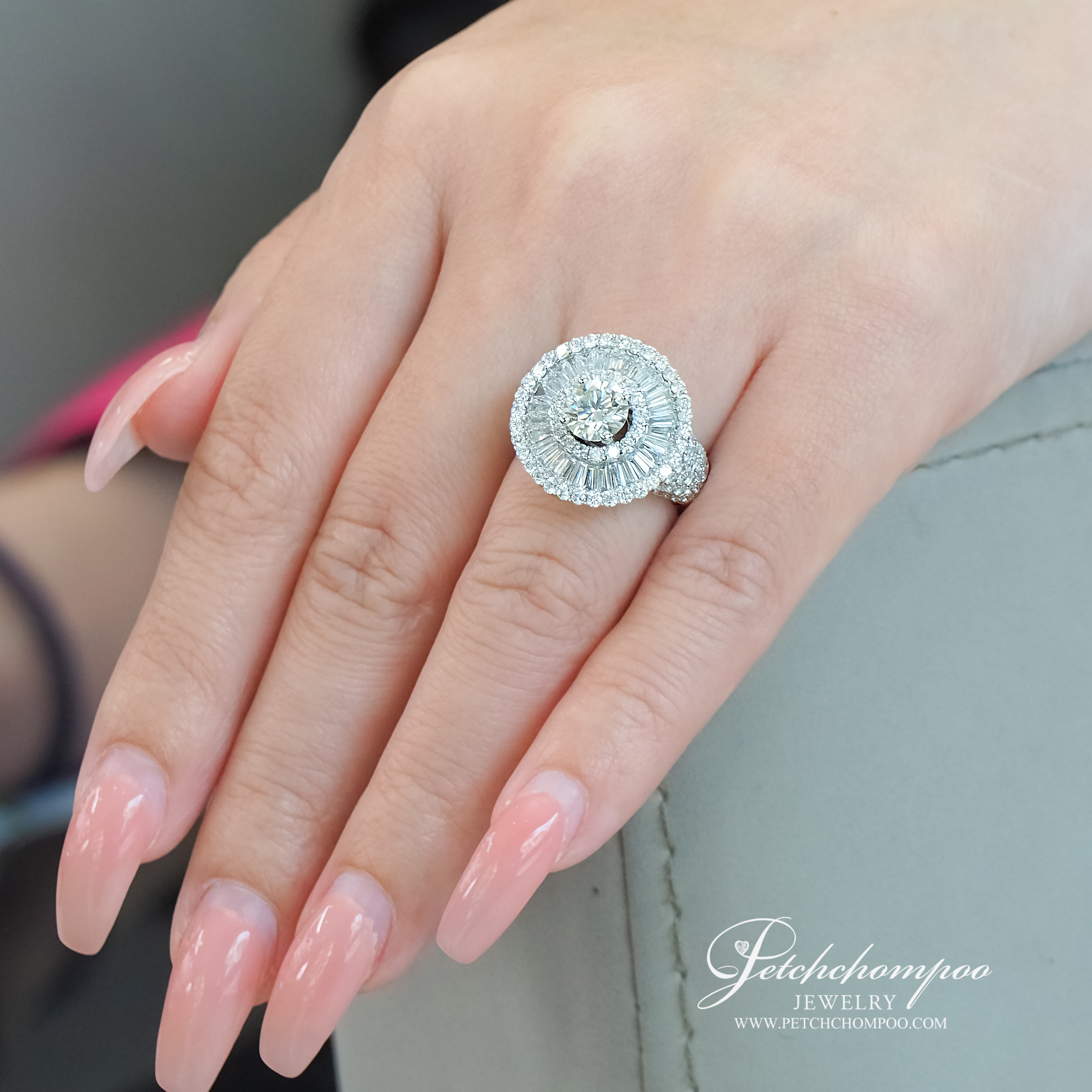 แหวนเพชรดีไซน์พิเศษทรงกลมล้อมซ้อนชั้น สะท้อนแสงระยิบระยับดั่งหมู่ดาวเคลื่อนไหวรอบใจคุณ เพชรเม็ดกลางขนาด 1.01 กะรัต สะกดสายตาอย่างสง่างาม โอบล้อมด้วยเพชรบาเก็ตเรียงรอบวงและเพชรกลมล้อมซ้อนอีกชั้น รวมเพชรทั้งหมดกว่า 3.01 กะรัต เจียระไนเปล่งประกายเจิดจรัสอย่างไร้ที่ติ บนตัวเรือนทองคำขาว 18K น้ำหนัก 7.14 กรัม พร้อมใบรับรองจาก IGI