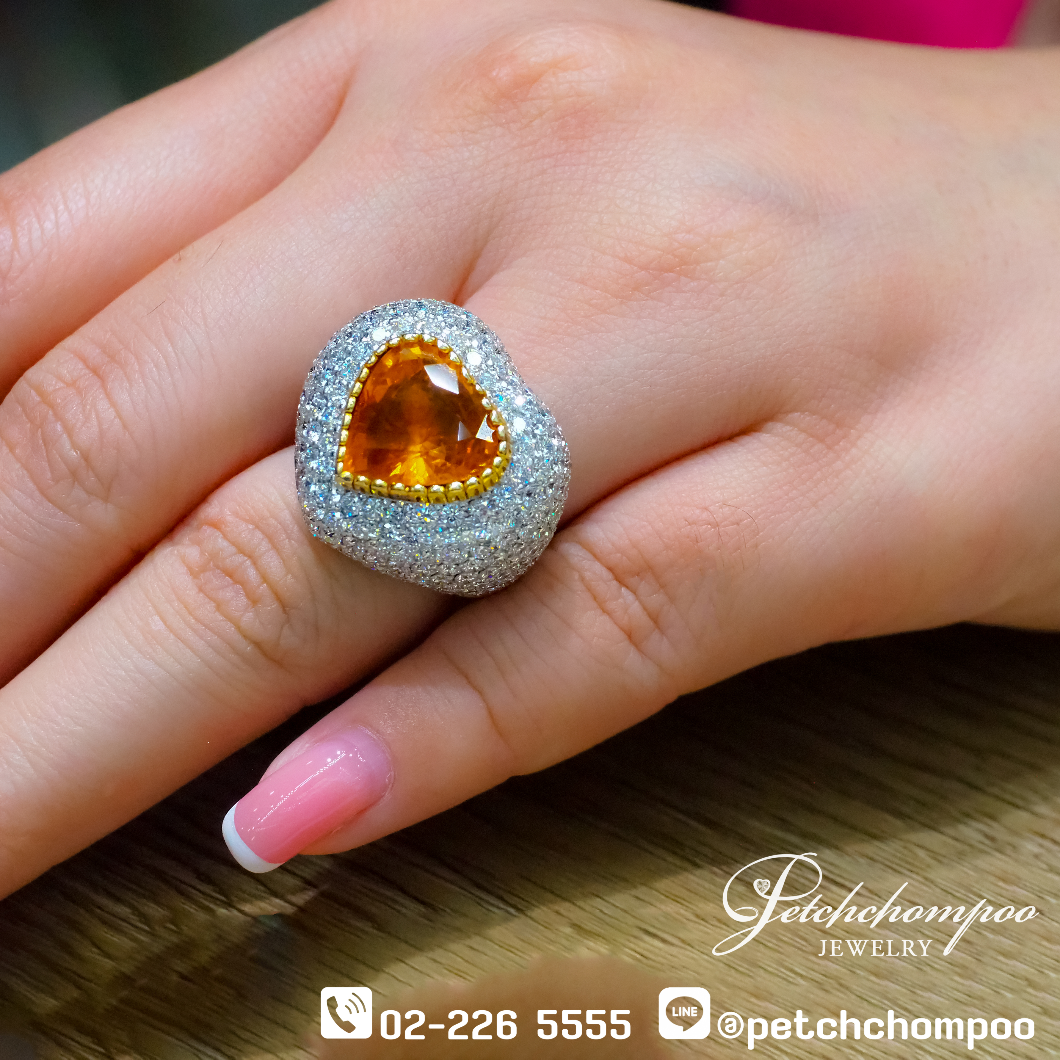 แหวนบุษราคัมบางกะจะรูปหัวใจ Golden Empress Heart™ 7.54 กะรัต ล้อมเพชร