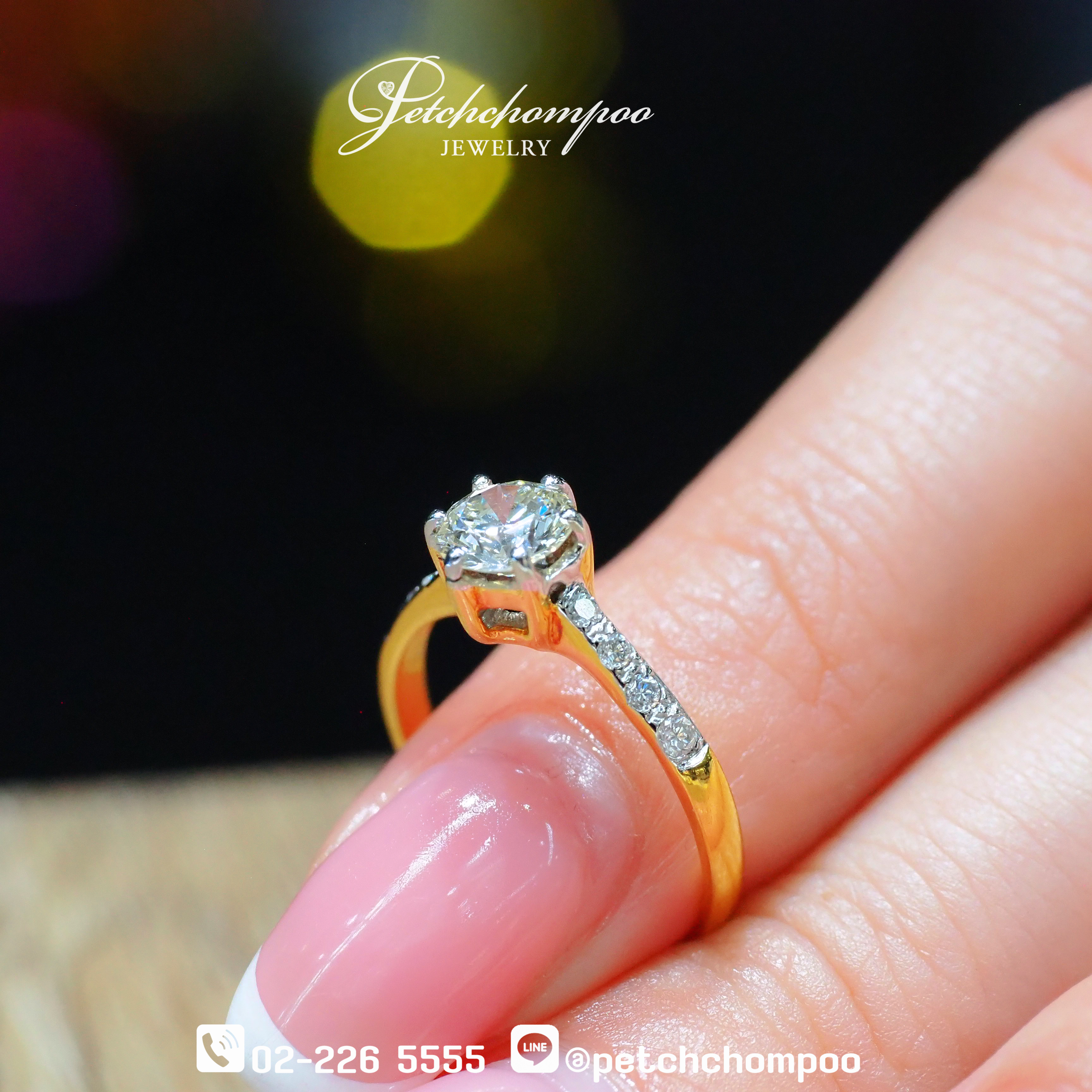 แหวนเพชรดีไซน์ชูเม็ดกลางสุดคลาสสิก ที่ออกแบบมาเพื่อเน้นความงามของเพชรเม็ดหลัก 0.61 กะรัต อย่างเต็มเปี่ยม โดยมีเพชรเม็ดข้างทั้งสองฝั่งอีก 8 เม็ด รวม 0.11 กะรัต เสริมประกายระยิบระยับในทุกองศา ตัวเรือนทองคำ 18K น้ำหนัก 2.12 กรัม ประณีตทุกมุมมอง เรียบหรูและเป็นนิรันดร์ เหมาะสำหรับใช้เป็นแหวนหมั้นหรือแหวนแทนใจในทุกโอกาสสำคัญ