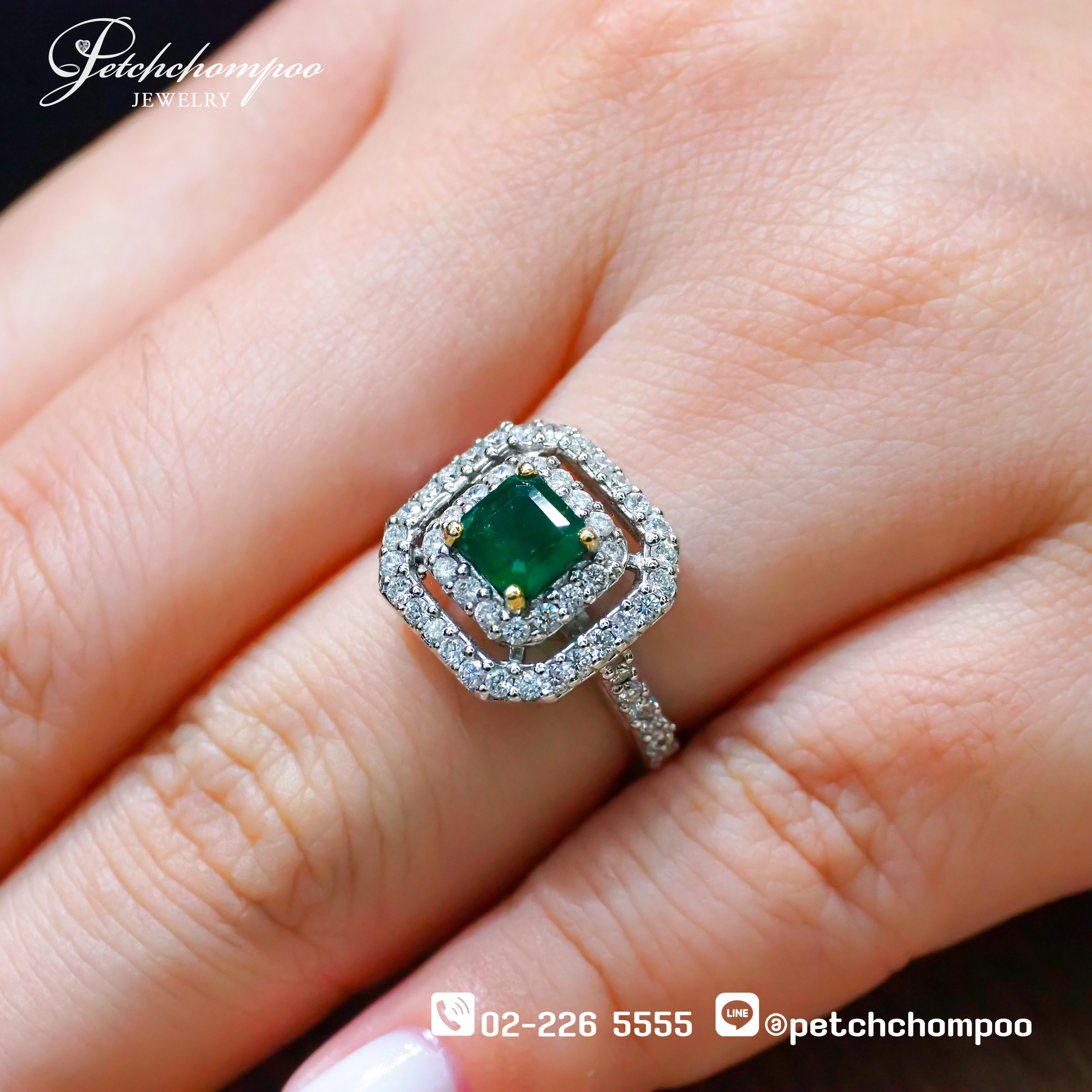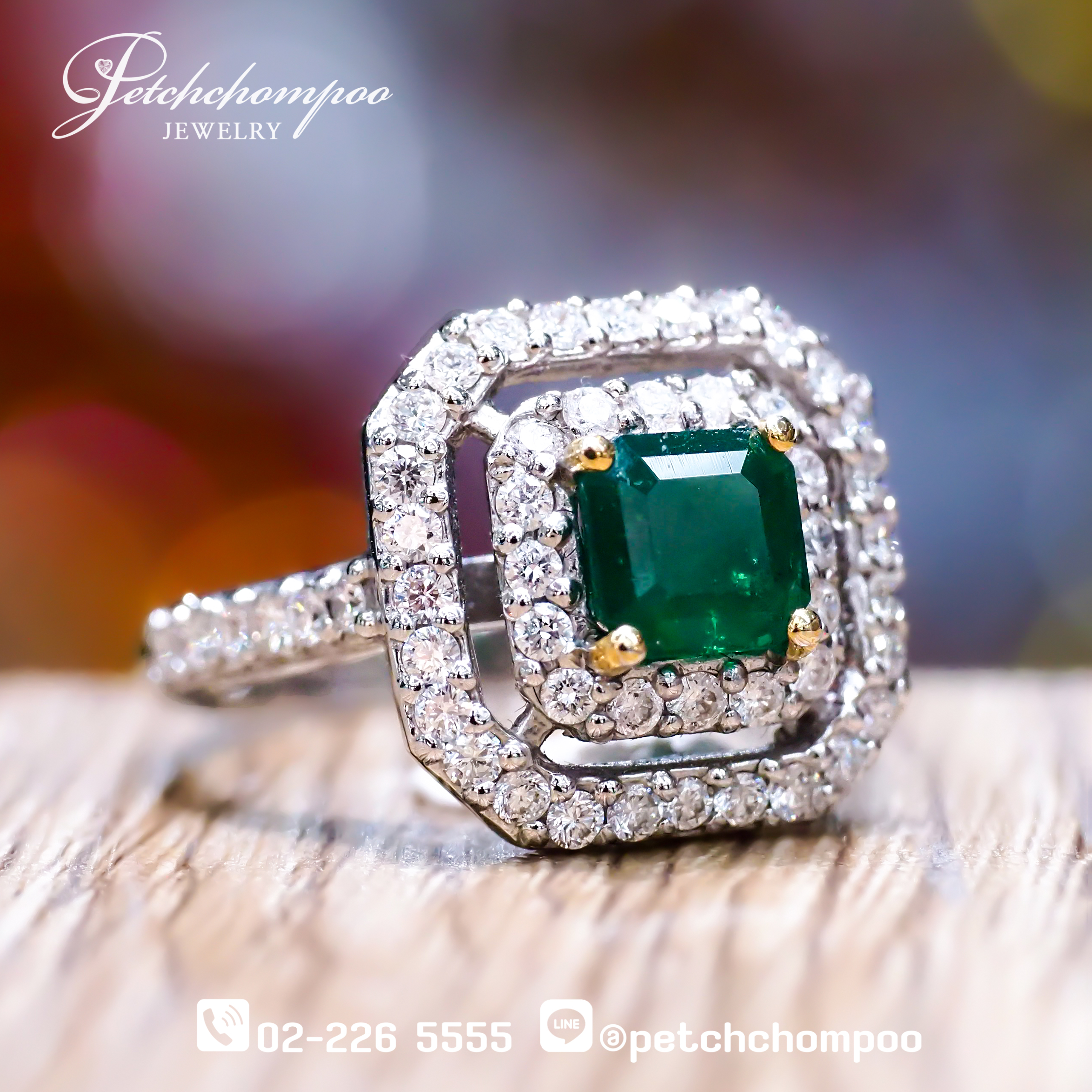 แหวนมรกตโคลอมเบีย Emerald Prestige™1.08 กะรัต ล้อมเพชร 2 ชั้น