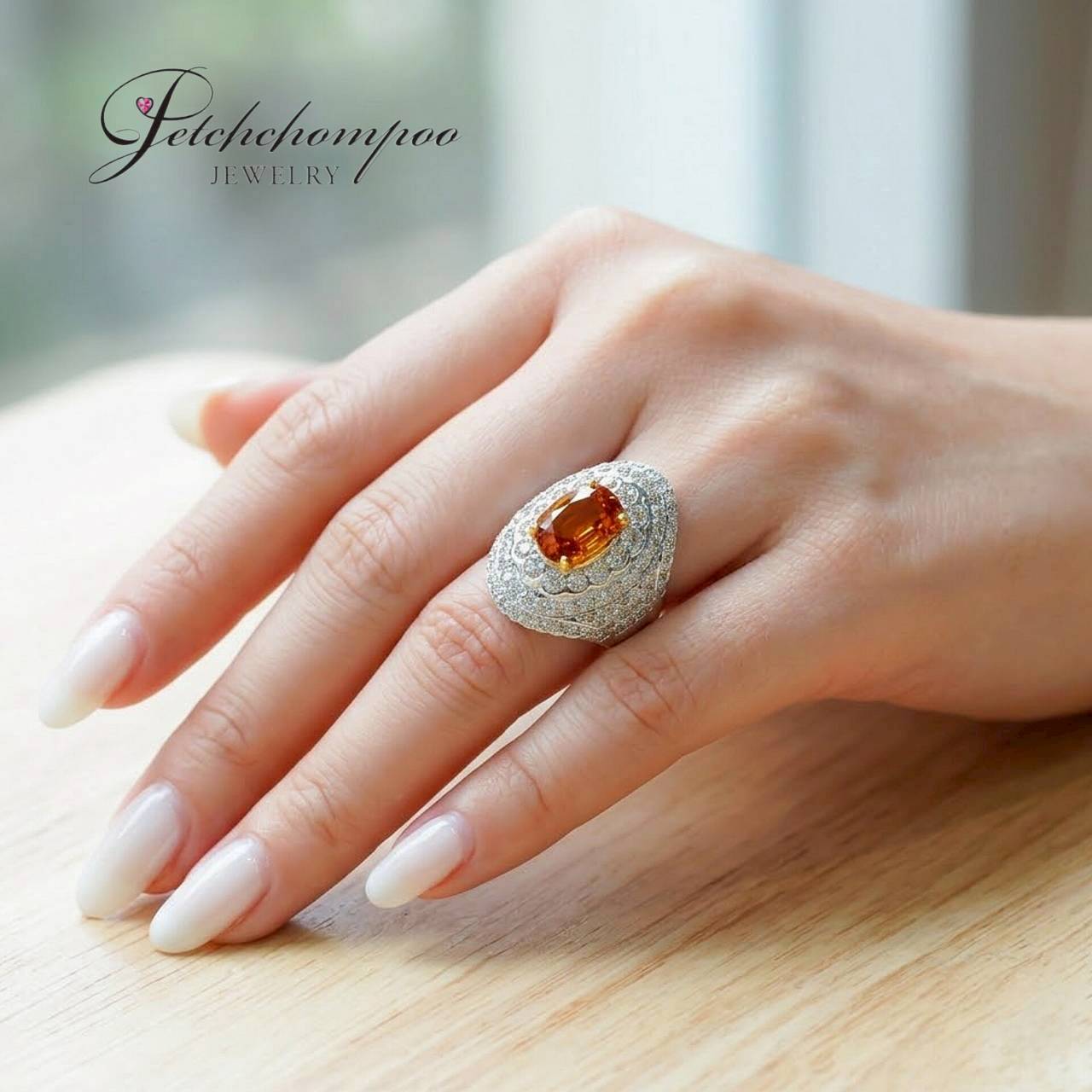 แหวนบุษราคัมสยาม Golden Flame Radiance 4.24 กะรัต ฝังเพชร | Emil