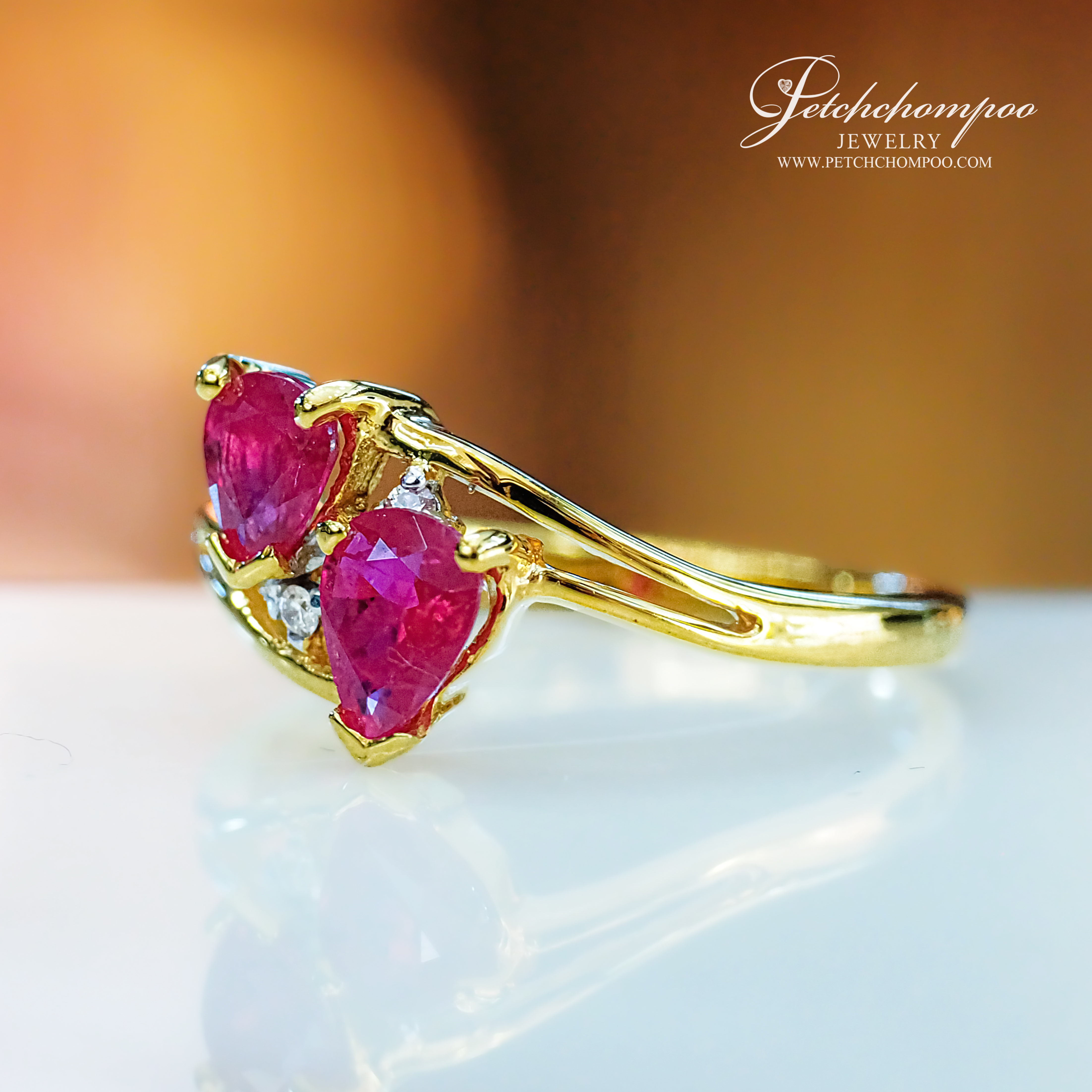 • ทับทิมสยามแท้ 2 เม็ด รูปทรงหัวใจ น้ำหนักรวม ≈ 1.00 กะรัต