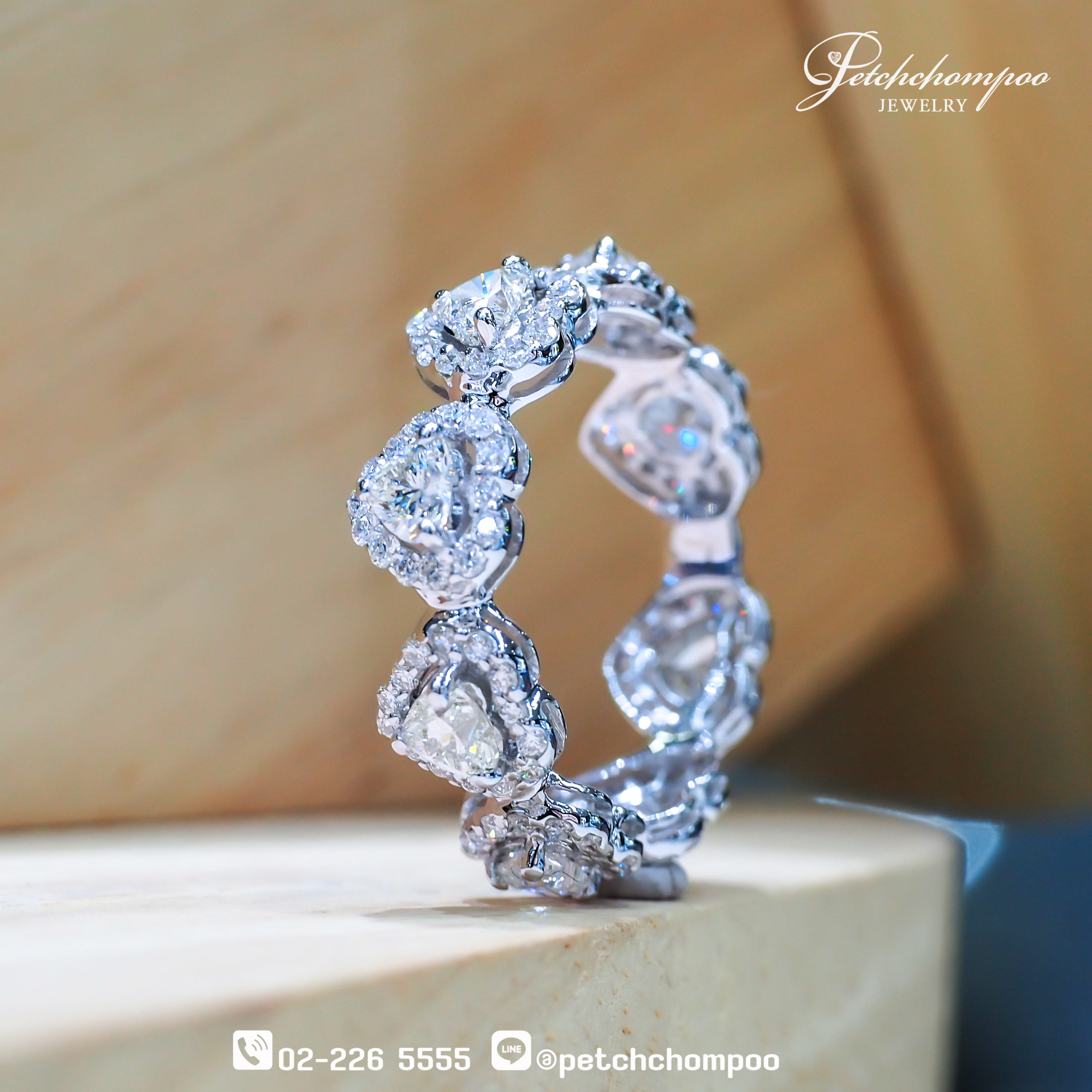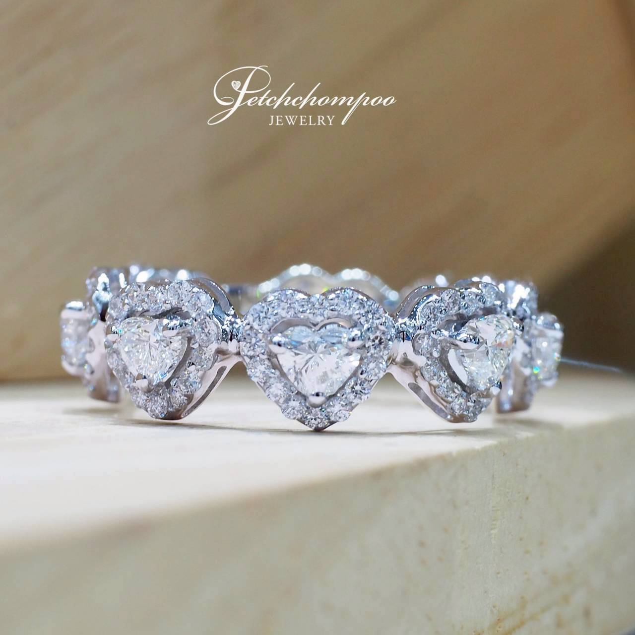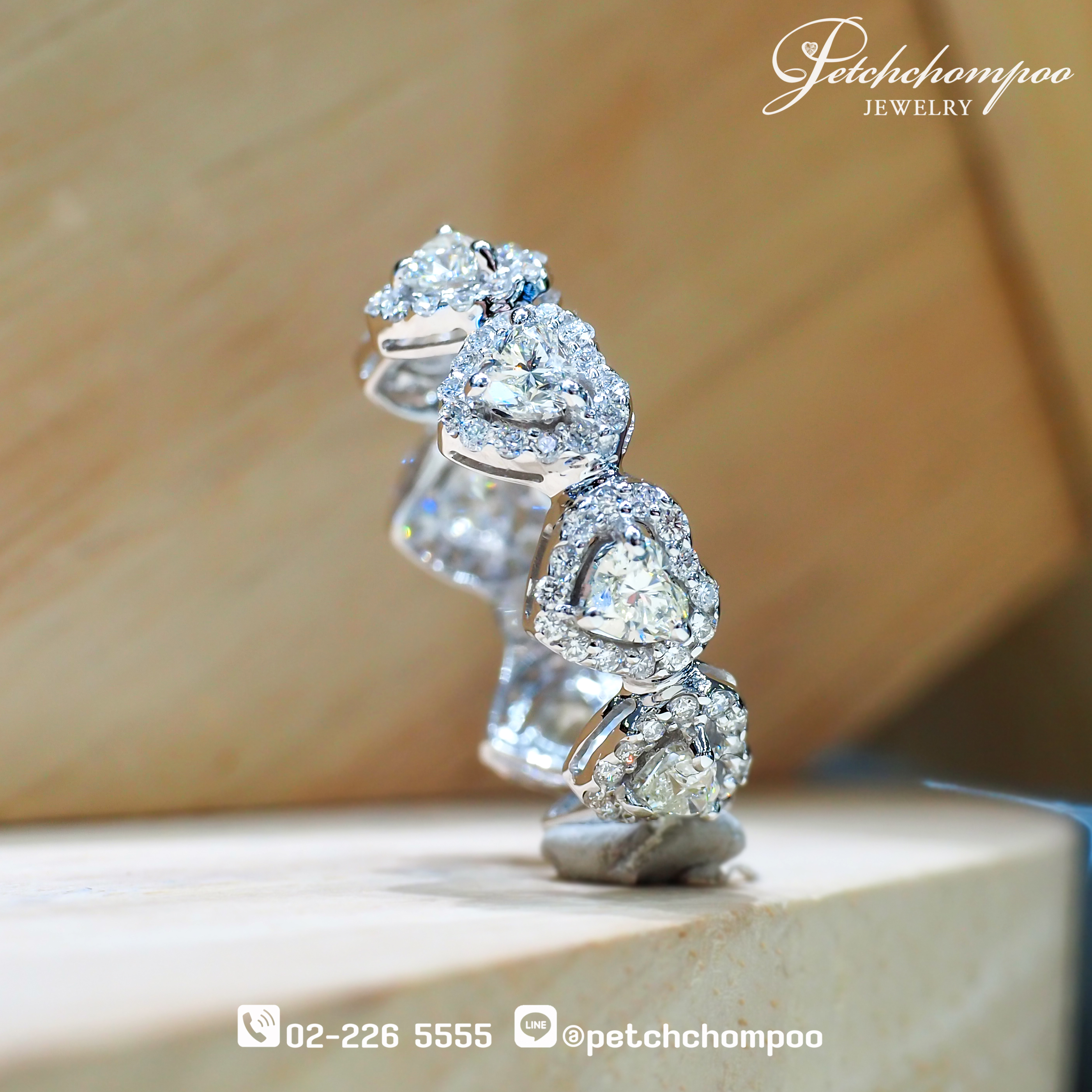 ✨ สัญลักษณ์แห่งความรักที่ไม่มีวันสิ้นสุด ถ่ายทอดผ่านประกายเพชรรูปหัวใจที่เรียงรายอย่างงดงามรอบวง