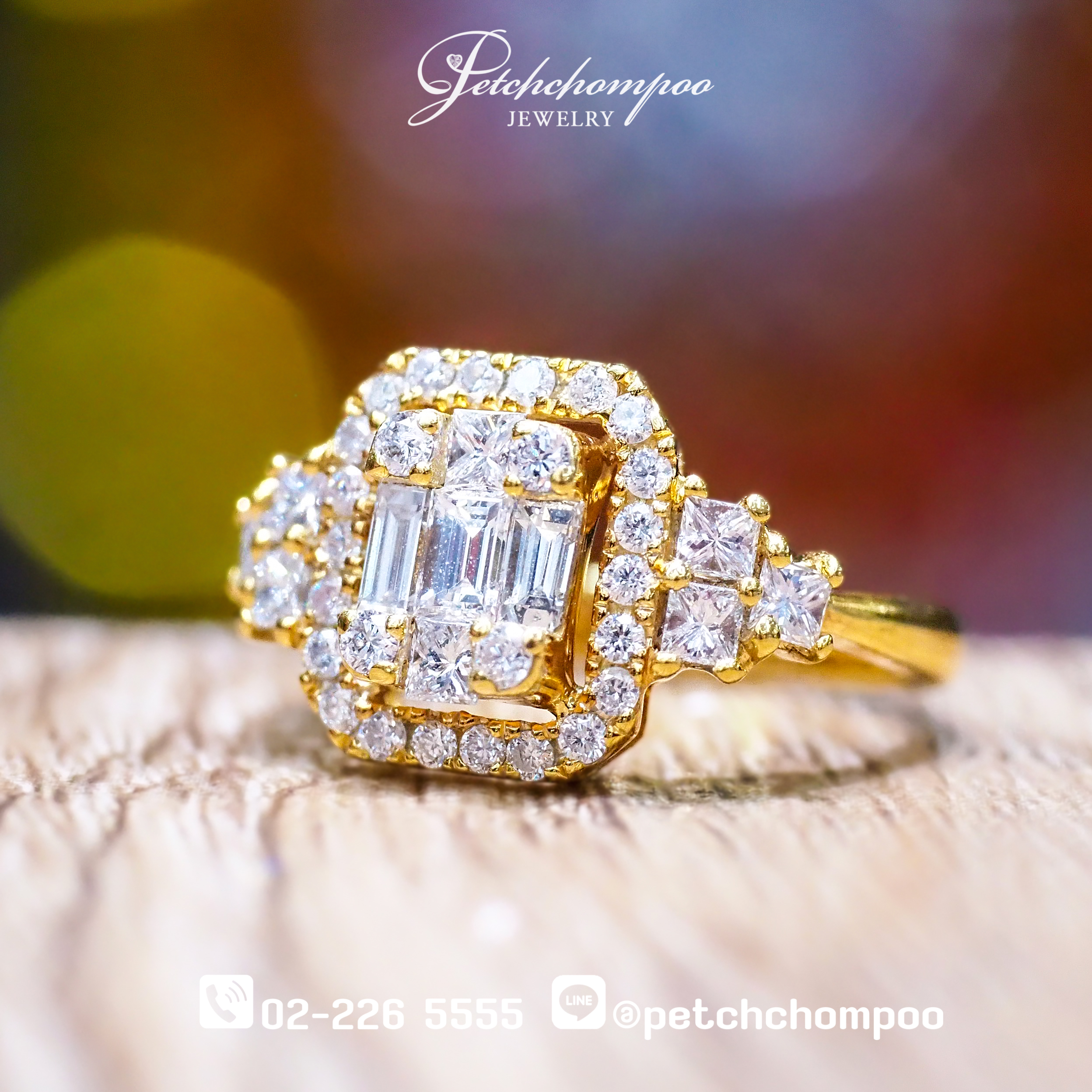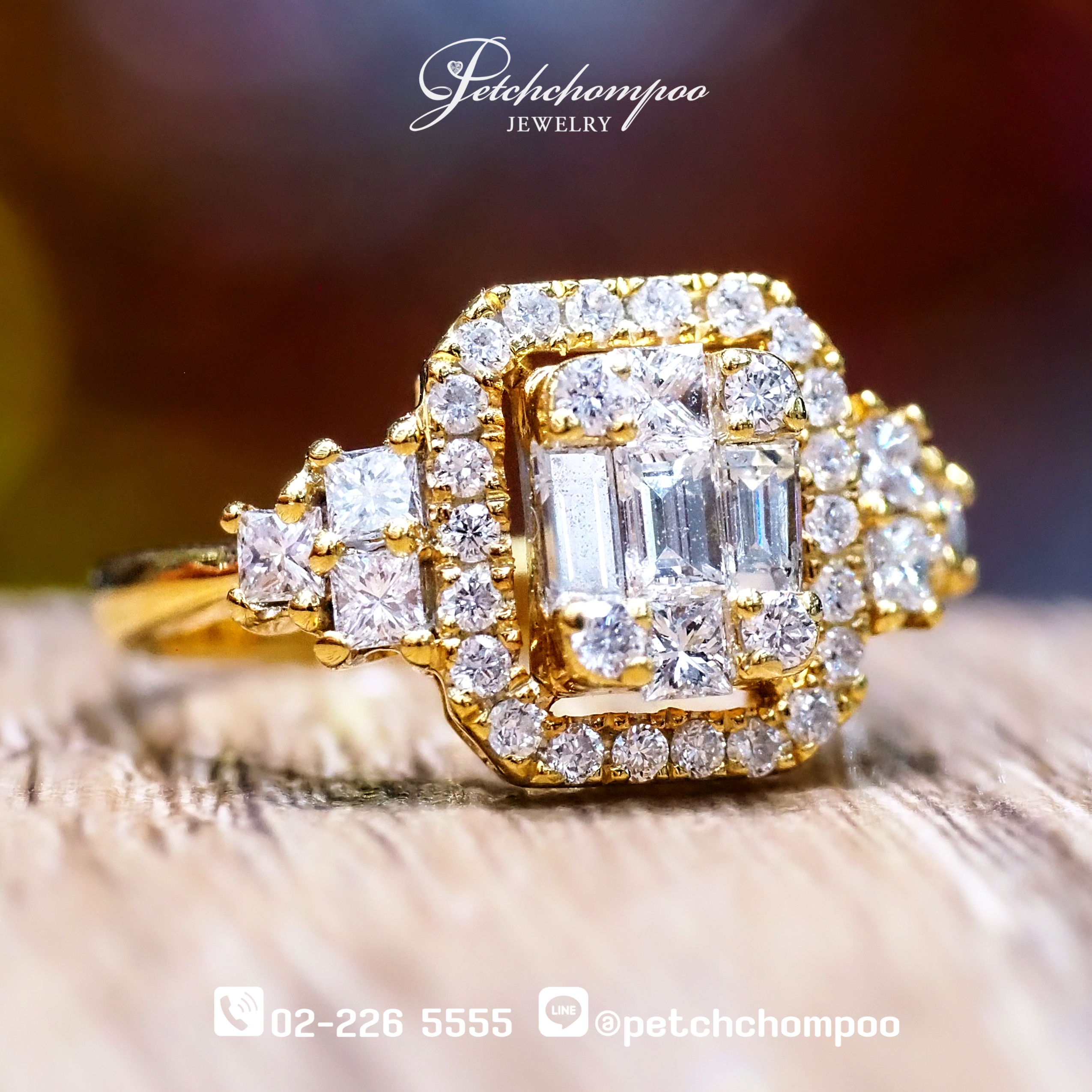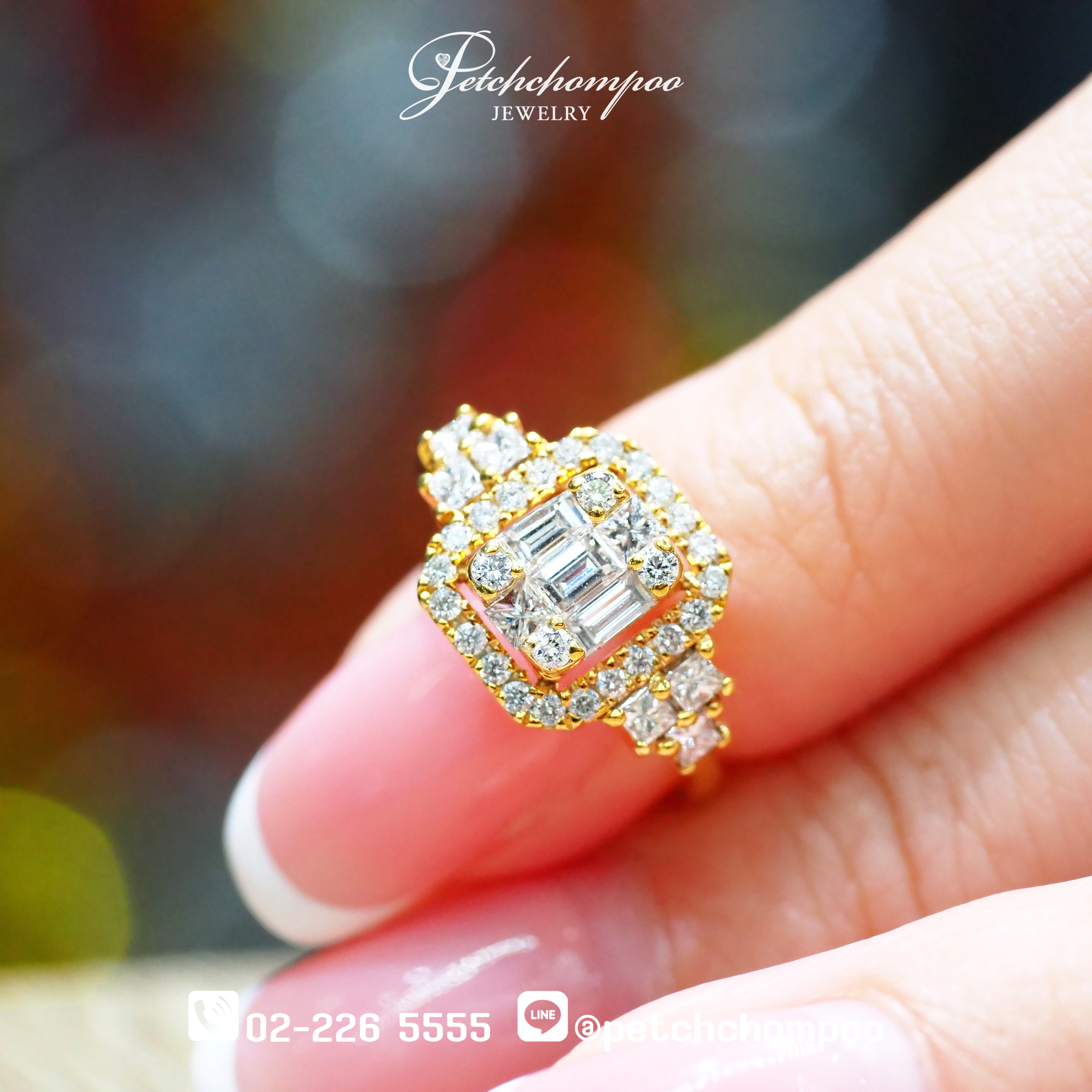 • ประเภทเพชร: ประกบทรง Emerald Cut, Princess Cut และ Brilliant Round