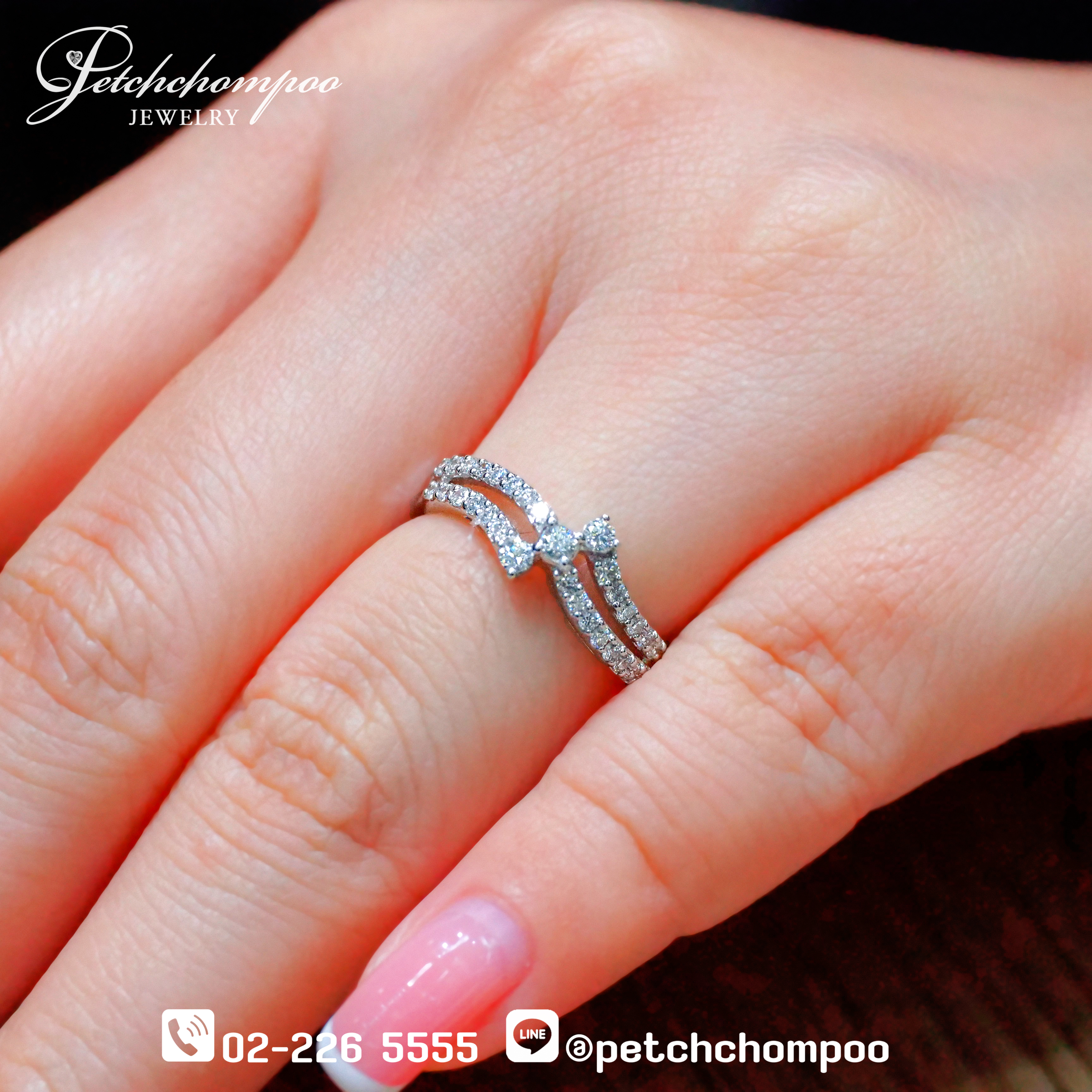 แหวนเพชรดีไซน์ล้ำที่ถ่ายทอดความอ่อนช้อยอย่างสง่างาม เส้นสายคดโค้งคล้ายสายน้ำที่โอบล้อมนิ้วมือไว้อย่างนุ่มนวล ประดับเพชรแท้น้ำงาม 31 เม็ด เรียงร้อยเป็นสองแนวคู่ขนานตัดกันที่จุดกึ่งกลางพอดี ให้ประกายระยิบระยับในทุกมุมมอง ตัวเรือนทองคำขาวเนื้อแน่น เพิ่มมิติความหรูหราสำหรับลุคประจำวันหรือวันพิเศษ มาพร้อมใบรับรองจากสถาบัน GCI